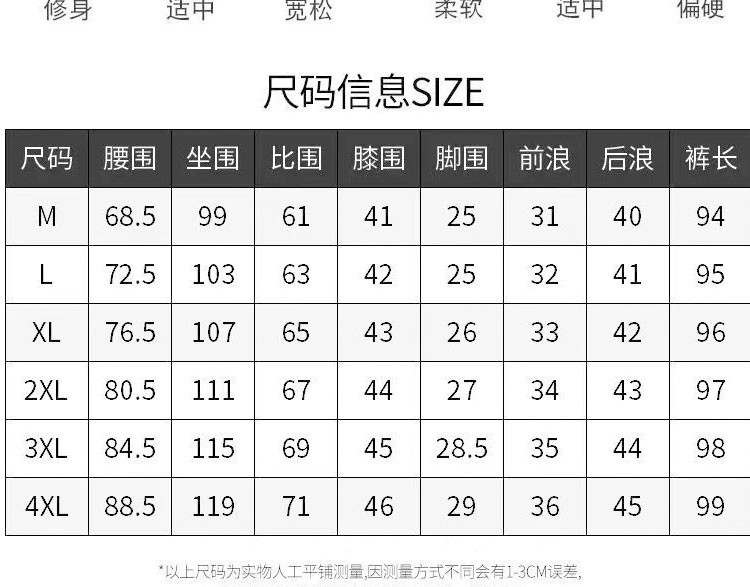 Outseam (cm) 99 cm 101.5 cm 104 cm 106.5 cm 109 cm