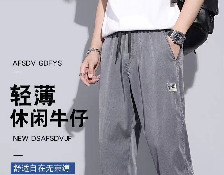 Anchu Summer Silk Jeans Men's Spring and Summer Thin Loose Leg Casual Pants Men's Trendy Harem Pants Ice Silk Pants Men's 901 Blue + 901 Gray 2XL 140-160Jin Jin is equal to 0.5 kg