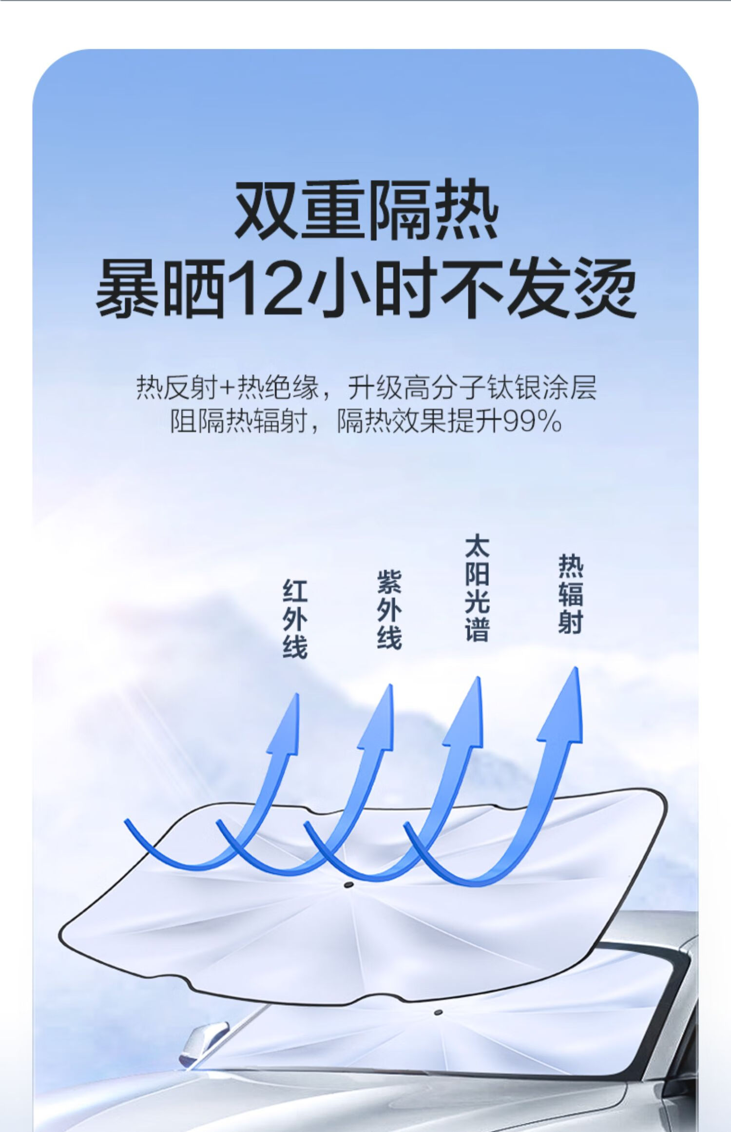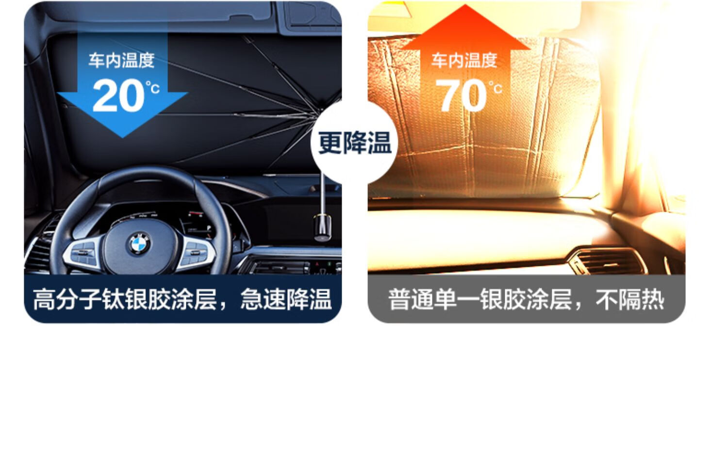 汽车遮阳伞车载遮阳挡前挡车内用前挡风玻璃遮阳挡汽车防晒伞夏季防晒隔热伞式遮光遮阳罩遮阳板便携式遮阳伞 保时捷帕拉梅拉/玛卡Macan大卡宴718/911 两厢车紧凑车型-小号加厚升级款