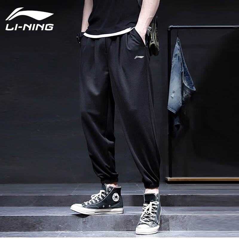 Li-Ning Sports Pants Men's Spring and Autumn Loose Breathable Straight Elastic Men's Running Fitness Training Pants Dark Gray (Leg-bound Version + Pocket Zipper) L (Male 175/80A)