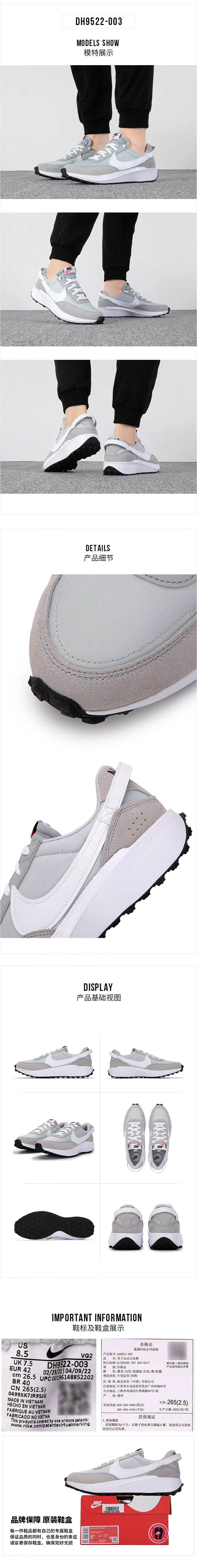 耐克(NIKE)运动鞋男鞋秋冬季新款轻便复古潮流华夫鞋时尚轻便低帮舒适休闲鞋 DH1349-100 44.5