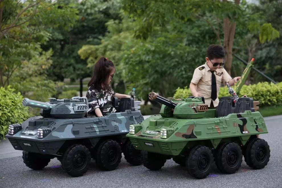 猎瑞儿童遥控坦克车可坐人电动六轮玩具装甲车男女小孩礼物大号 深空灰