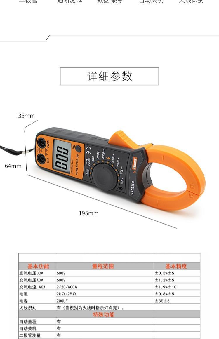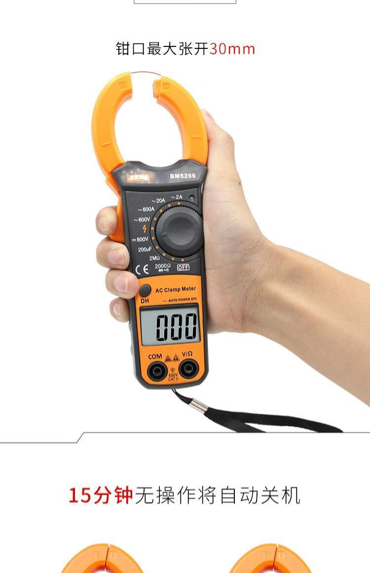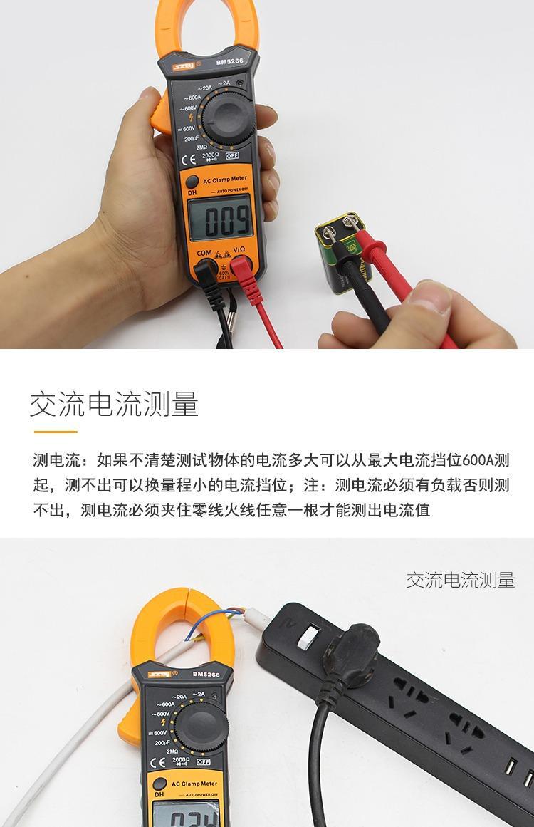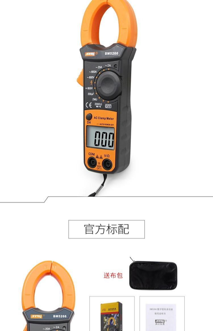 Binjiang BM5266 digital clamp multimeter pocket digital display ammeter clamp meter automatic shutdown capacitor burn-proof 5266 standard + spare durable test pen