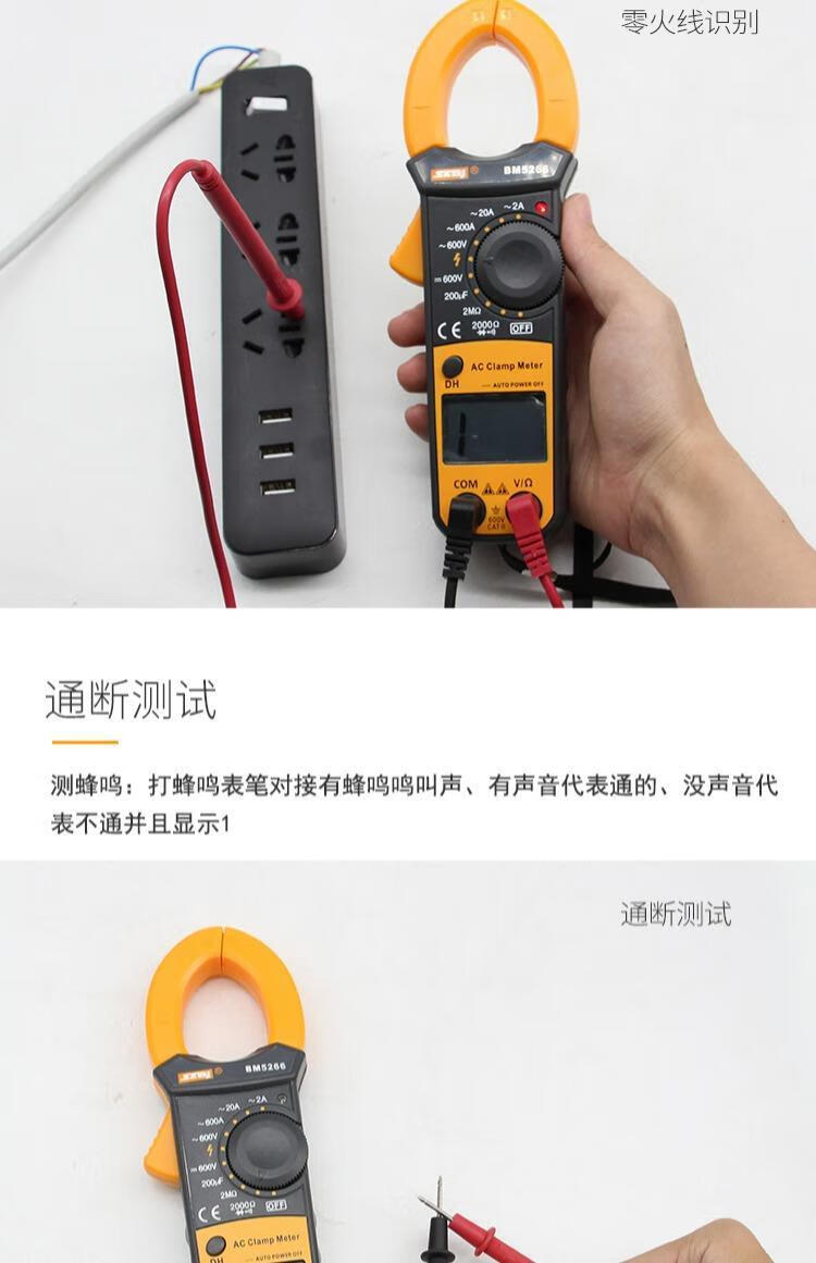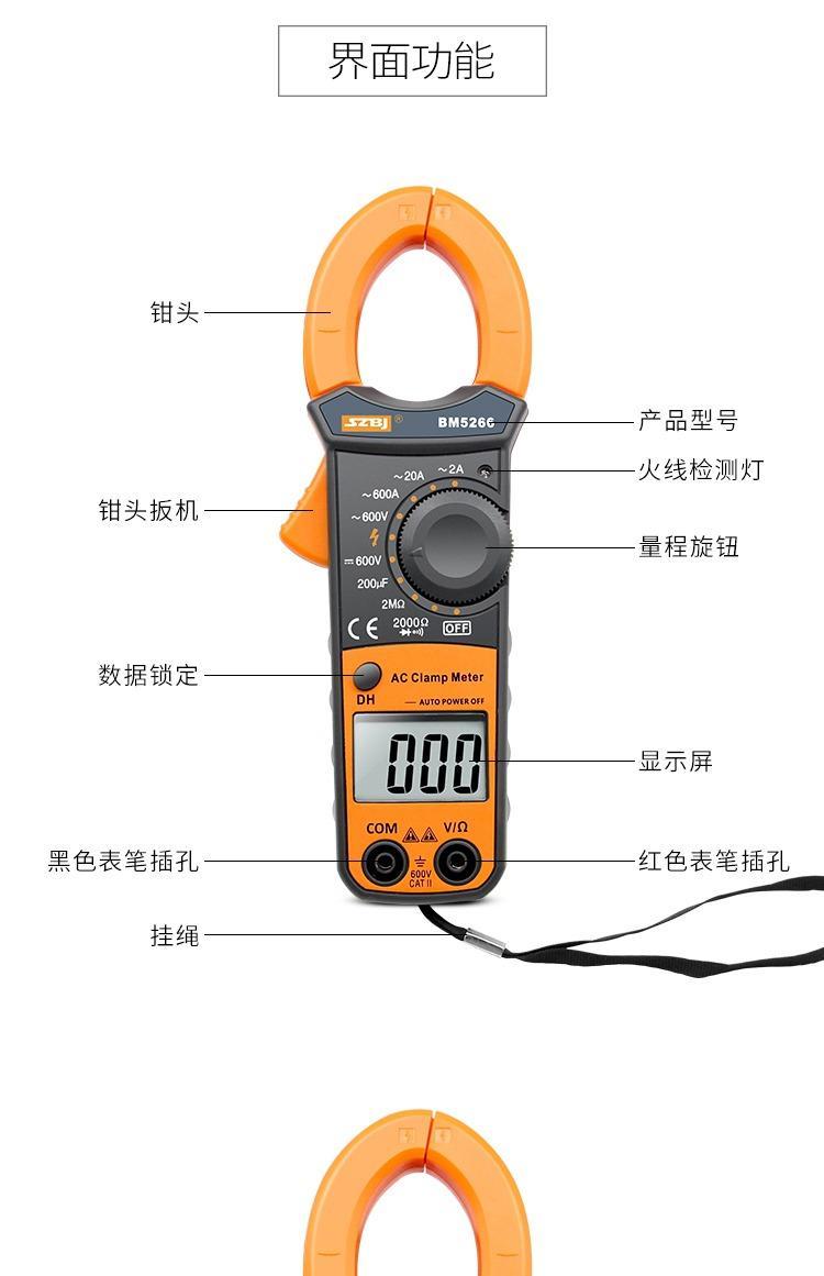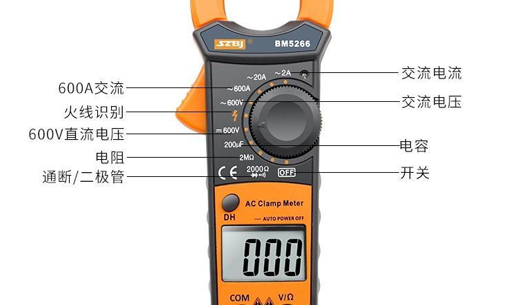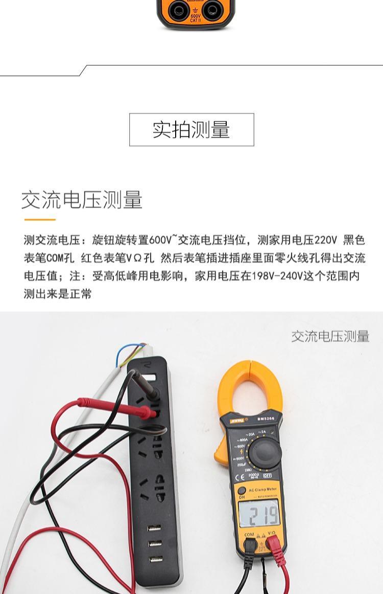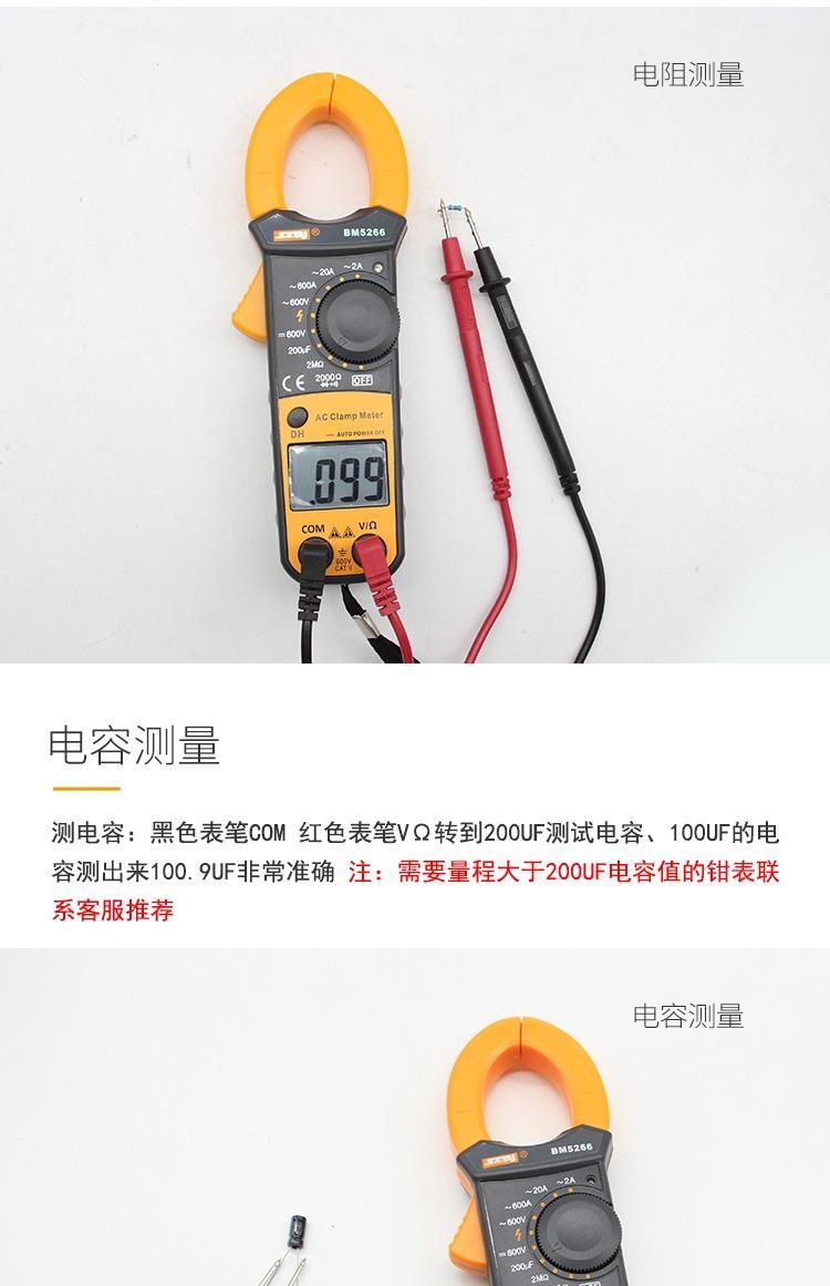 Binjiang BM5266 digital clamp multimeter pocket digital display ammeter clamp meter automatic shutdown capacitor burn-proof 5266 standard + spare durable test pen