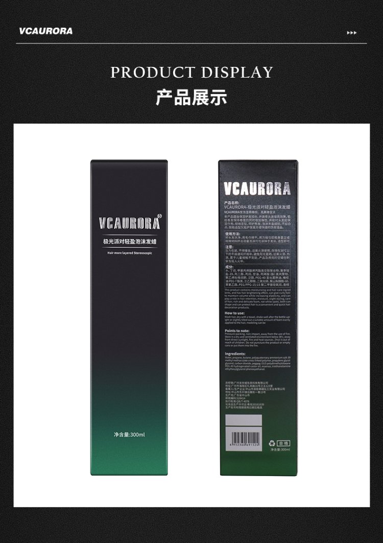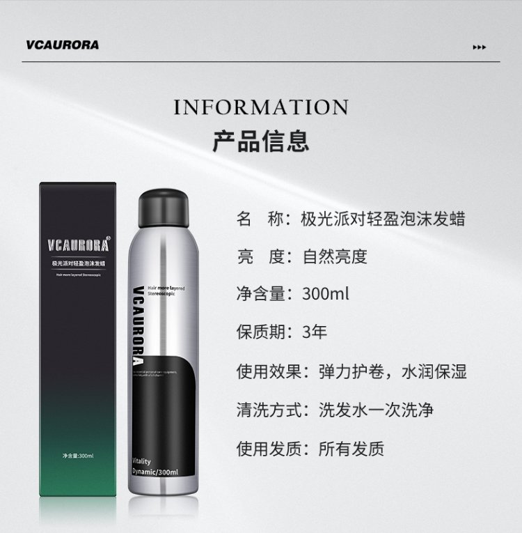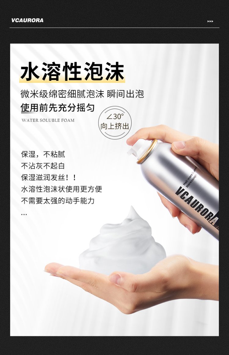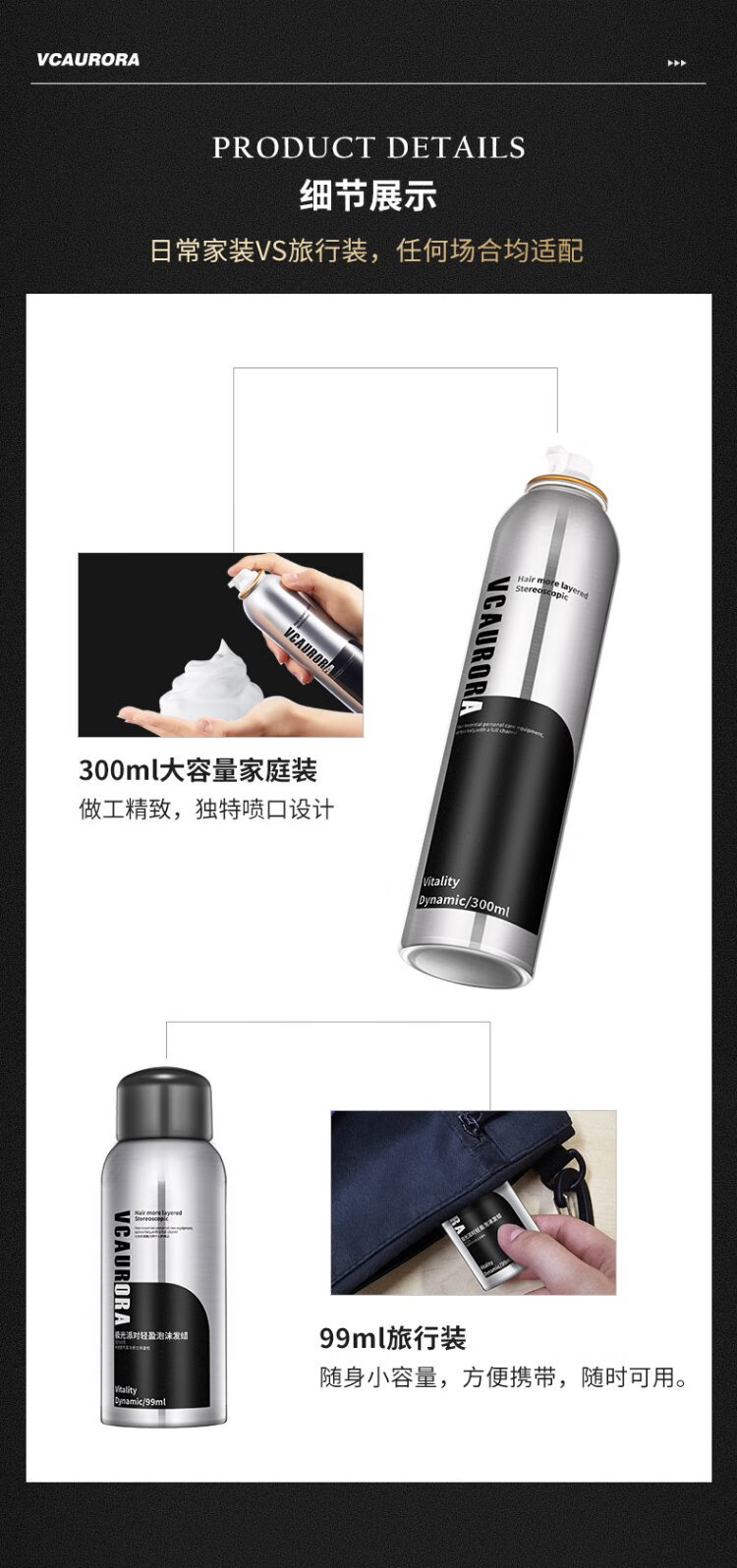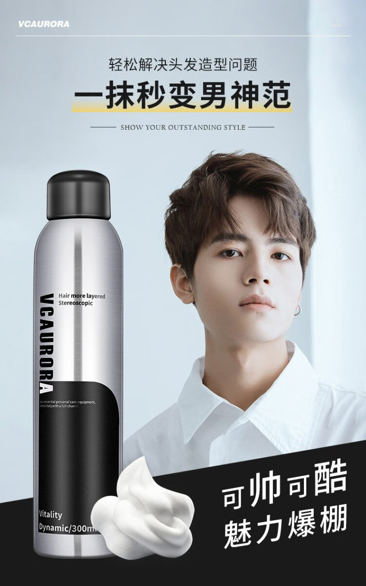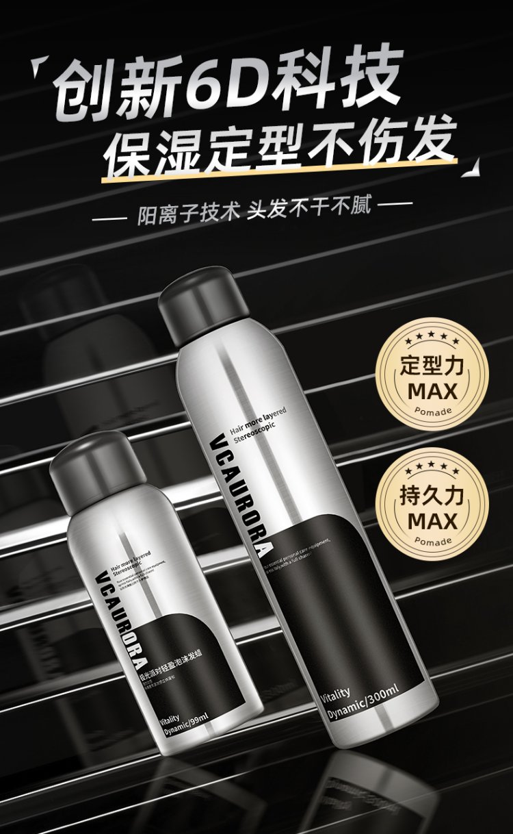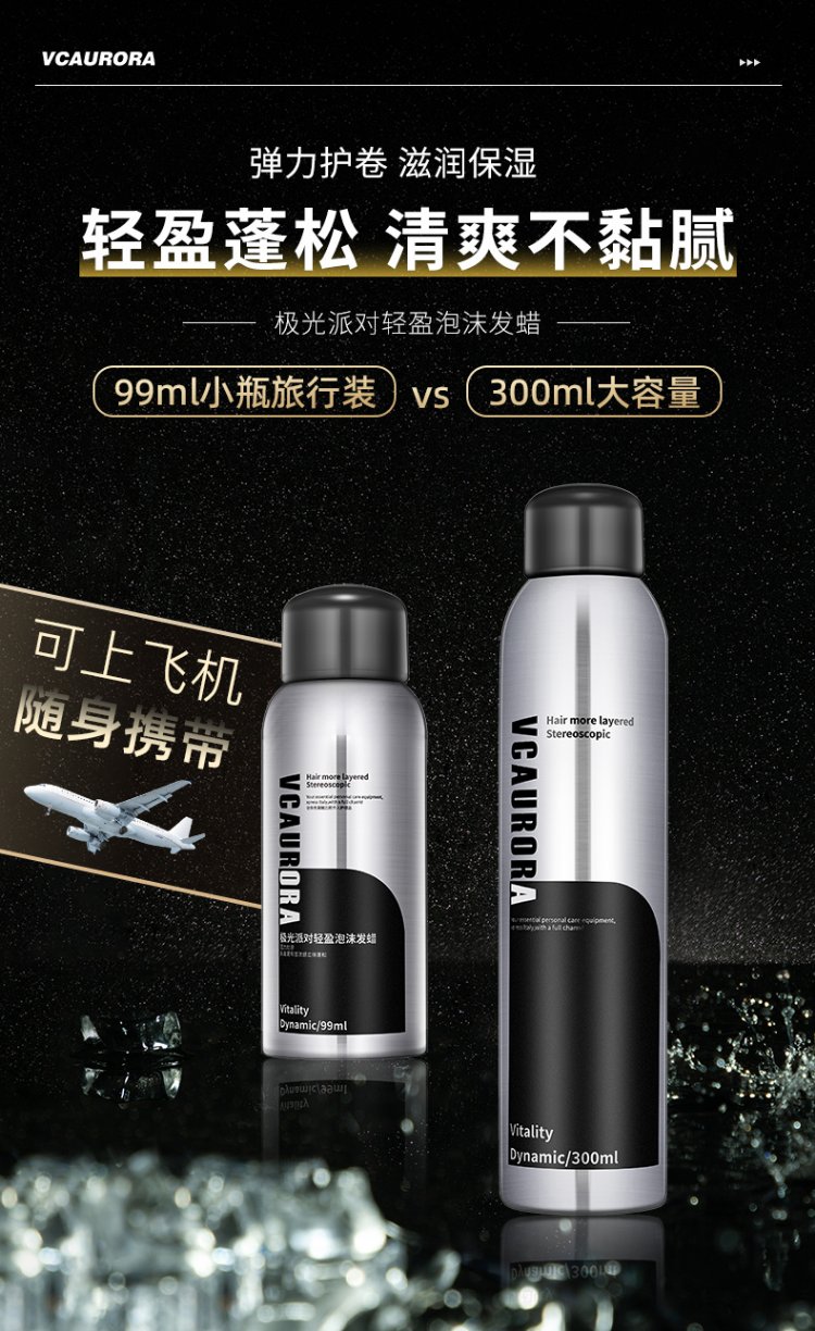 VCAURORA泡沫发蜡男士定型慕斯保湿摩丝泡泡发胶喷雾卷头发型打理神器小瓶 泡沫发蜡300ml+旅行装99ml
