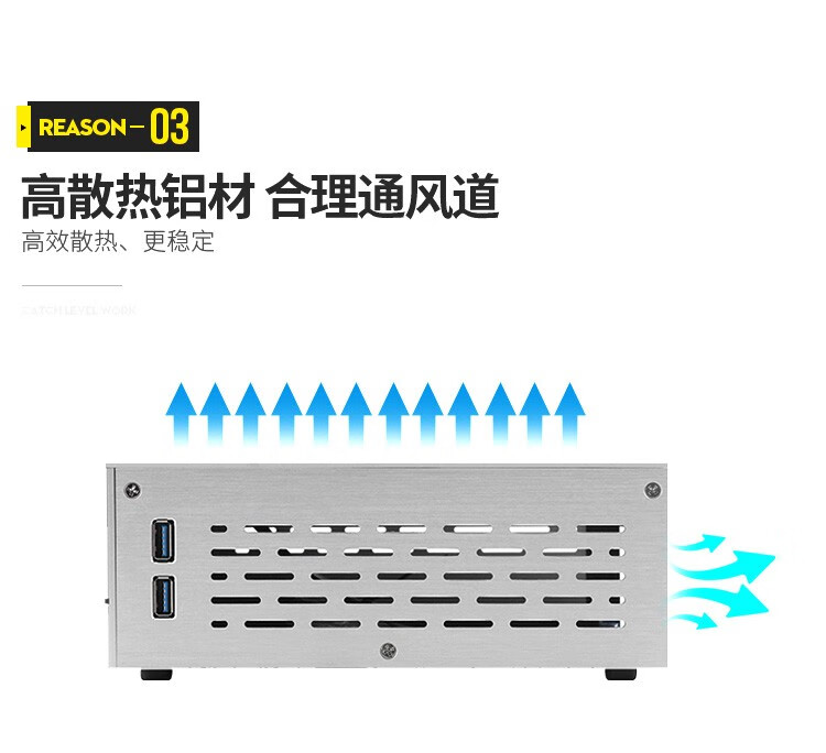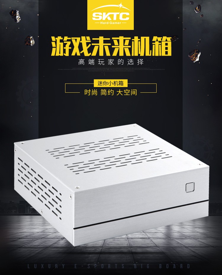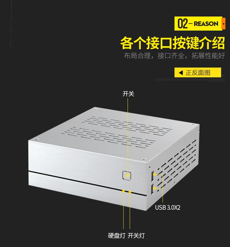 SKTC A01 horizontal ITX mini industrial control HTPC small chassis 55mm cooling aluminum shell bottom rear plate iron frame desktop computer external power supply A01 silver aluminum with 5010 fan holes*4