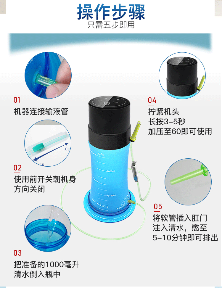 美龄宝 排便清肠器电动肠道水疗仪通便灌肠注射器润肠洗肠器便秘灌肠器肛门医用结肠家用灌肠袋成人医疗仪器 精启款DM835+锂电池充电