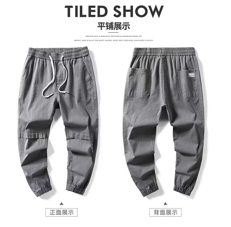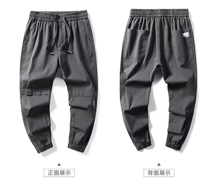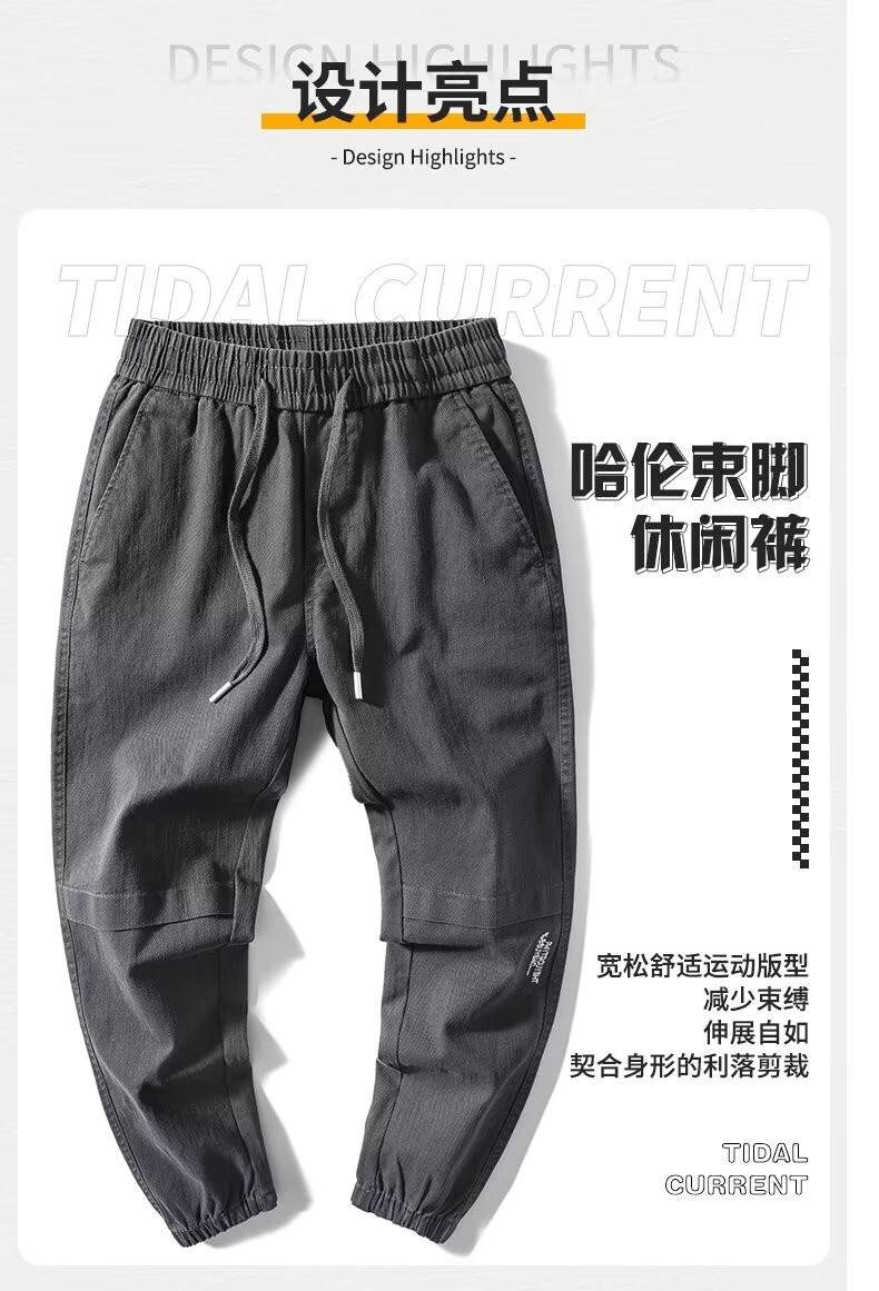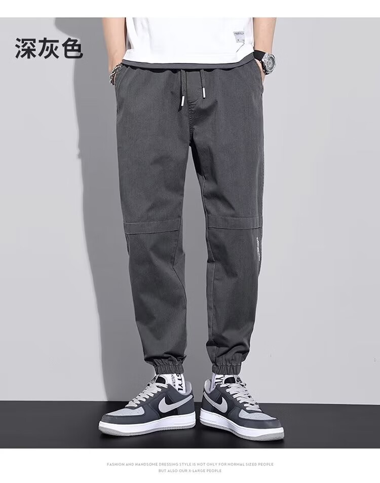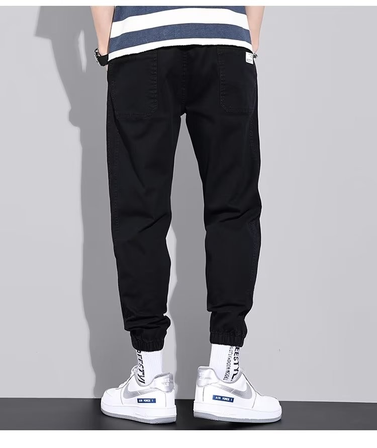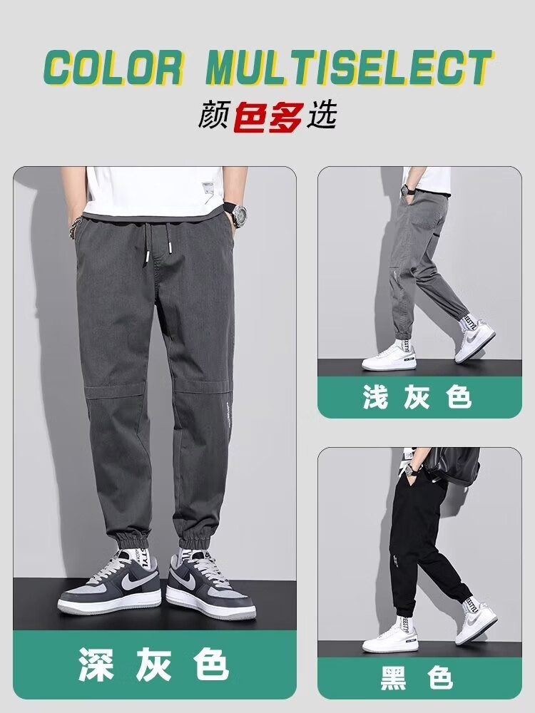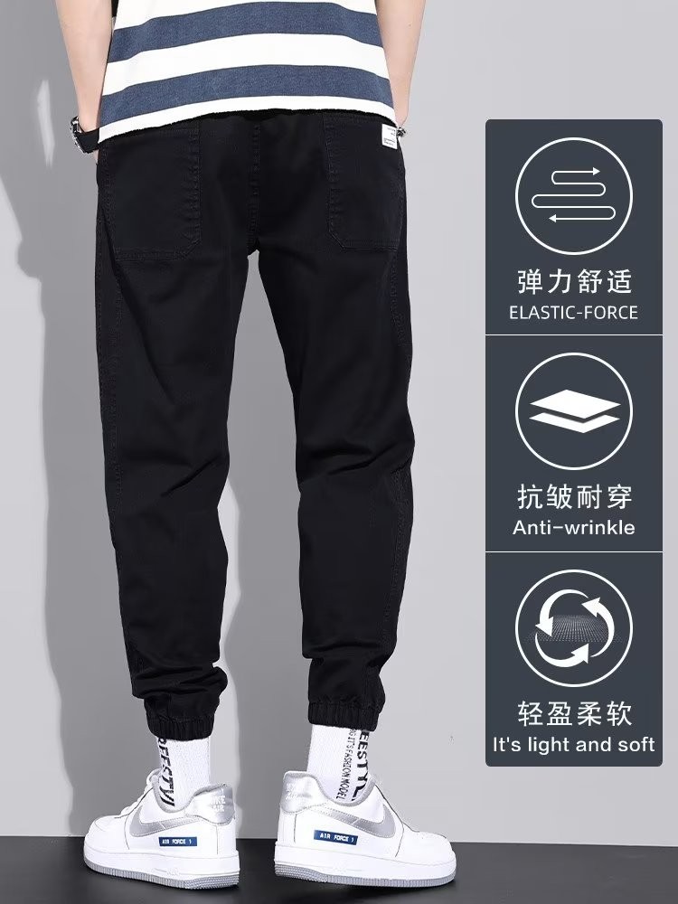 闳风休闲裤子男士春秋新款夏季薄款弹力透气束脚裤宽松哈伦工装男裤 黑色 XL(建议120-135斤)