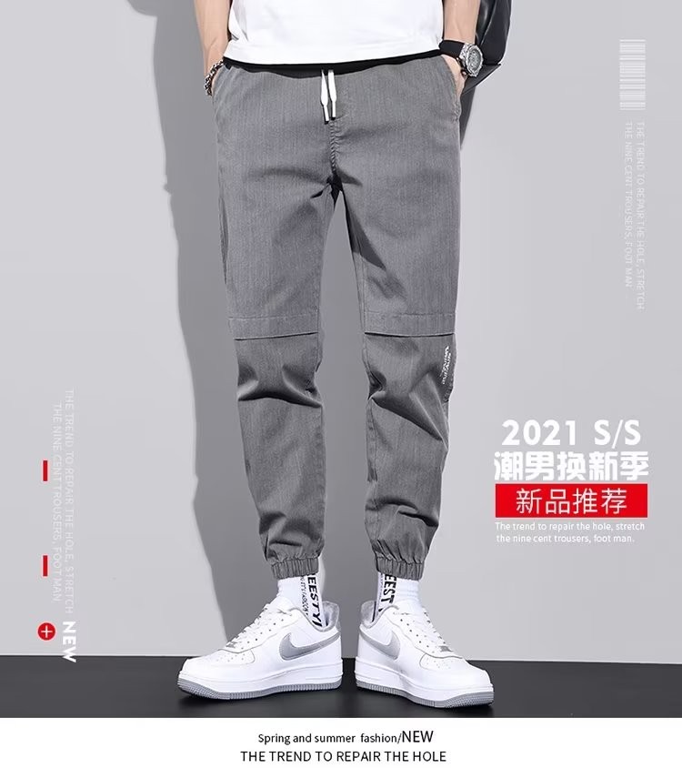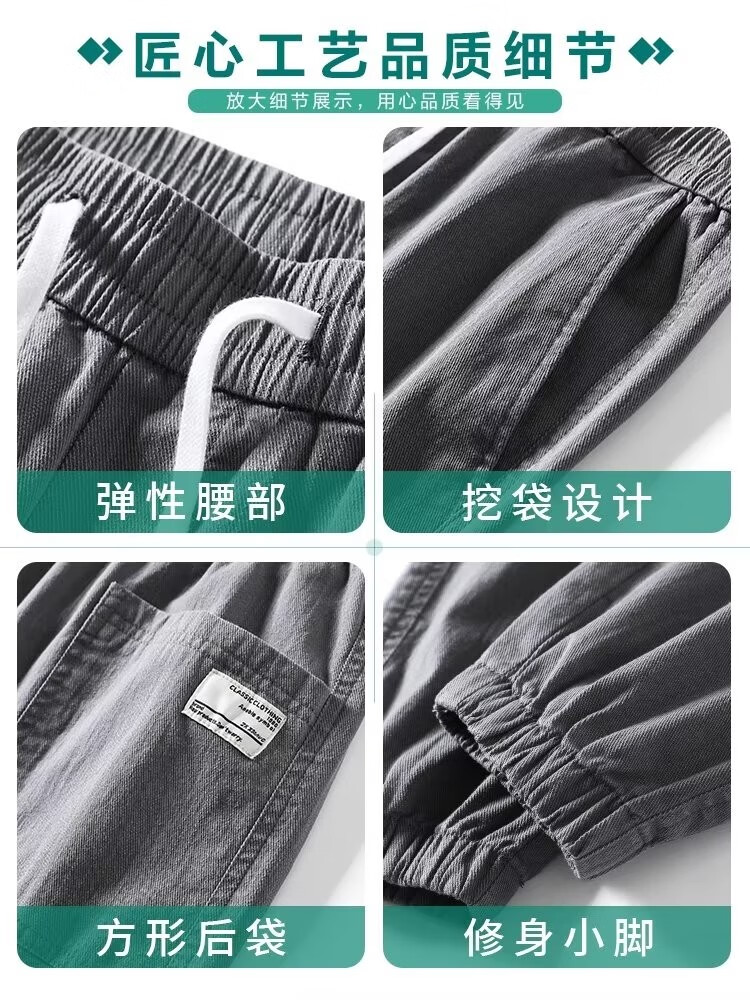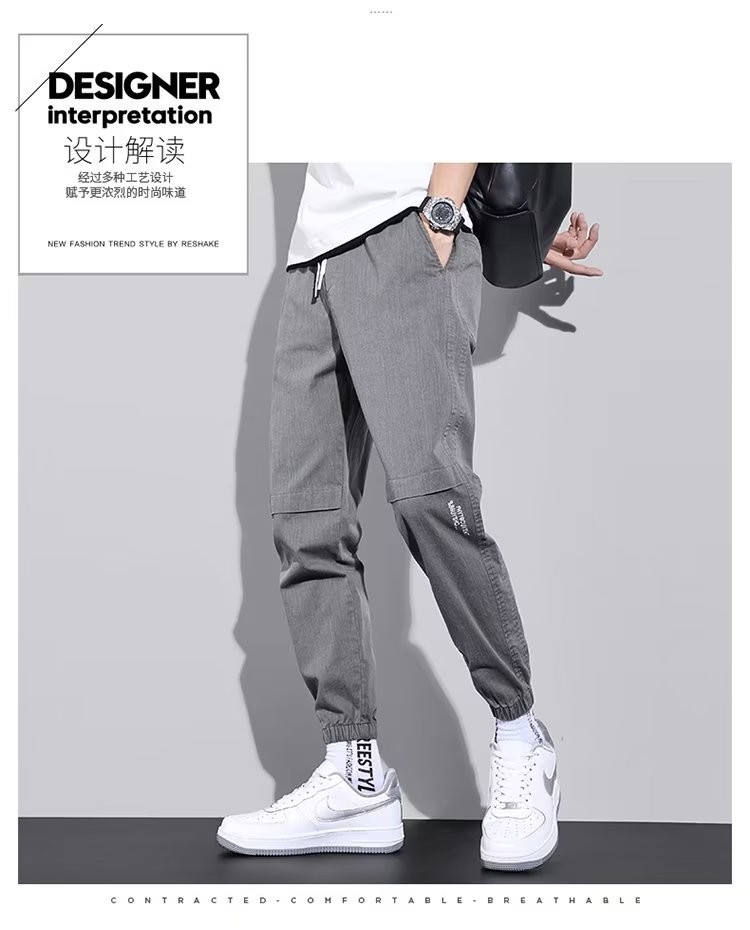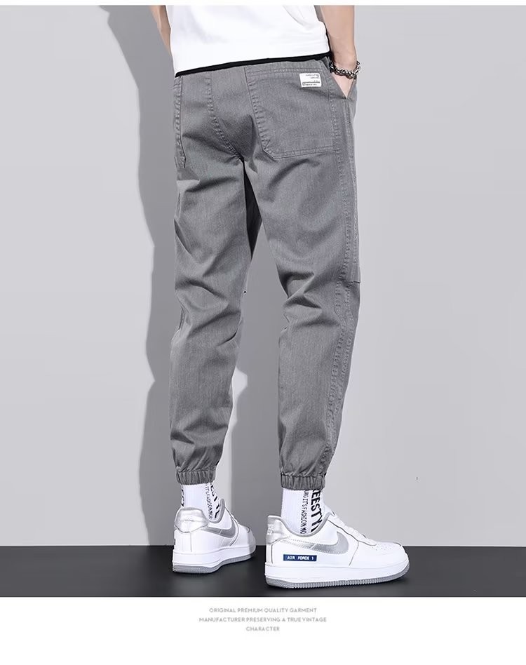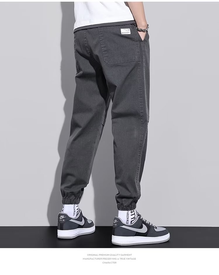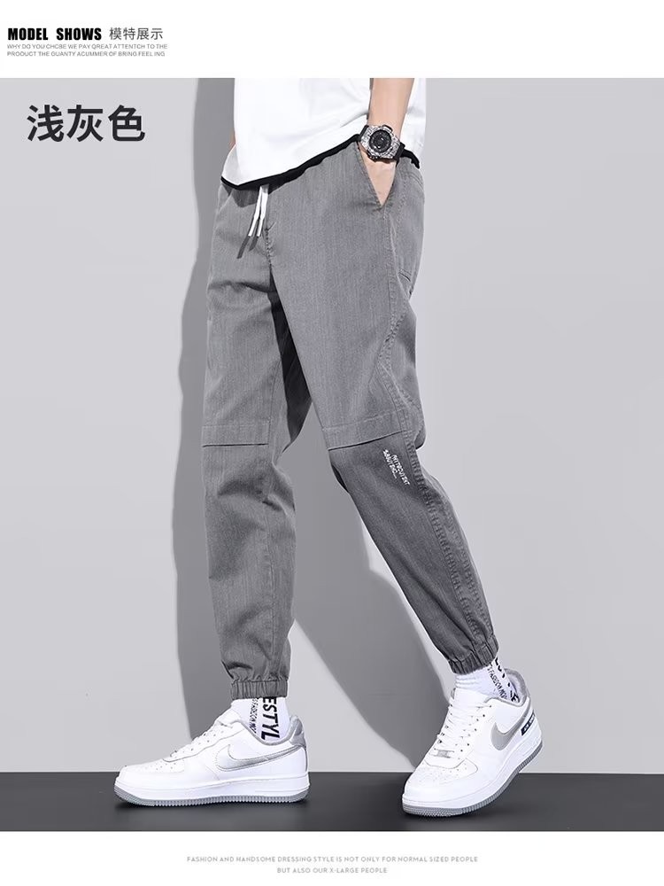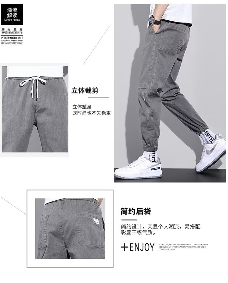 闳风休闲裤子男士春秋新款夏季薄款弹力透气束脚裤宽松哈伦工装男裤 黑色 XL(建议120-135斤)