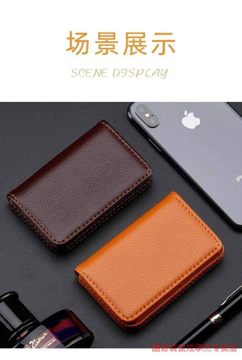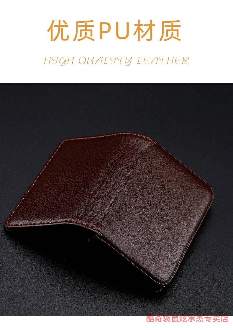 酷奇袋鼠商务名片夹女士时尚名片盒男士桌面办公大容量名片包卡包创意卡盒 棕色