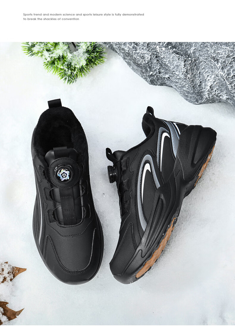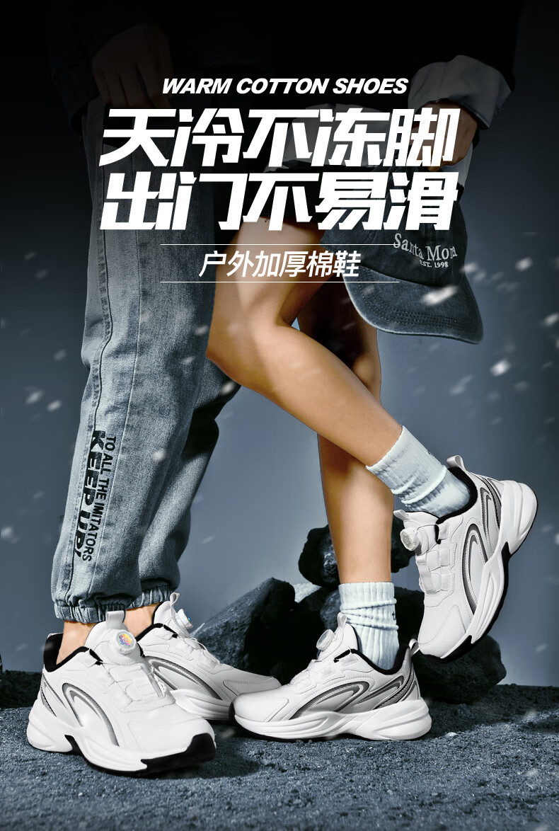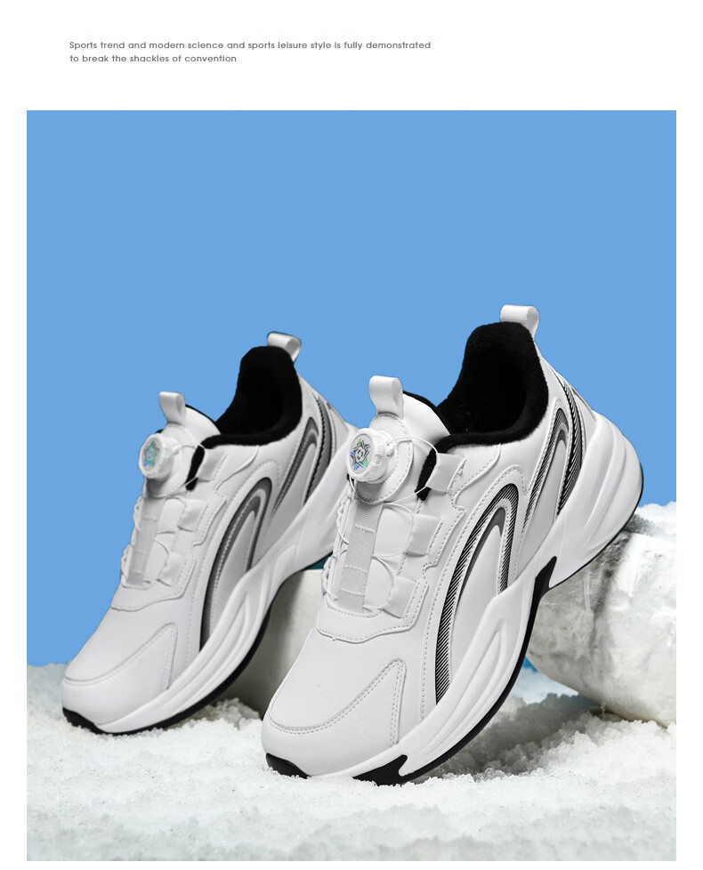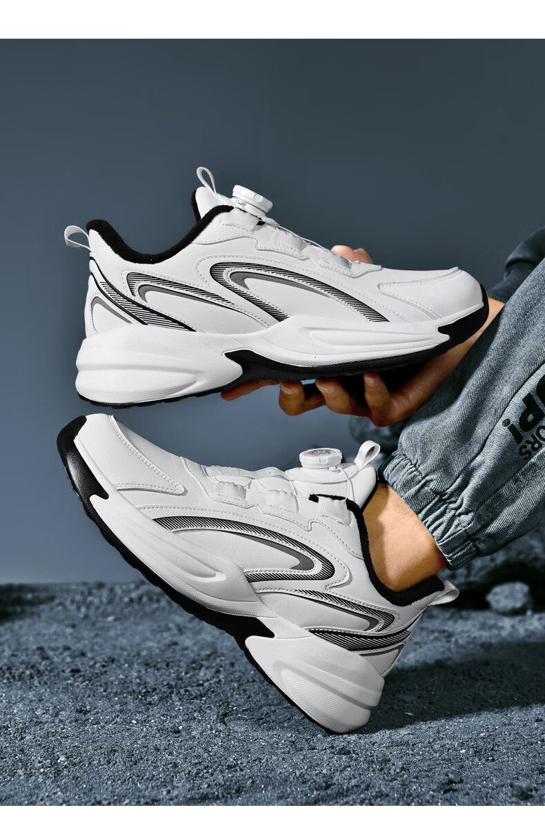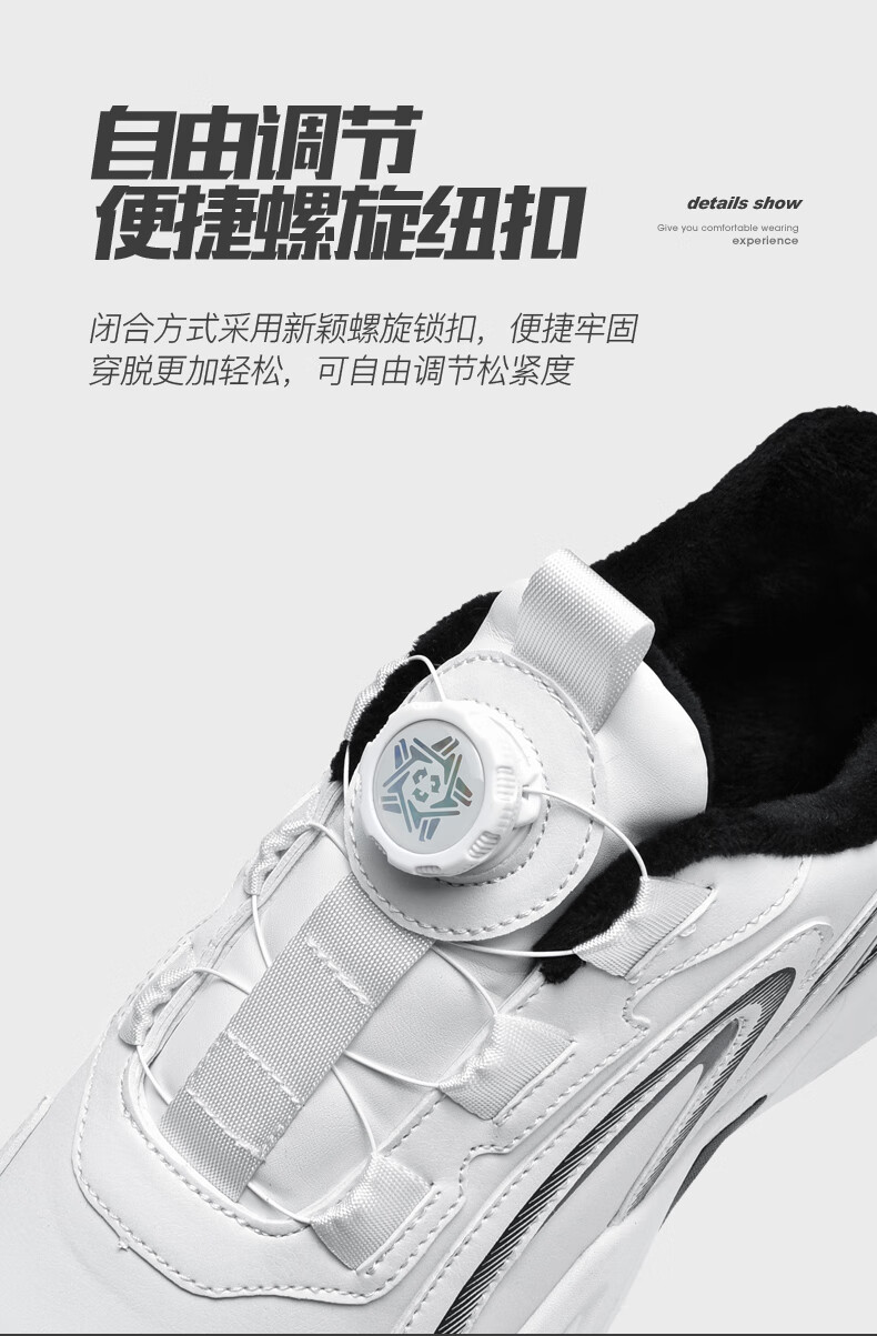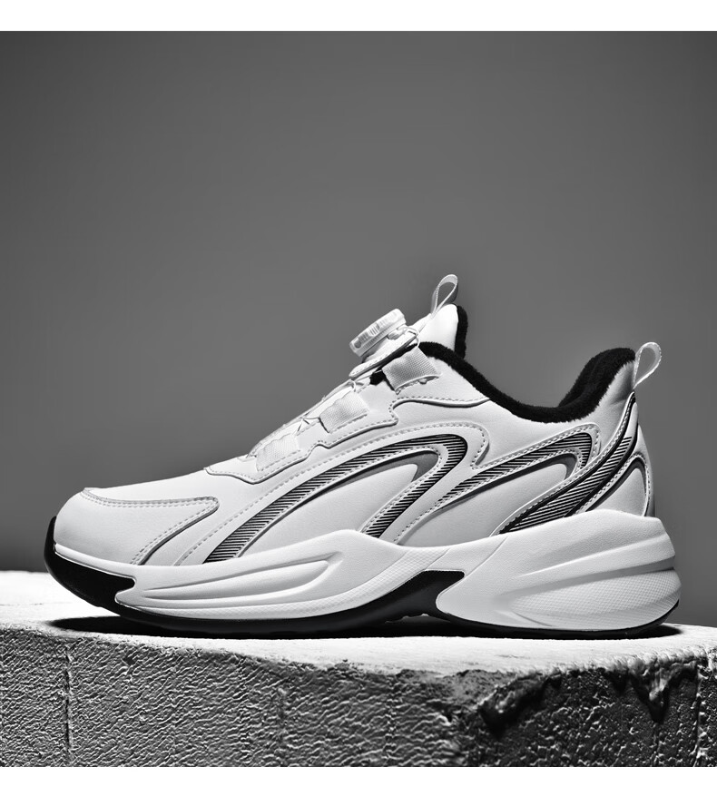 Wuxi Extra Large Men's Shoes Autumn and Winter Youth Sports Shoes Rotary Buckle Big Children Junior High School Students Plus Velvet Warm Boys Cotton Shoes 6636 White-Double Net 42