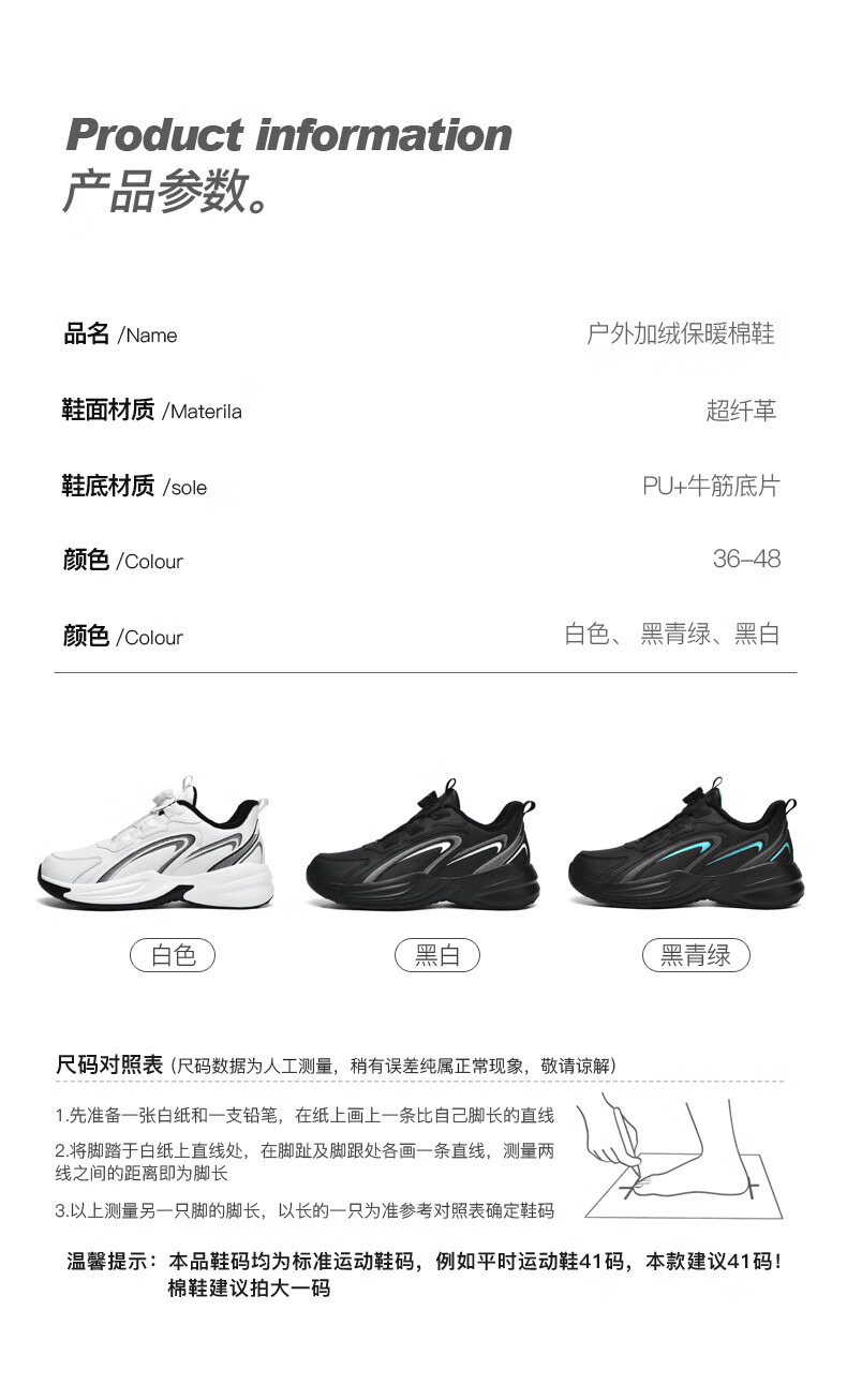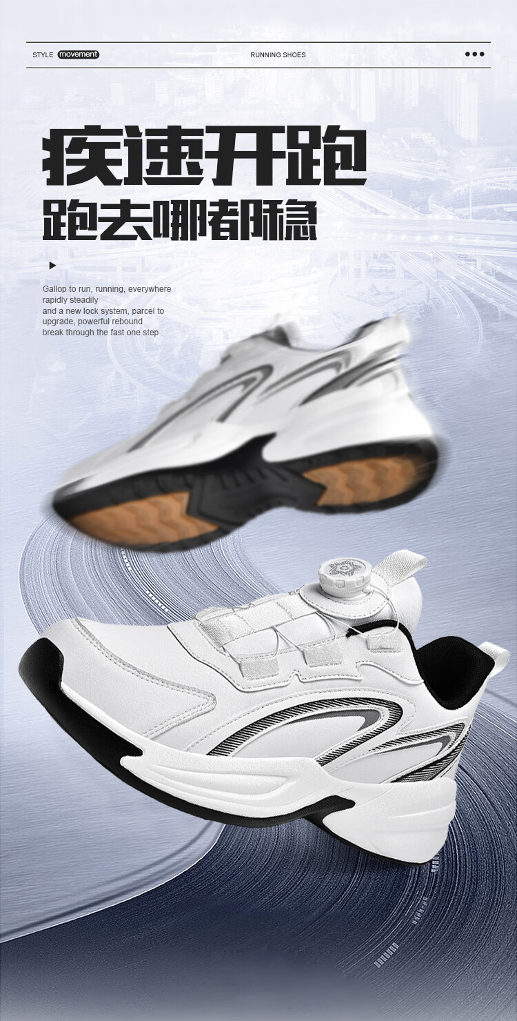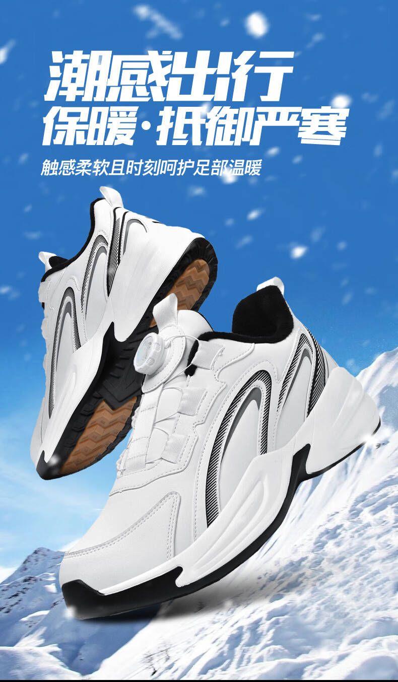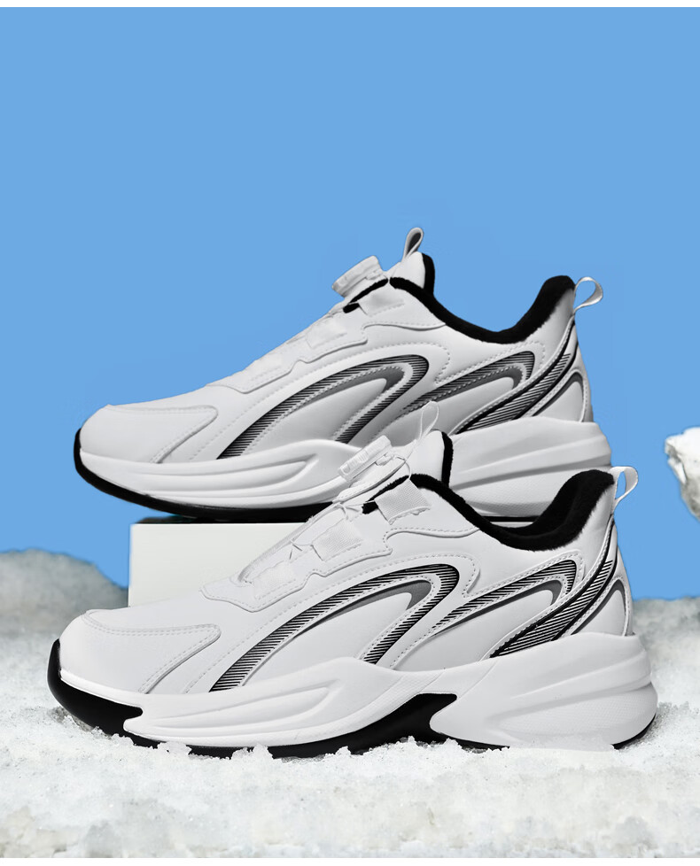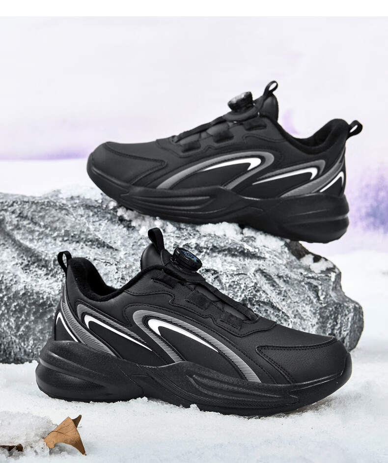 Wuxi Extra Large Men's Shoes Autumn and Winter Youth Sports Shoes Rotary Buckle Big Children Junior High School Students Plus Velvet Warm Boys Cotton Shoes 6636 White-Double Net 42