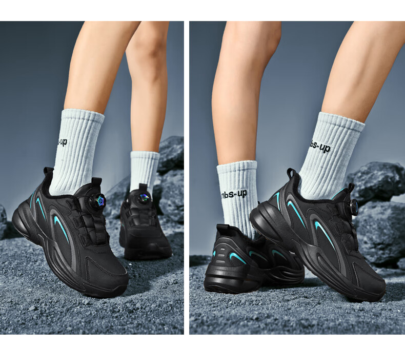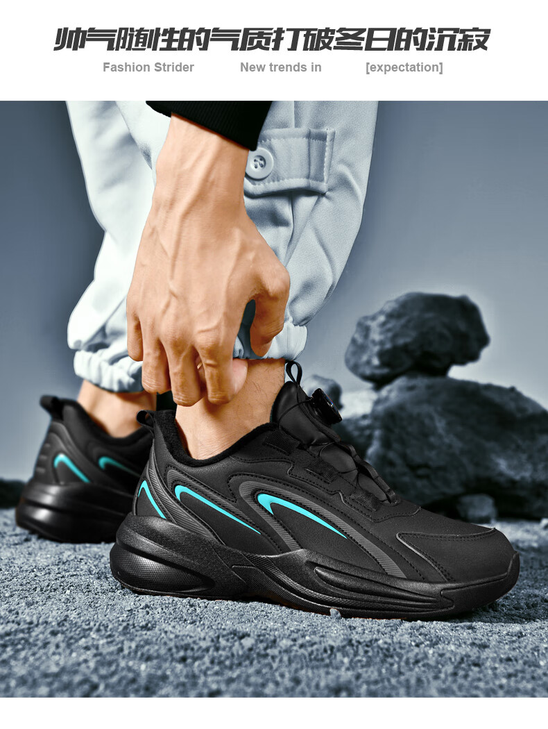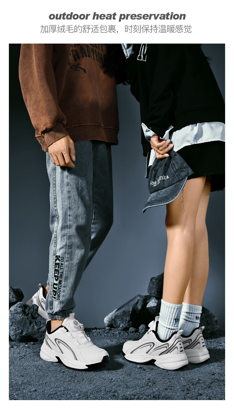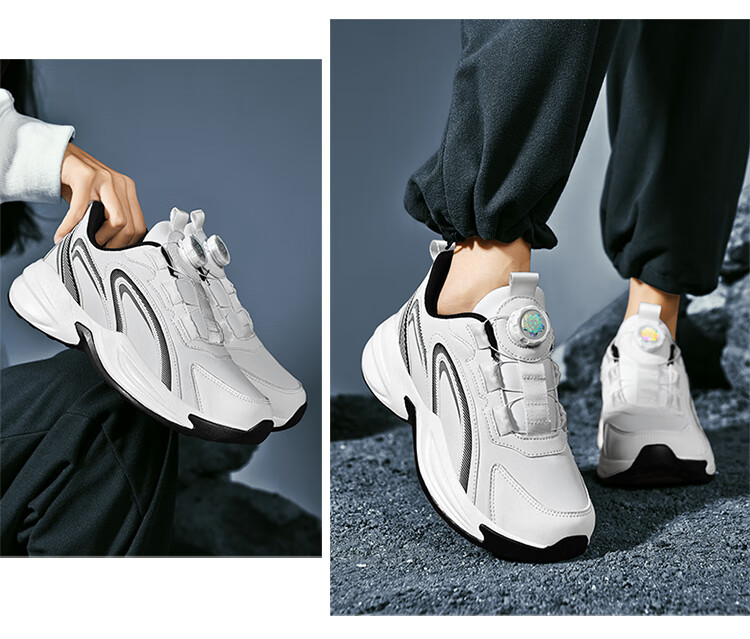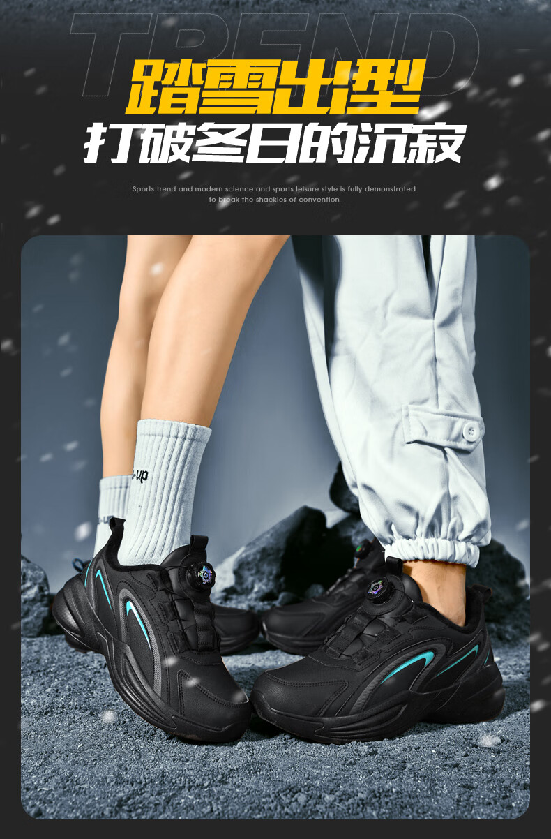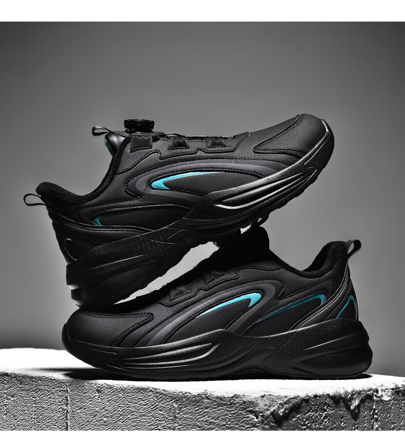 Wuxi Extra Large Men's Shoes Autumn and Winter Youth Sports Shoes Rotary Buckle Big Children Junior High School Students Plus Velvet Warm Boys Cotton Shoes 6636 White-Double Net 42