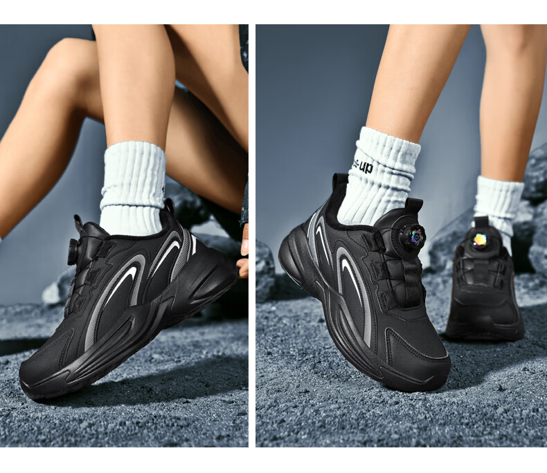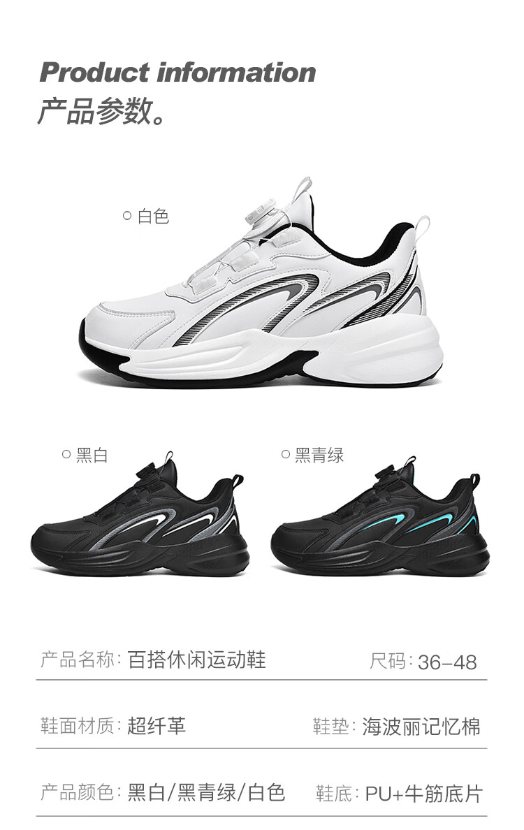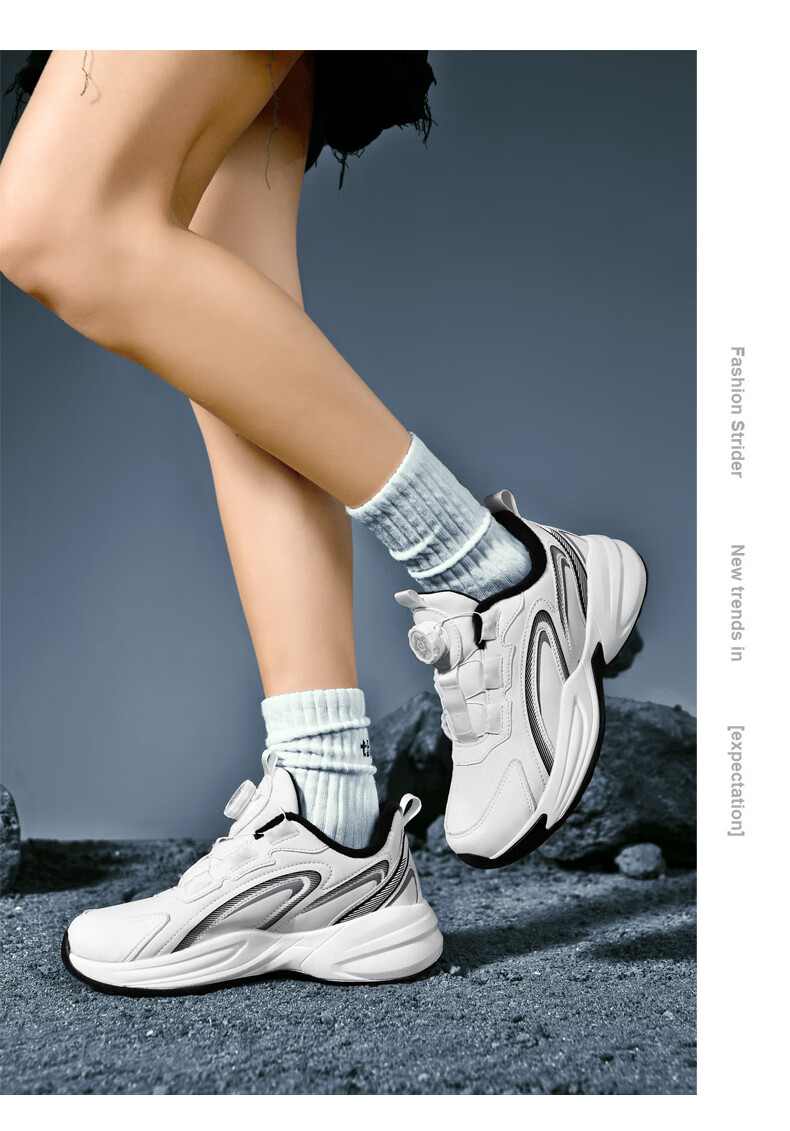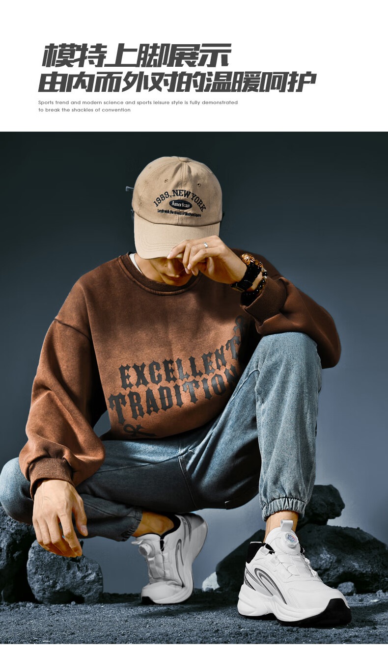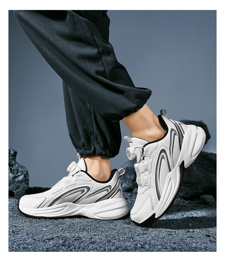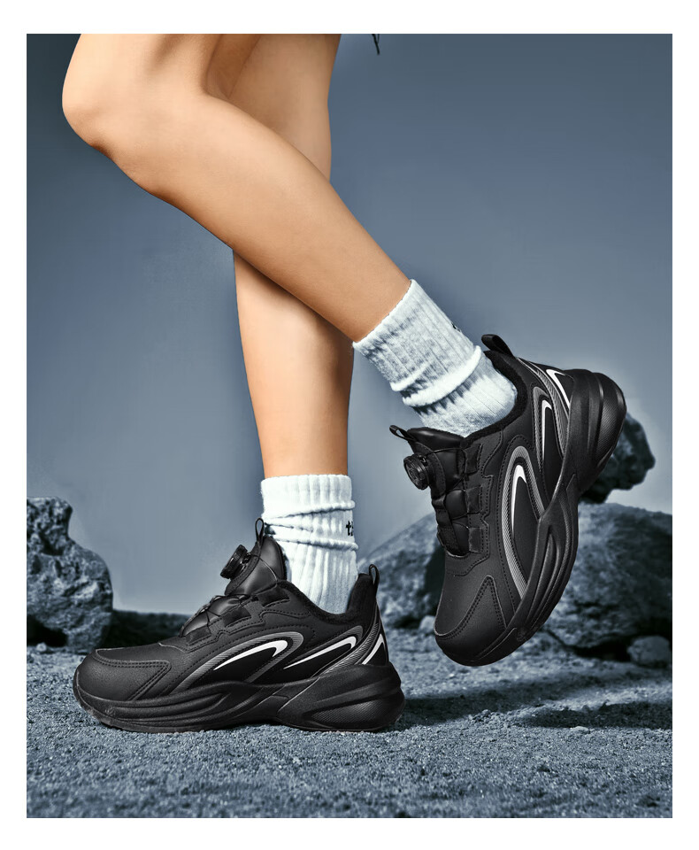Wuxi Extra Large Men's Shoes Autumn and Winter Youth Sports Shoes Rotary Buckle Big Children Junior High School Students Plus Velvet Warm Boys Cotton Shoes 6636 White-Double Net 42