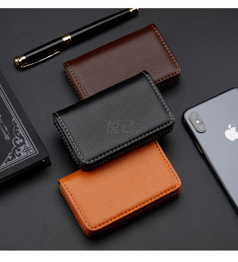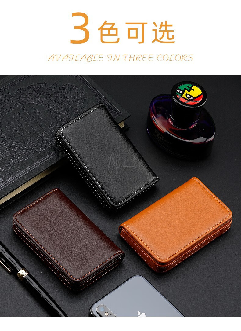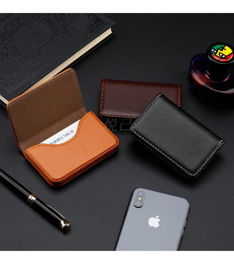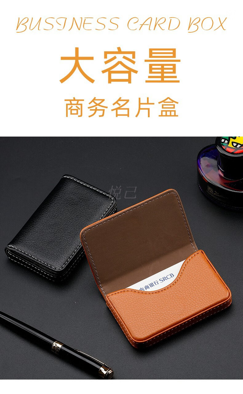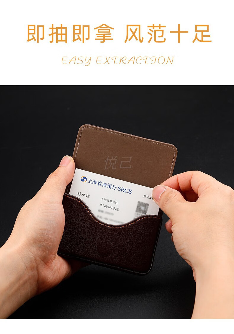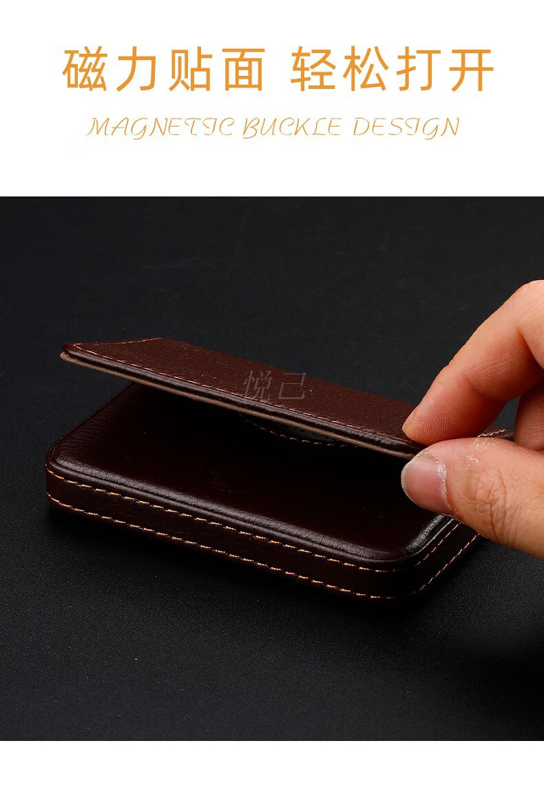 【现货速发】商务名片夹便携男士时尚手推式名片盒女士大容量名片包多功能卡包创意卡片收纳盒随身PU仿皮制 棕色
