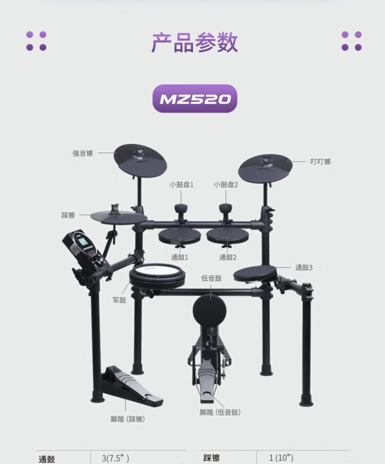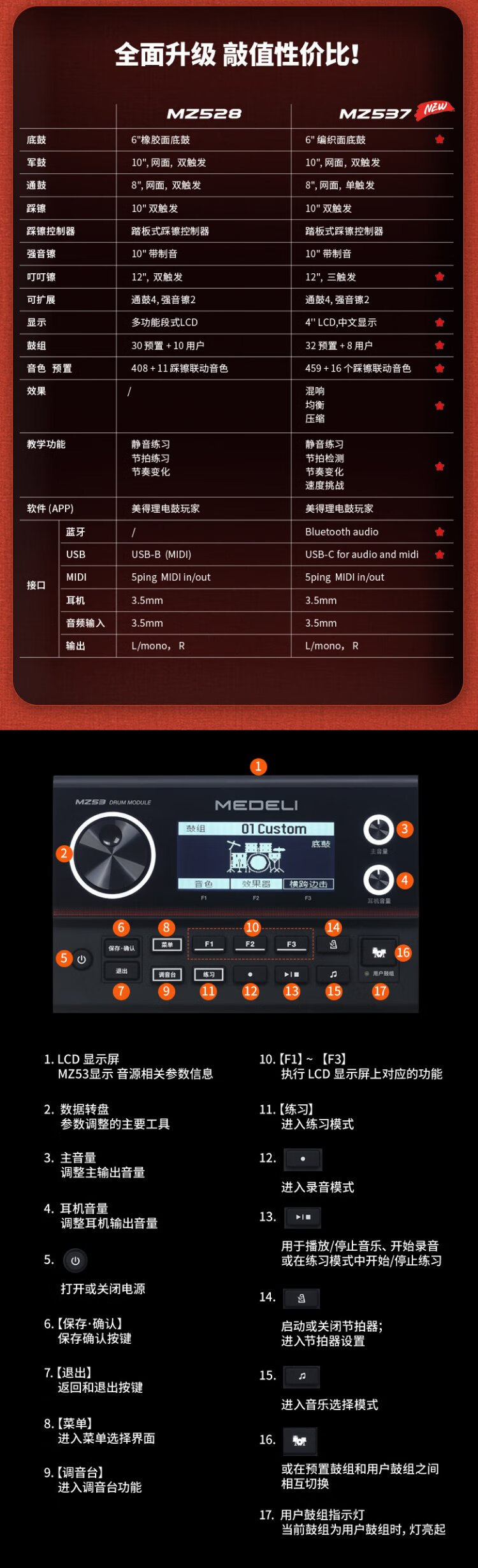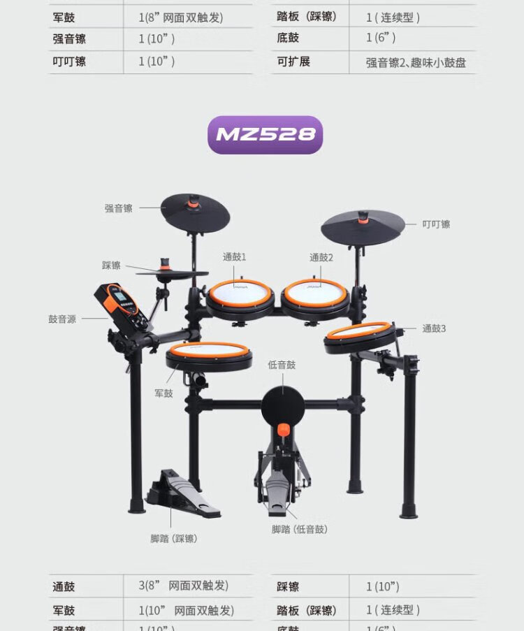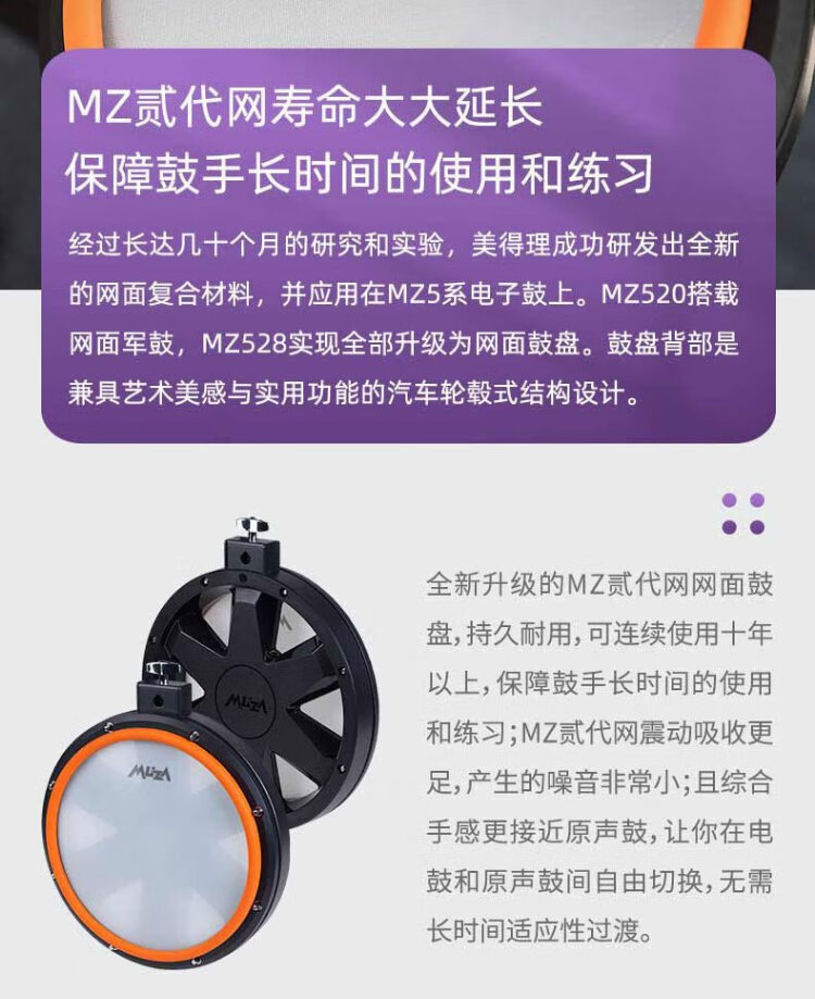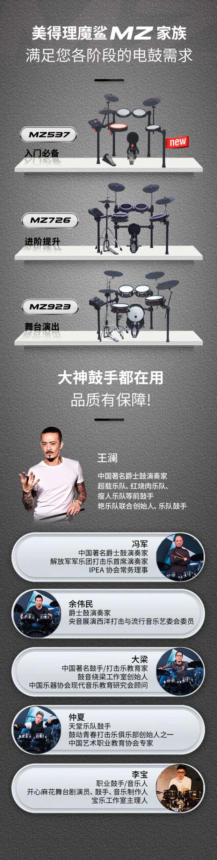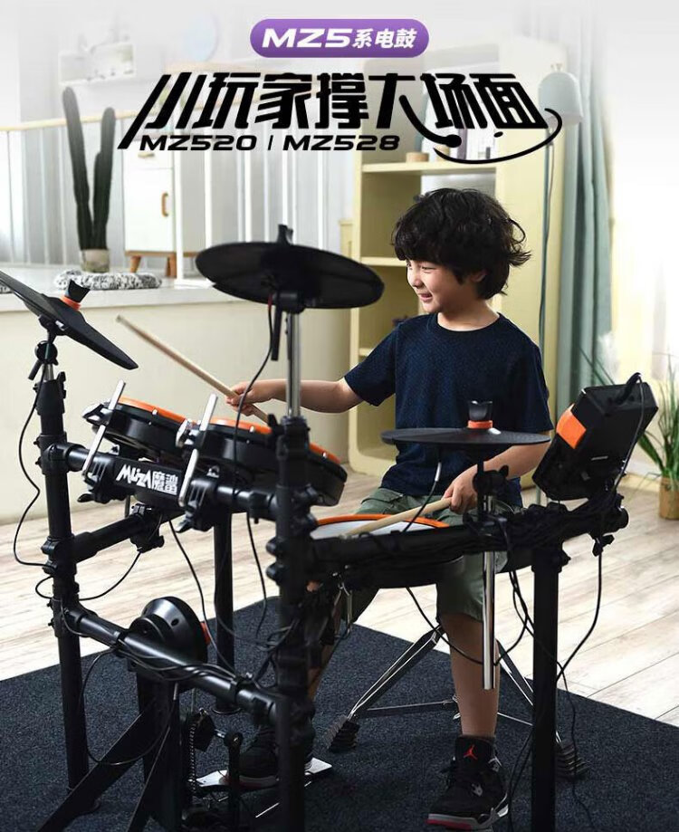 MEDELI Magic Shark Electronic Drum Professional Electric Drum Mesh Drum Plate Children's Beginner Grade Exam Performance Smart Electric Drum MZ528 5 Drums 4 Cymbals MZ528+AP66 Speaker丨Blue