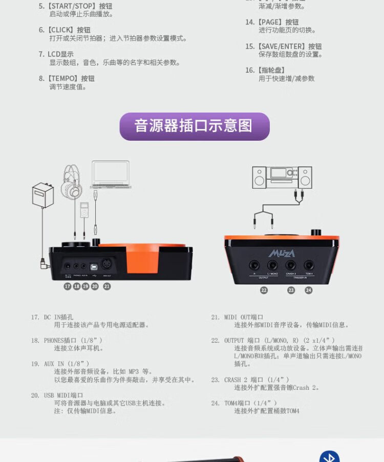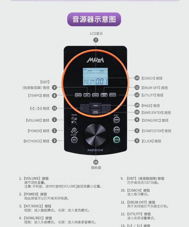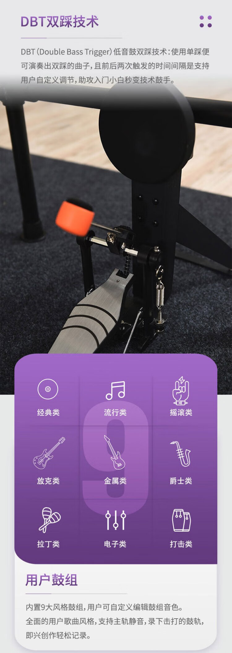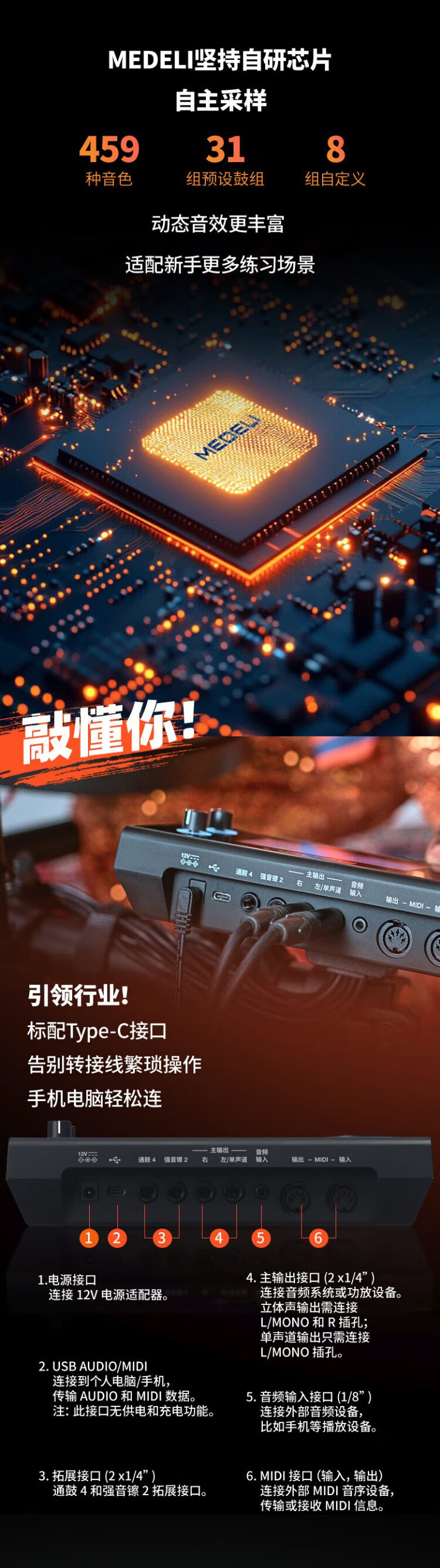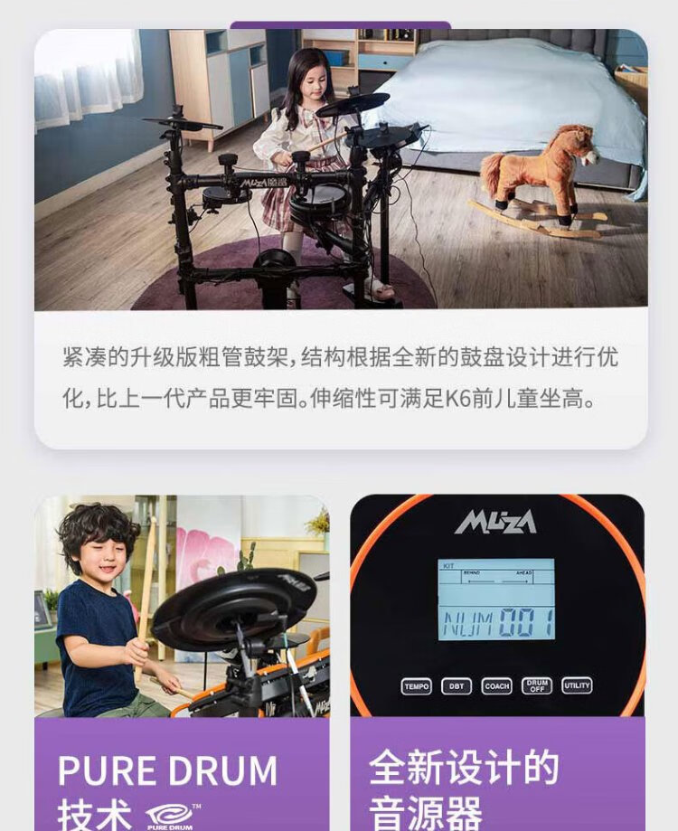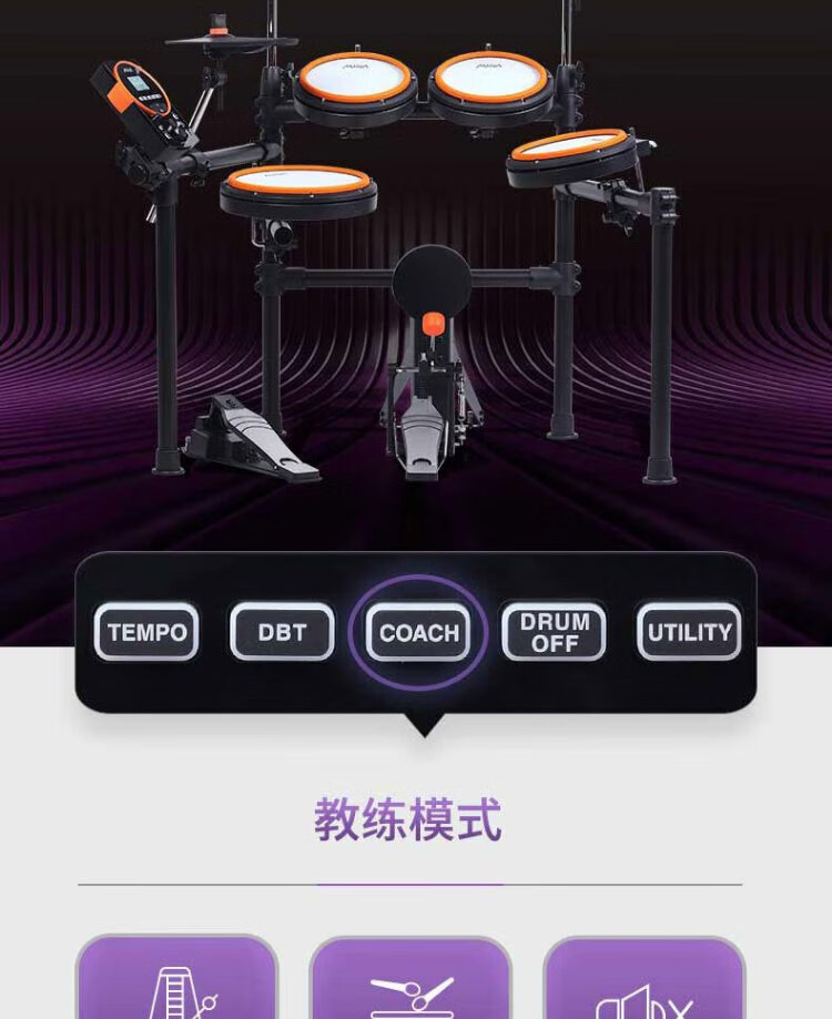 MEDELI Magic Shark Electronic Drum Professional Electric Drum Mesh Drum Plate Children's Beginner Grade Exam Performance Smart Electric Drum MZ528 5 Drums 4 Cymbals MZ528+AP66 Speaker丨Blue