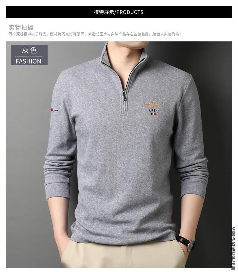 皮尔卡丹【轻奢高档】半拉链立领长袖T恤男士春秋季纯棉商务休闲卫衣针织 6625红色 2XL 185