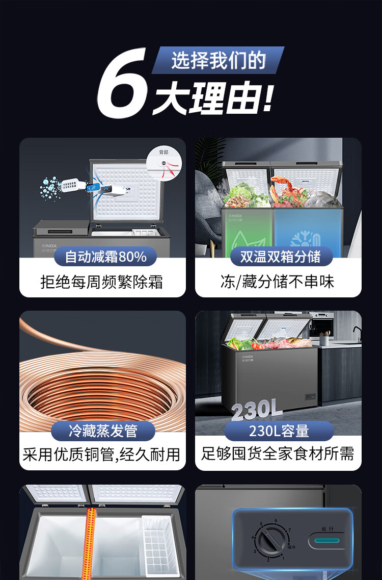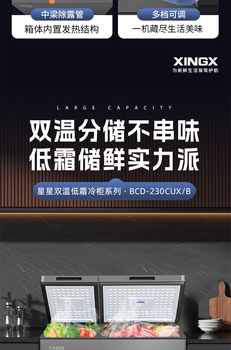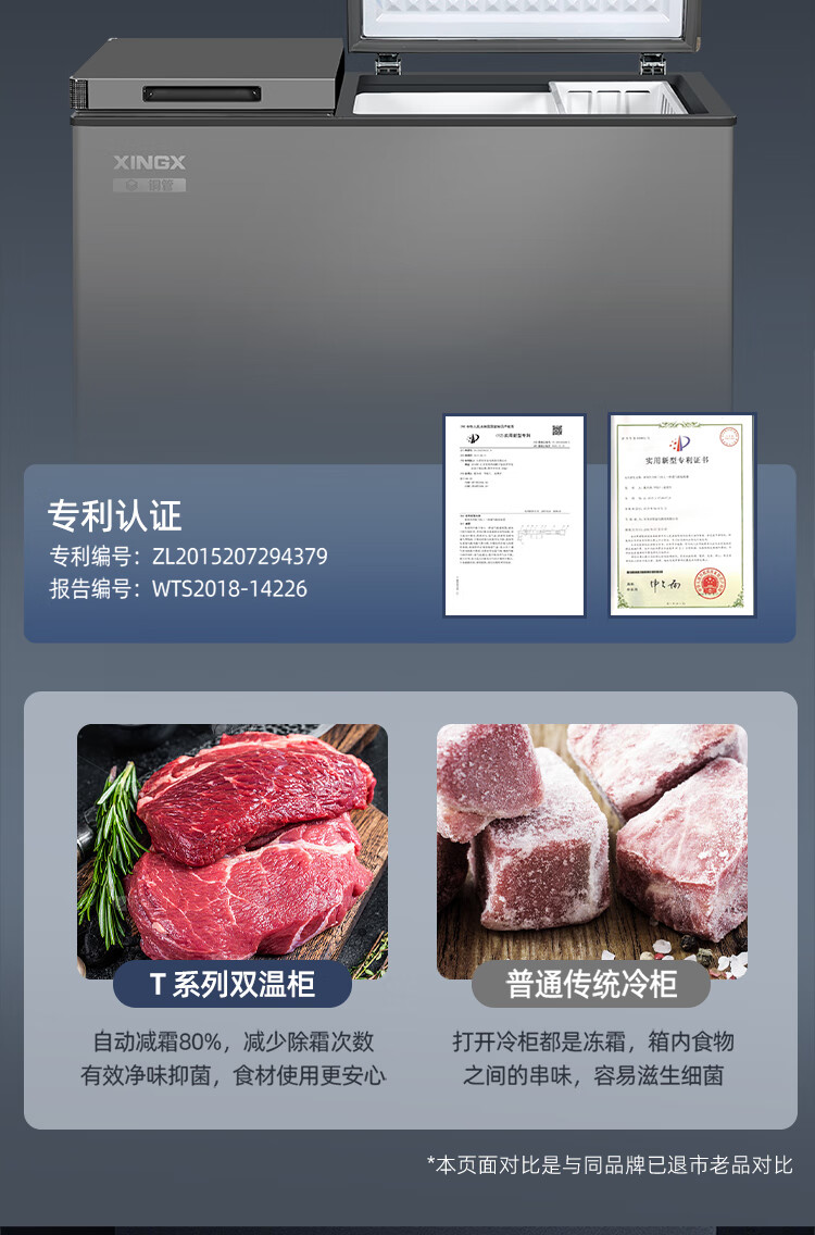 星星(XINGX)星星铜管双温柜冷冻冷藏卧式 【商用大柜】单温718升-718GD