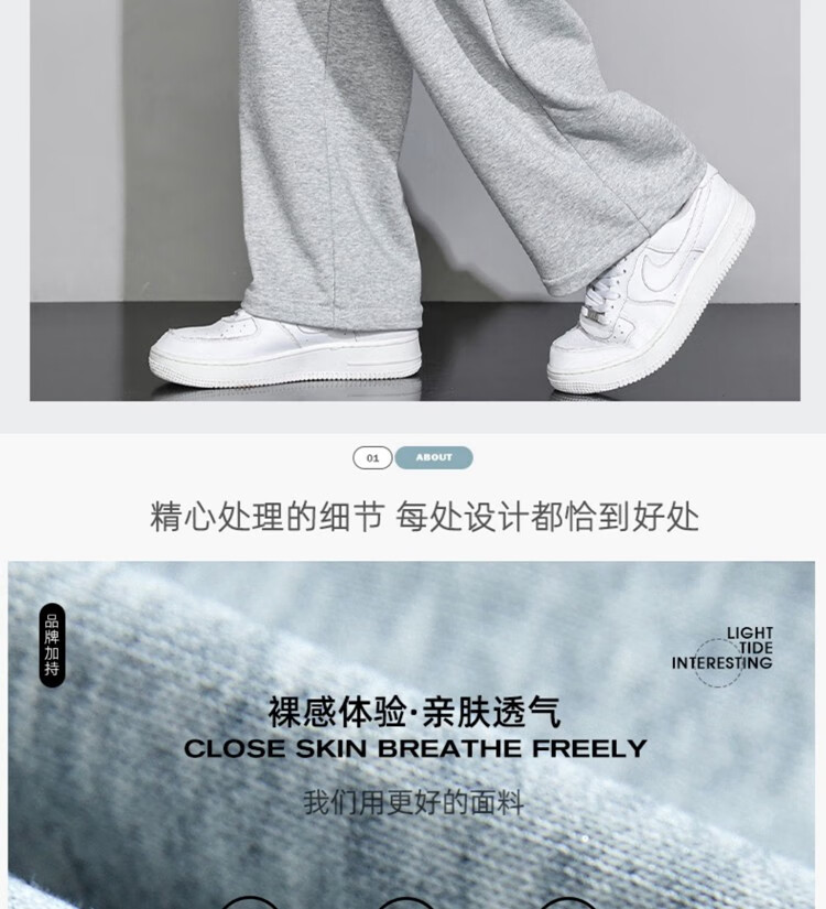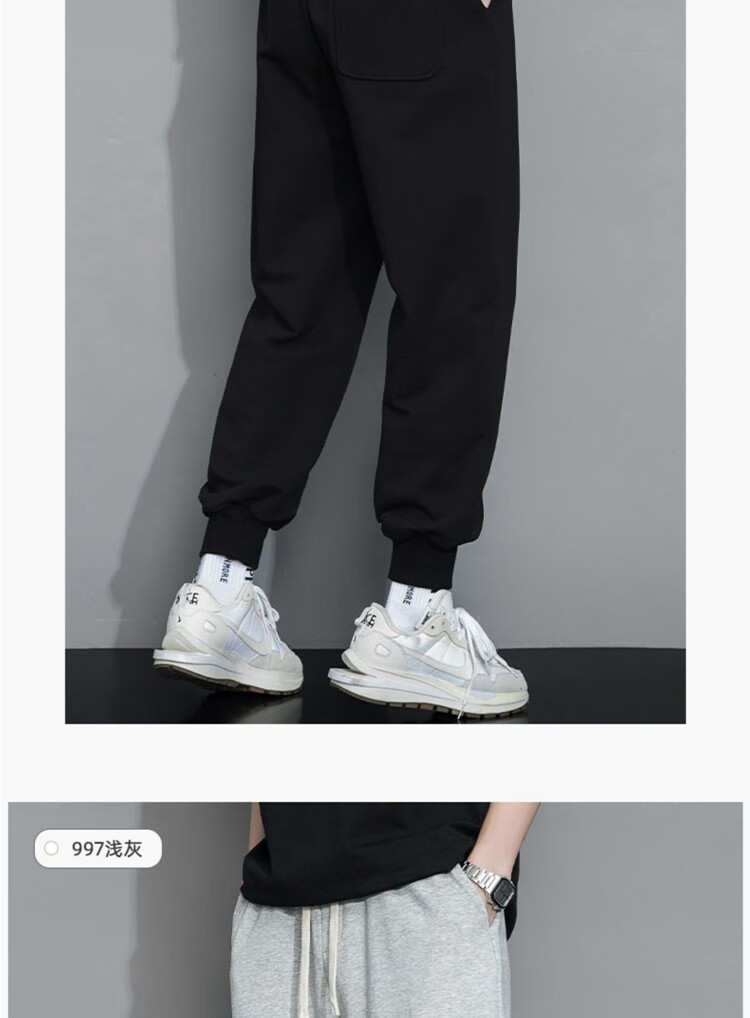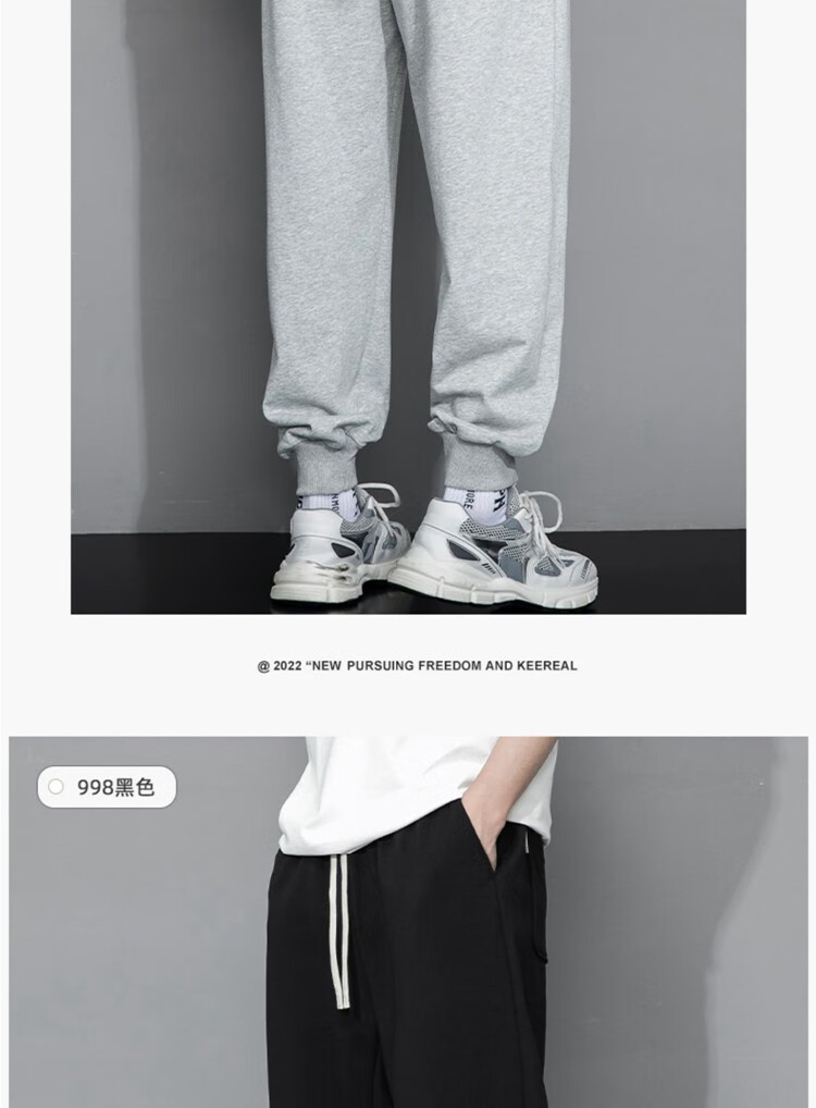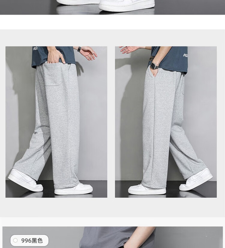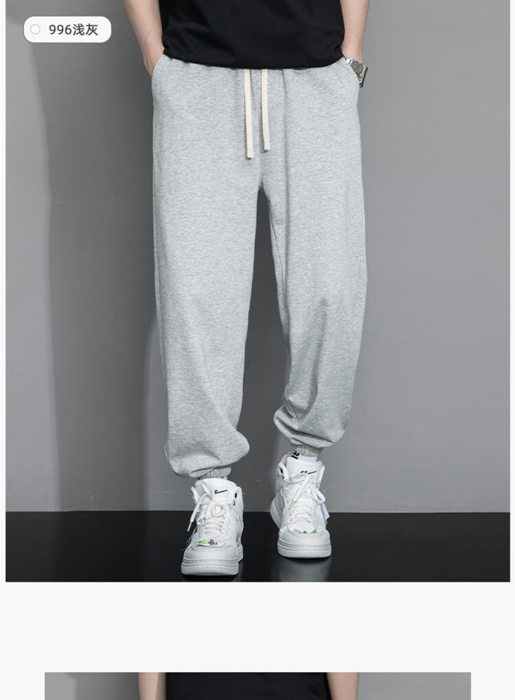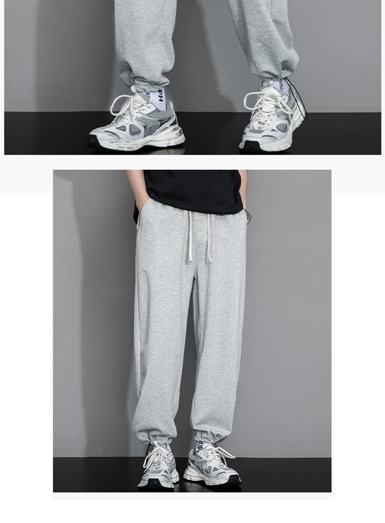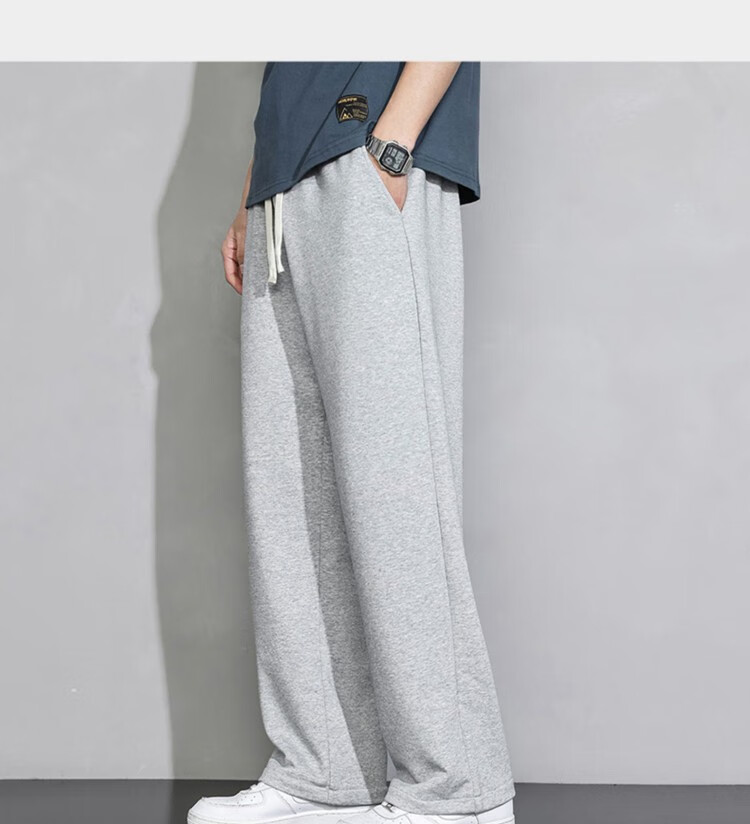 杉努(SHANNU)裤子男秋冬季纯色棉宽松加绒加厚休闲学生青年运动款直筒卫长裤 999灰色(高品质直筒) L (建议120-140斤)