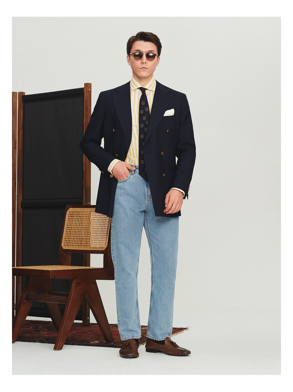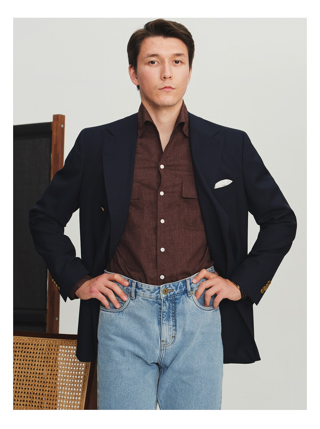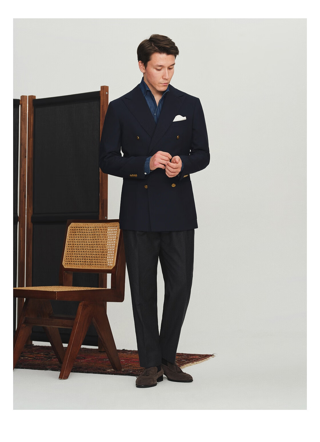 FULL MONTY秋冬季VBC布雷泽藏青色西服羊毛外套男士商务休闲西装双排扣单西 藏青色3292 42