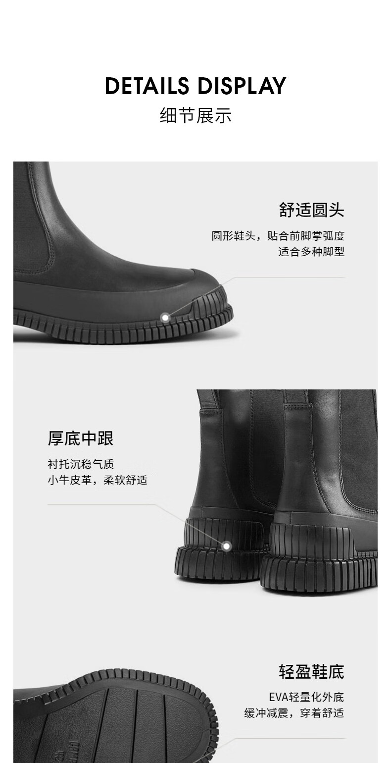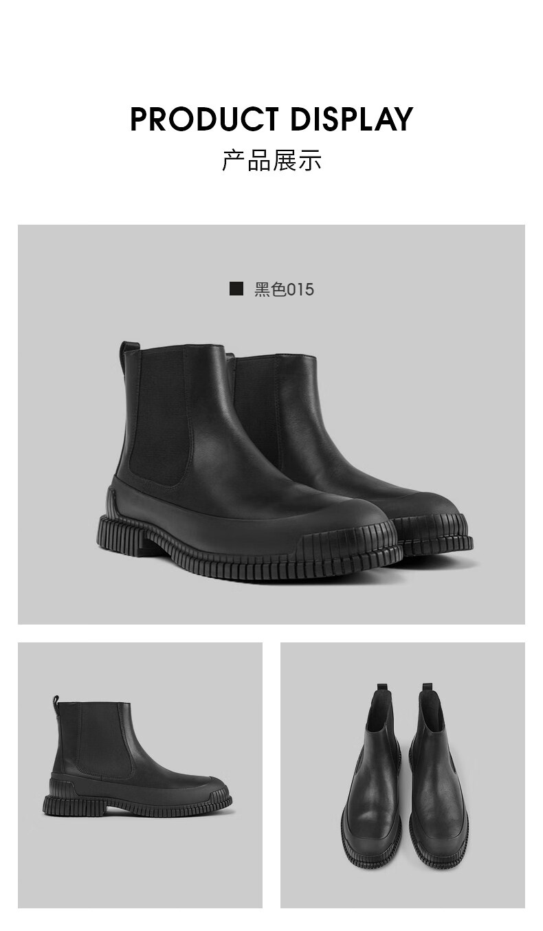 CAMPER男鞋Pix 厚底切尔西短靴复古英伦风软底套筒平底皮靴 黑色015 42