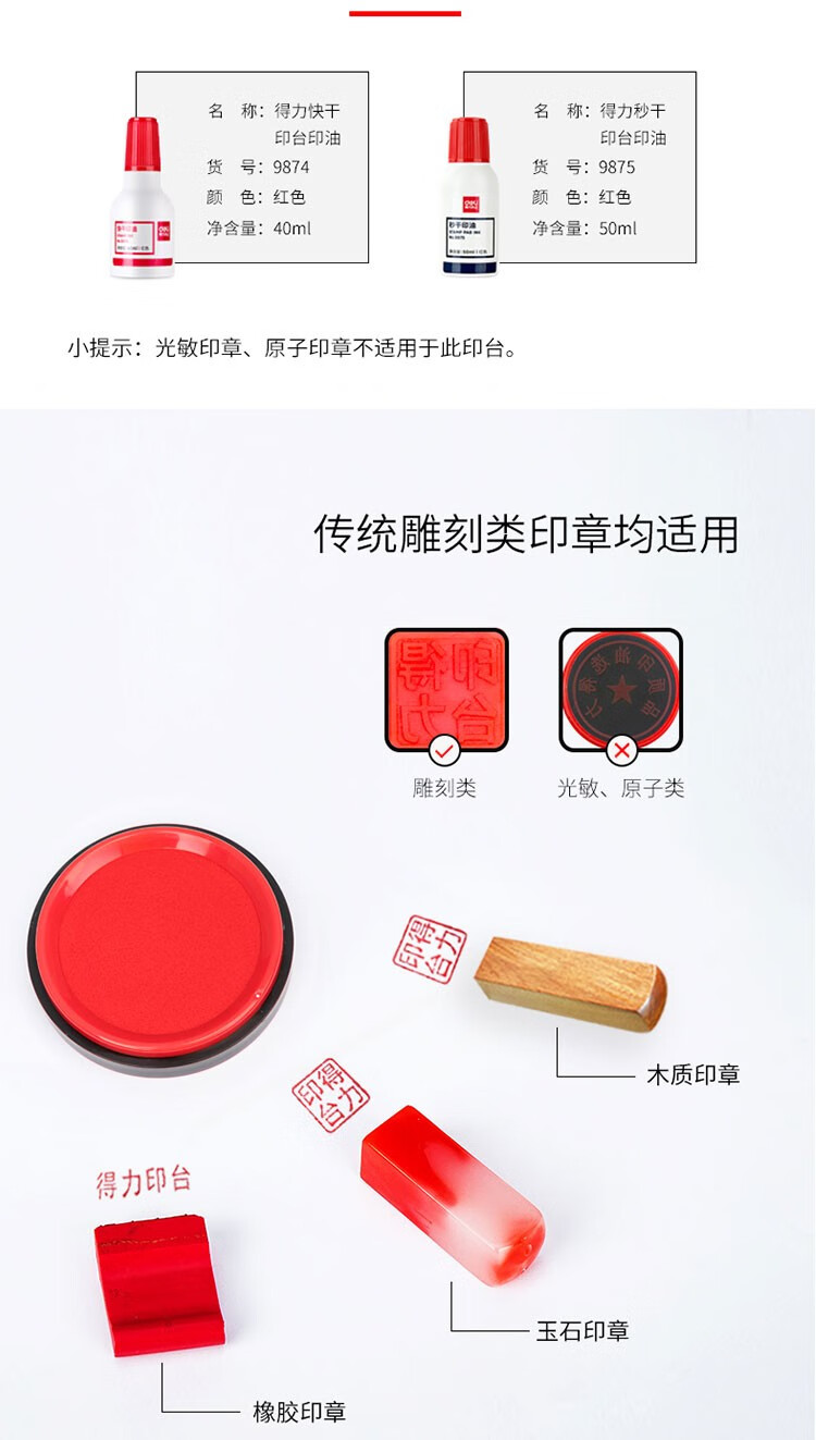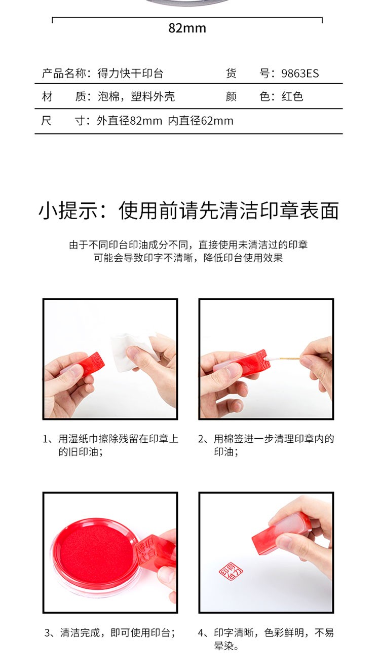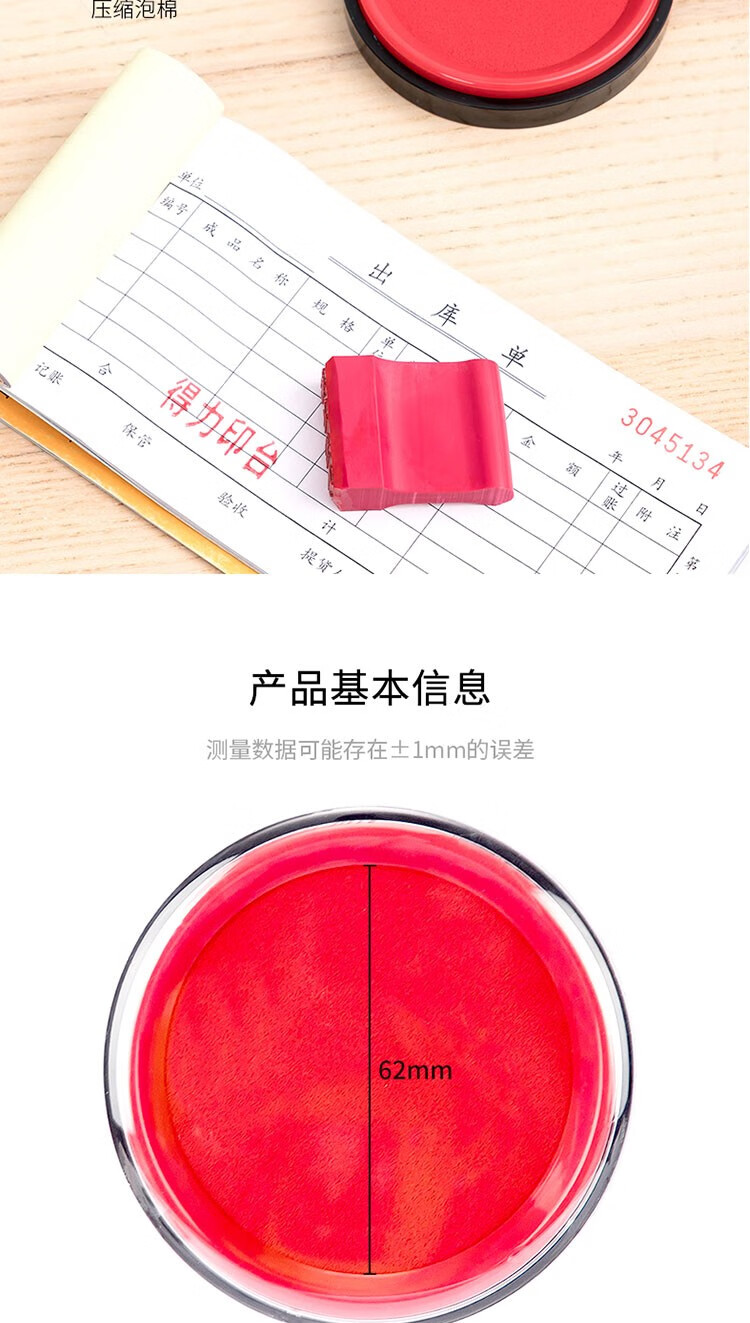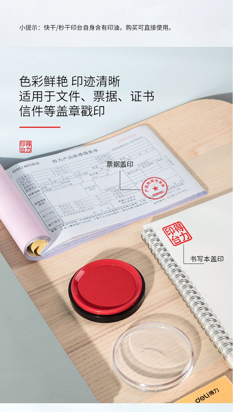Deli (deli) tampon encreur rond à séchage rapide rouge financier spécial joint d'encre tampon encreur fournitures de bureau 9863 taille moyenne couverture ciel et terre