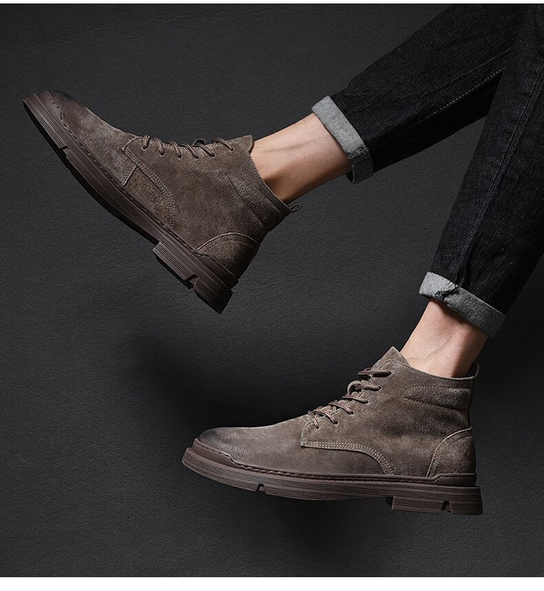 Fitti Pahris轻奢马丁靴男高帮男鞋2025冬季新款头层牛皮软底防臭休闲靴子男 咖啡色【品牌马丁靴】 41