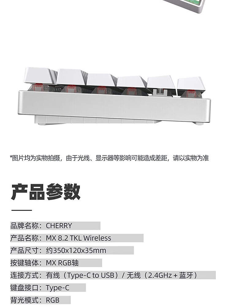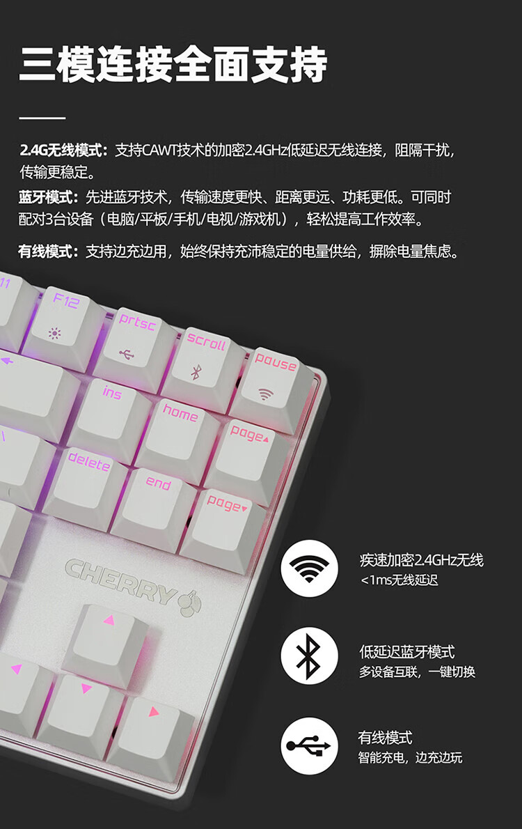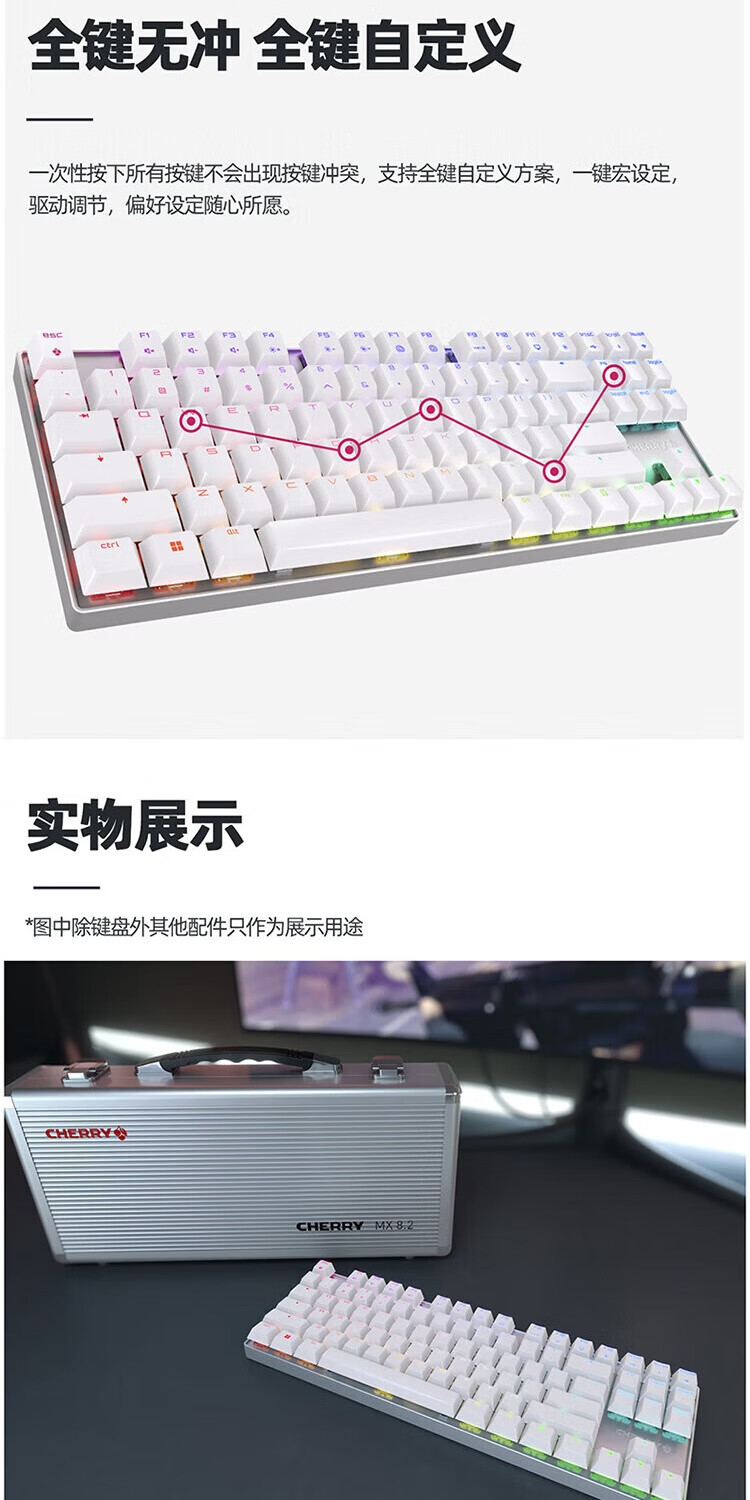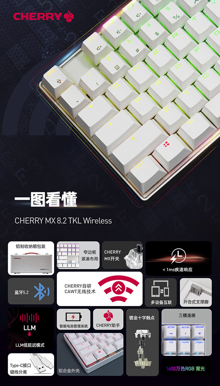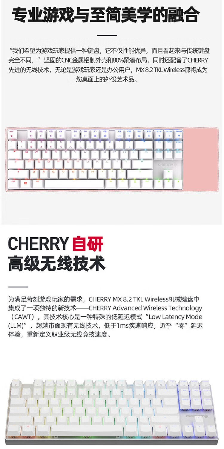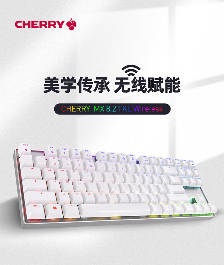 CHERRY Cherry MX8.2PRO TMR dual magic magnetic axis keyboard three-mode wireless fearless contract tile RT0.01 TMR magnetic resistance technology magnetic axis & mechanical axis can be mixed MX 8.2 TKL three-mode white green axis
