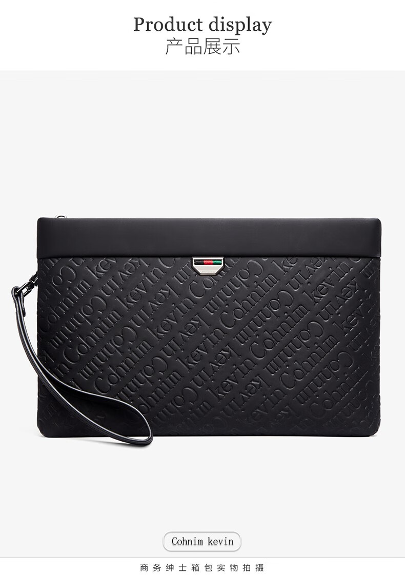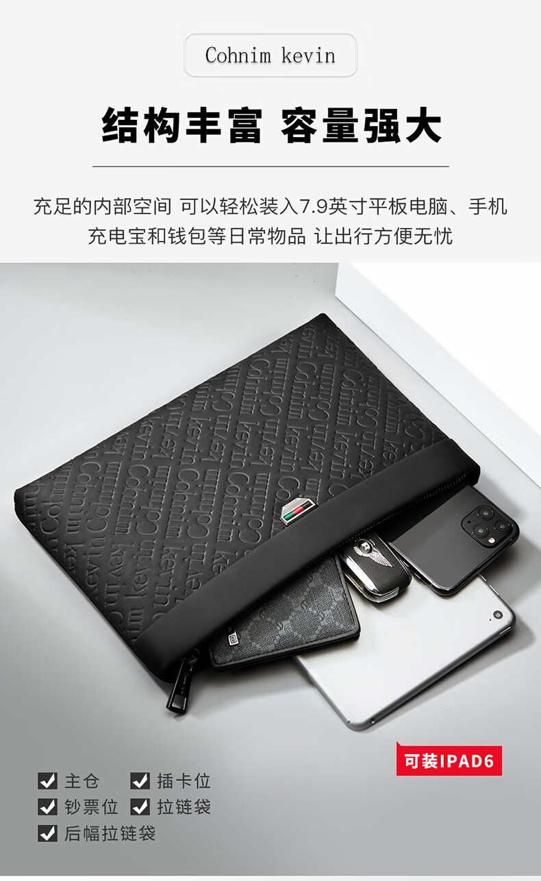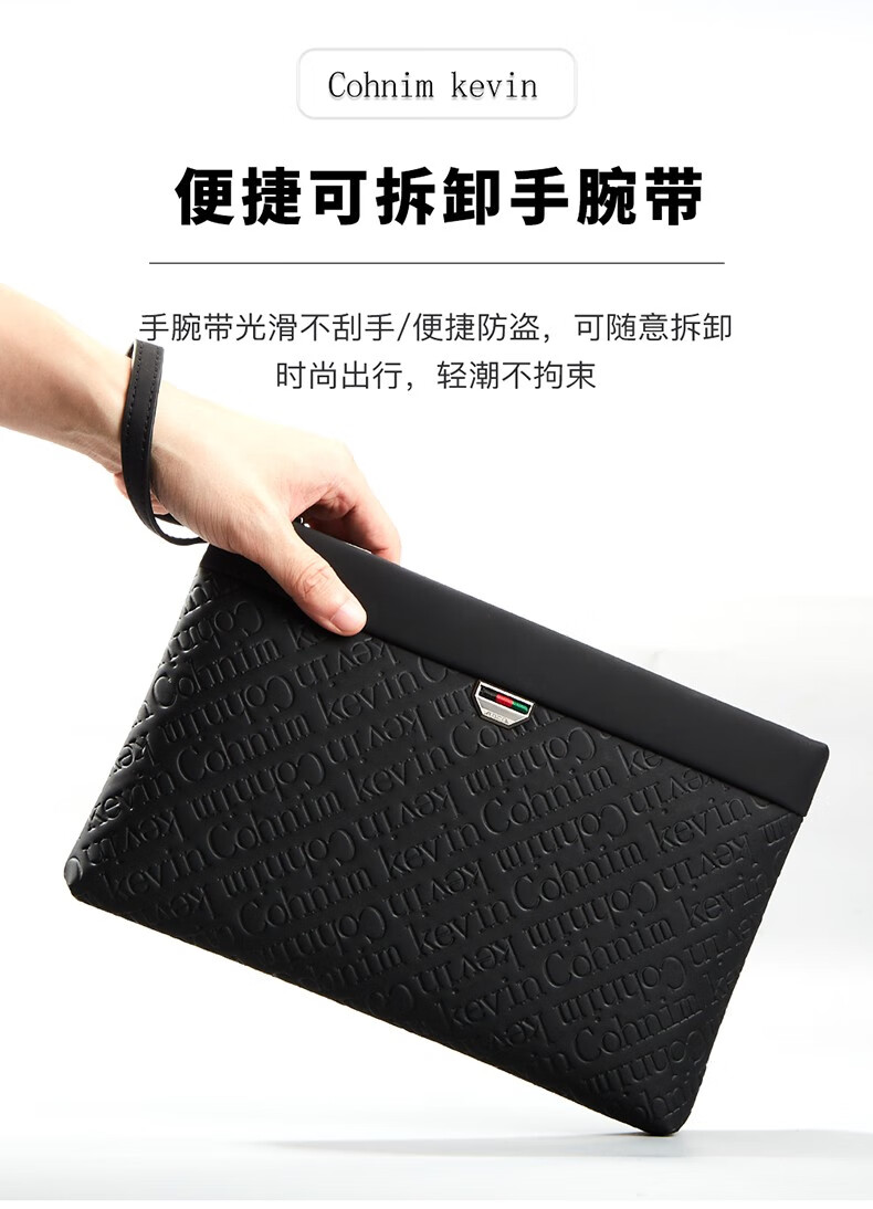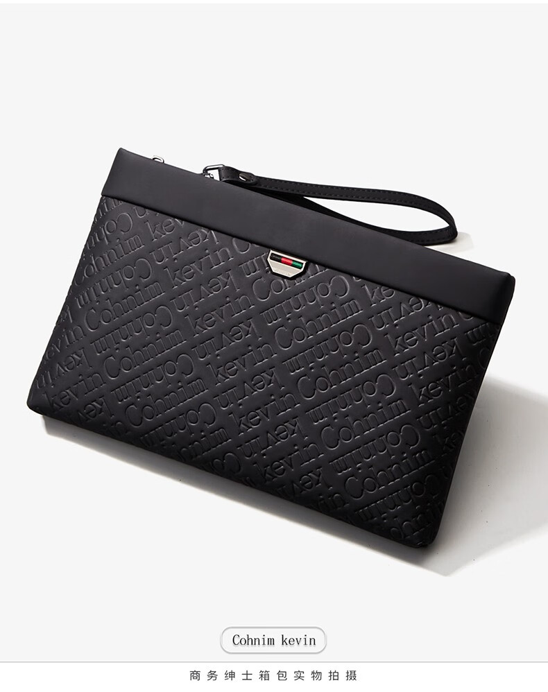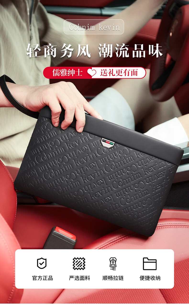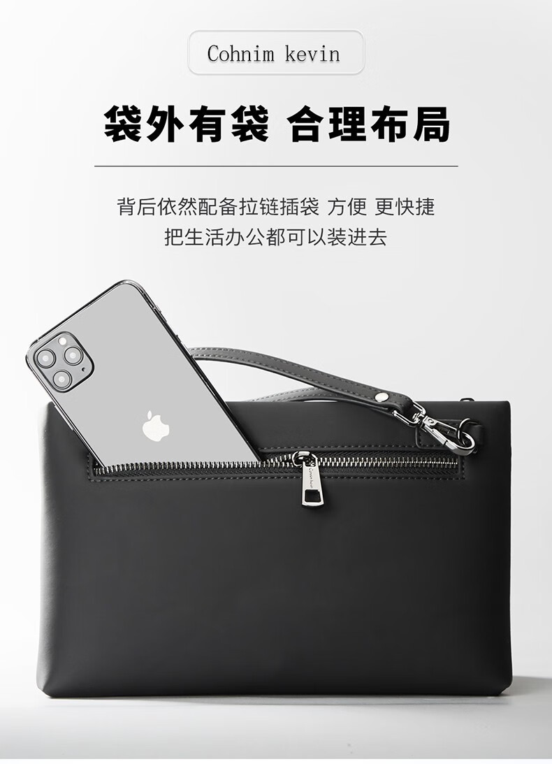 Cohnim kevin奢侈品男士手包手拿拉链男包手抓长钱包送老公男友教师节生日礼物 【时尚商务】c236黑色