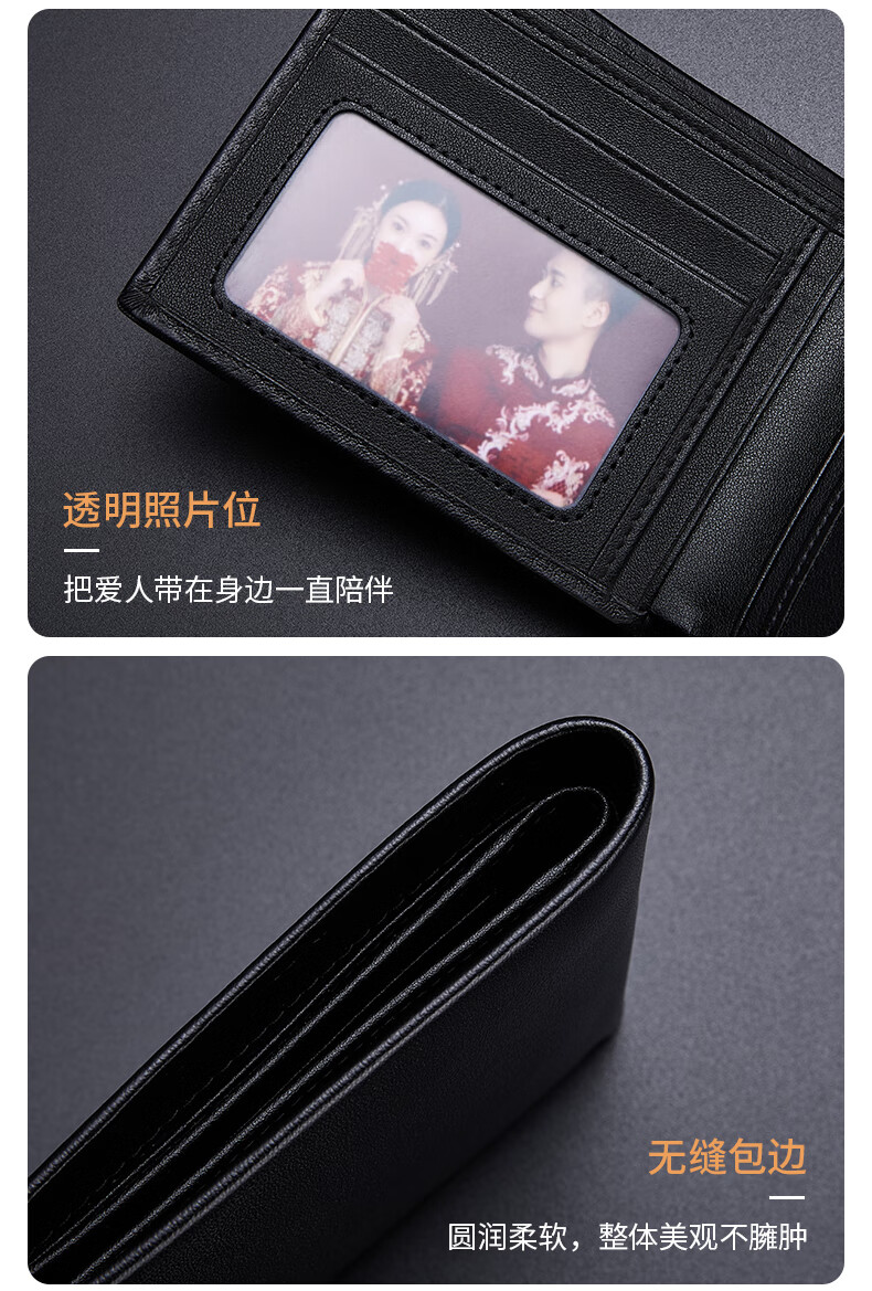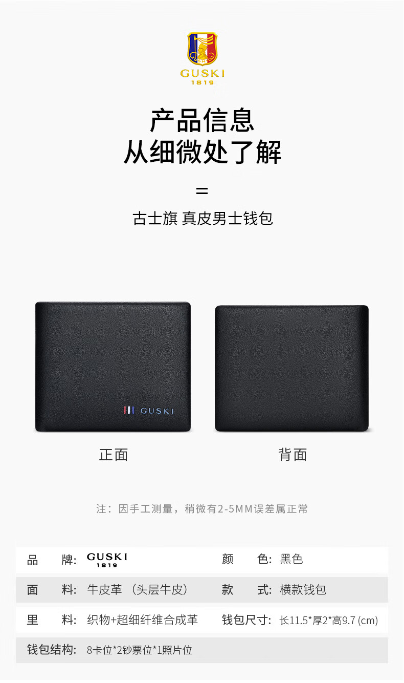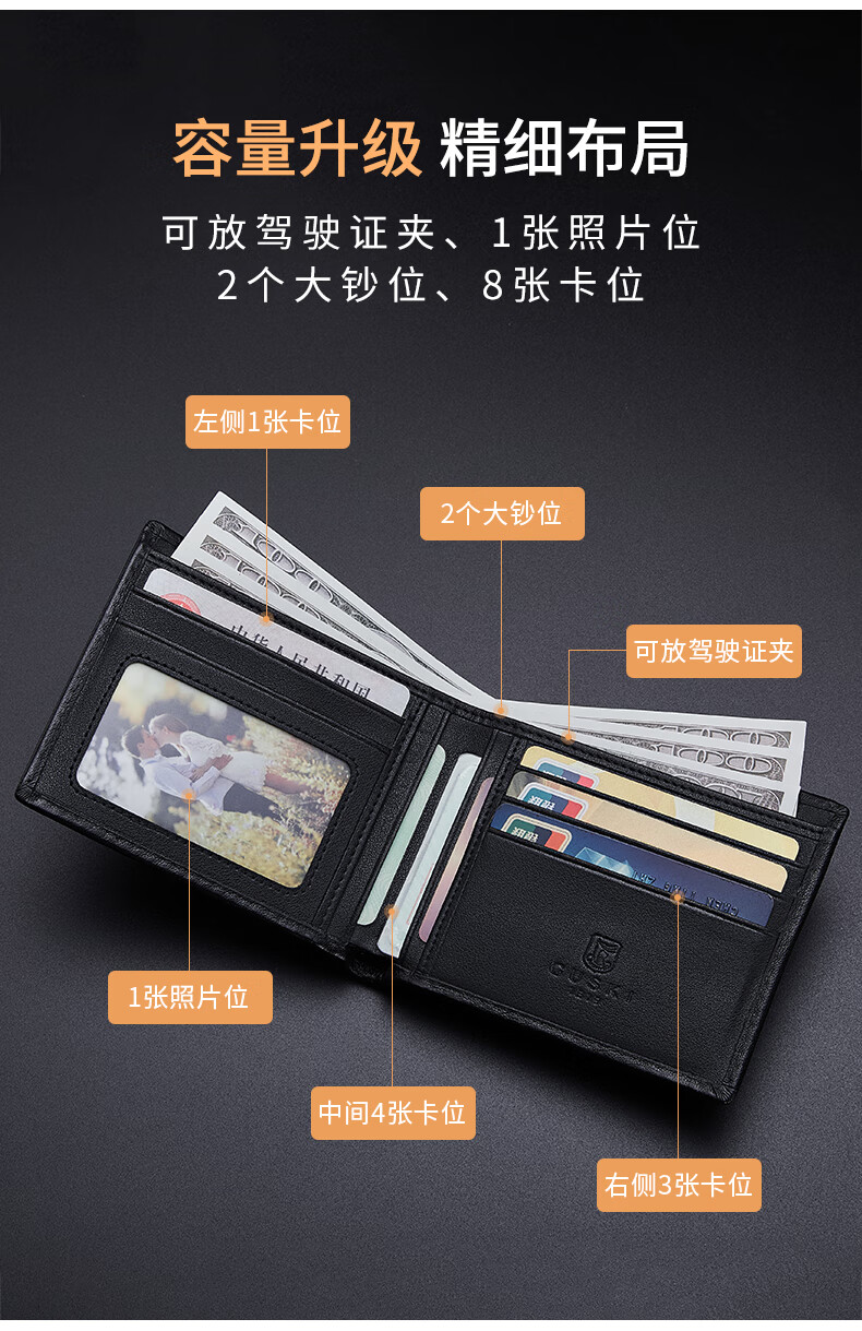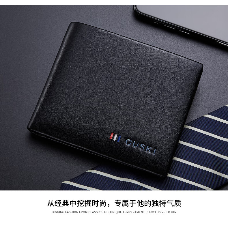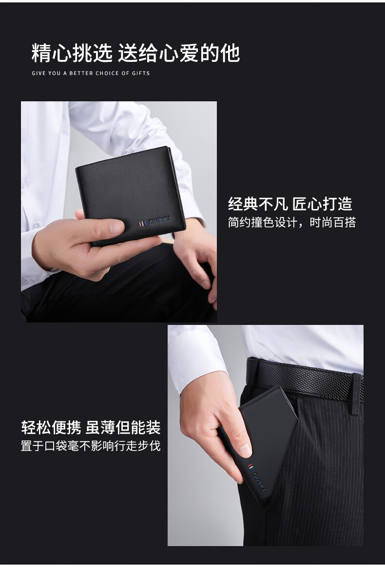 GUSKI brand men's wallet, men's genuine leather short style, high-end leather jacket, first-layer cowhide card bag gift box, birthday gift, Qiji red, orange heart, exclusive for you, fashionable short style