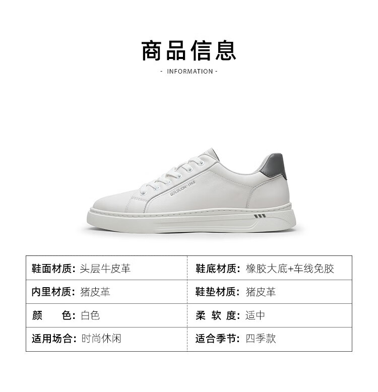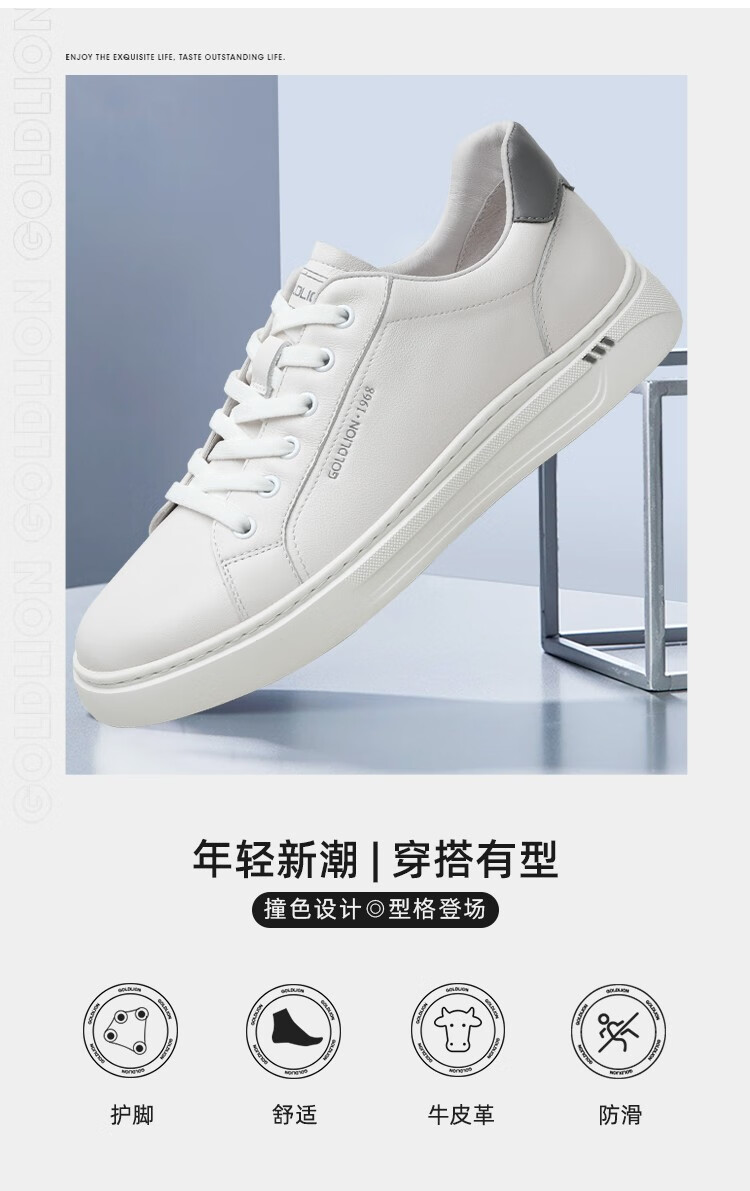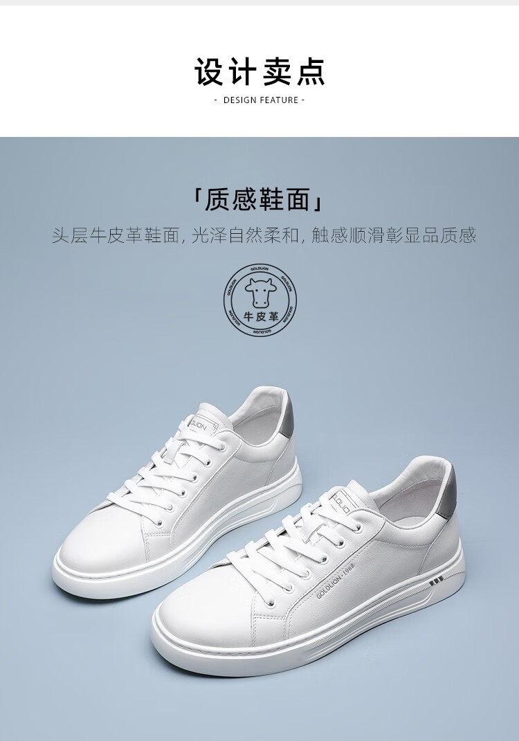 金利来男鞋2025春季款时尚休闲板鞋男轻质简约软底舒适小白鞋男系带男鞋 白色739 40 (欧码,偏大一码)