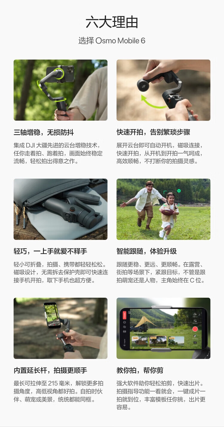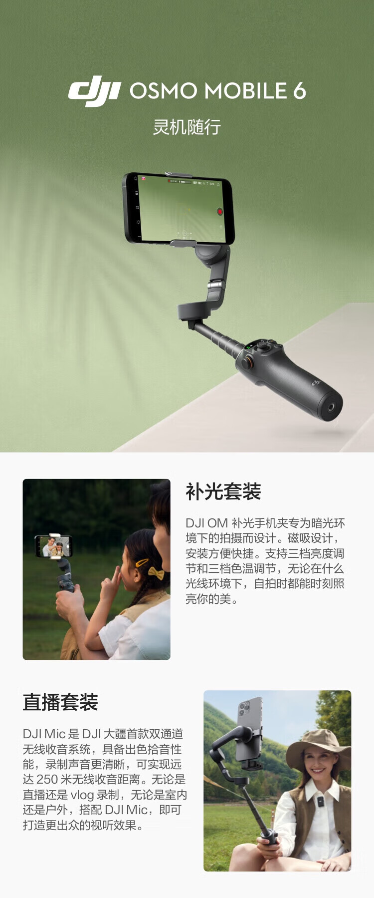 Estabilizador de cardán para teléfono móvil DJI OM6 OM SE, palo selfie antivibración estabilizado de tres ejes para grabación de vlogs portátil Estándar oficial de Osmo Mobile SE
