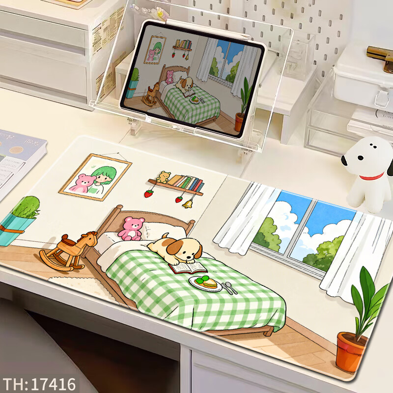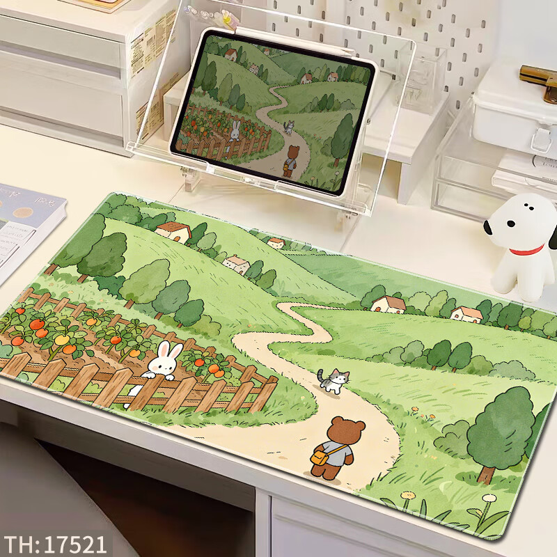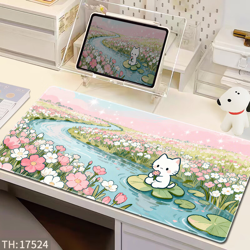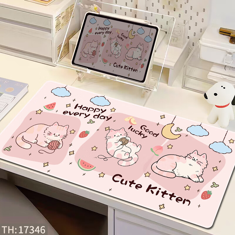 三色猫(SFMCEMQ) 超大号鼠标垫可爱ins风女生办公室电脑桌面垫笔记本键盘垫护腕防滑卡通电竞 15522【高清打印 支持定制】 90厘米x40厘米x4毫米