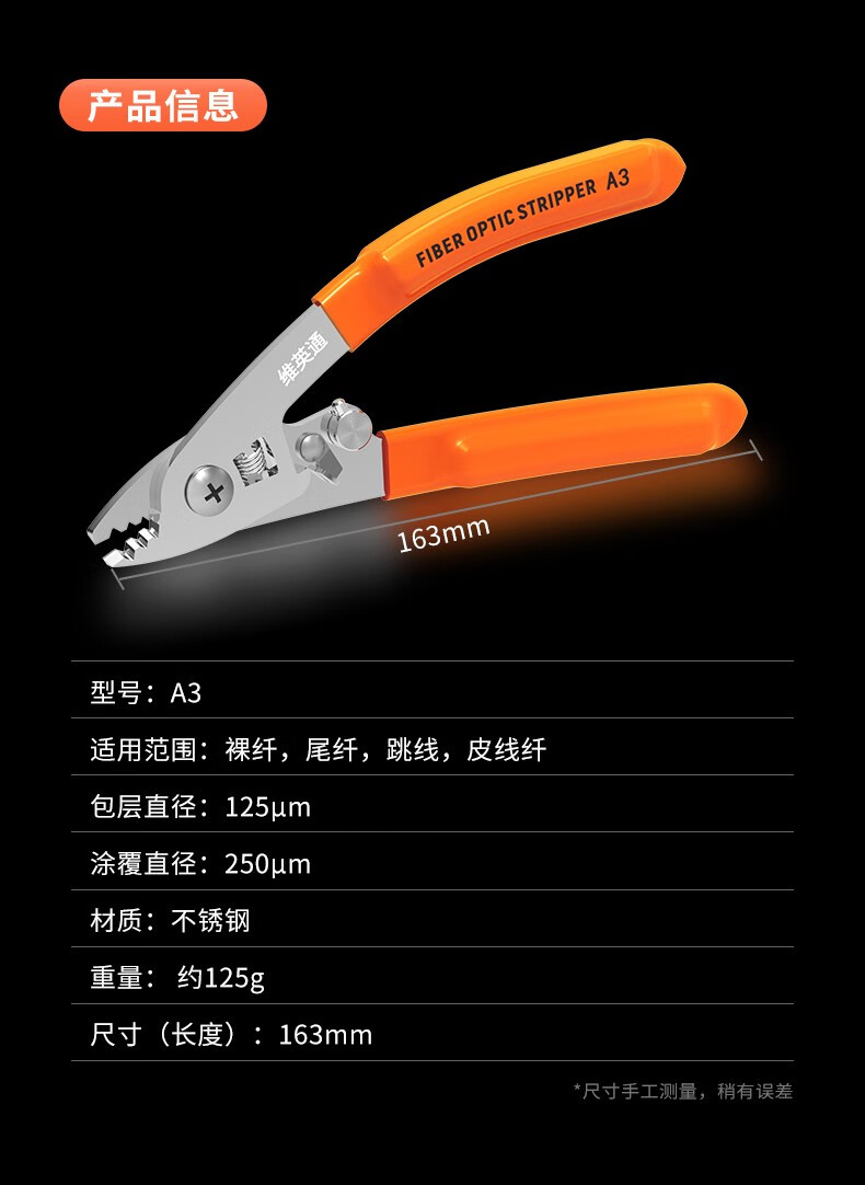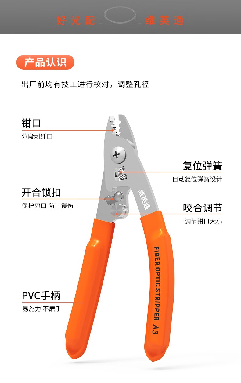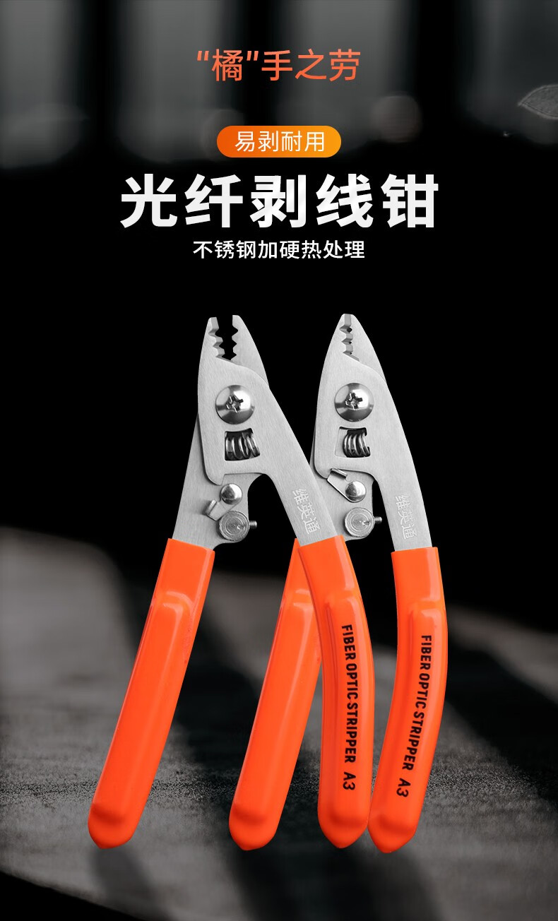 Veyington Wiyington Alicates pelacables de fibra óptica A3 Alicates de tres puertos Alicates Miller de fibra óptica de acero inoxidable Alicates pelacables de revestimiento de fibra Empalmador de fusión de fibra compatible con herramienta de empalme en frío FTTH Alicates pelacables de tres puertos A3
