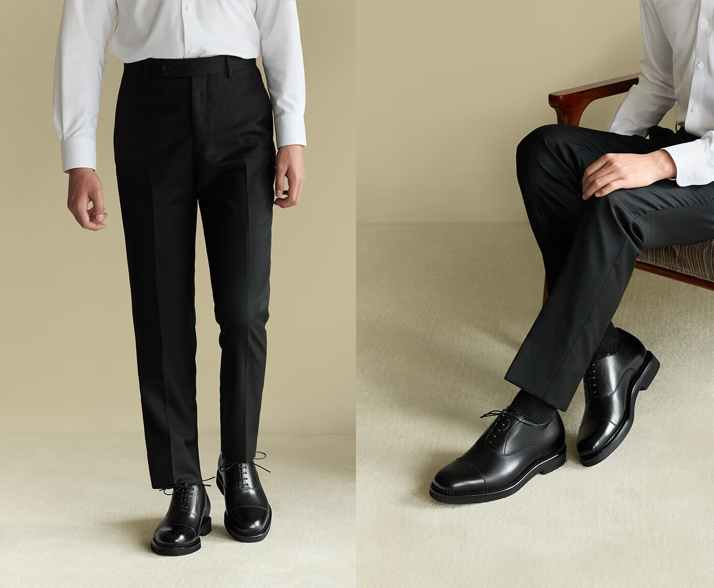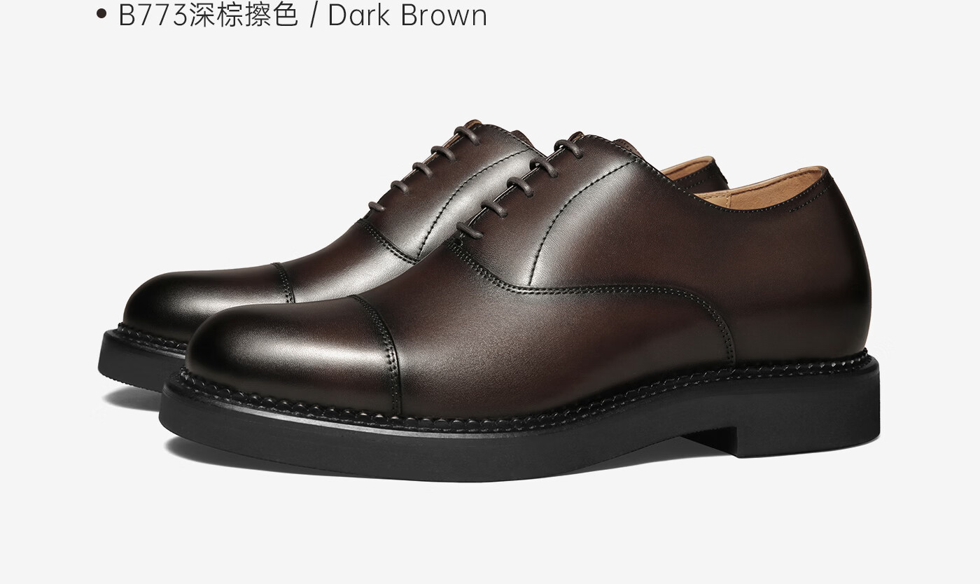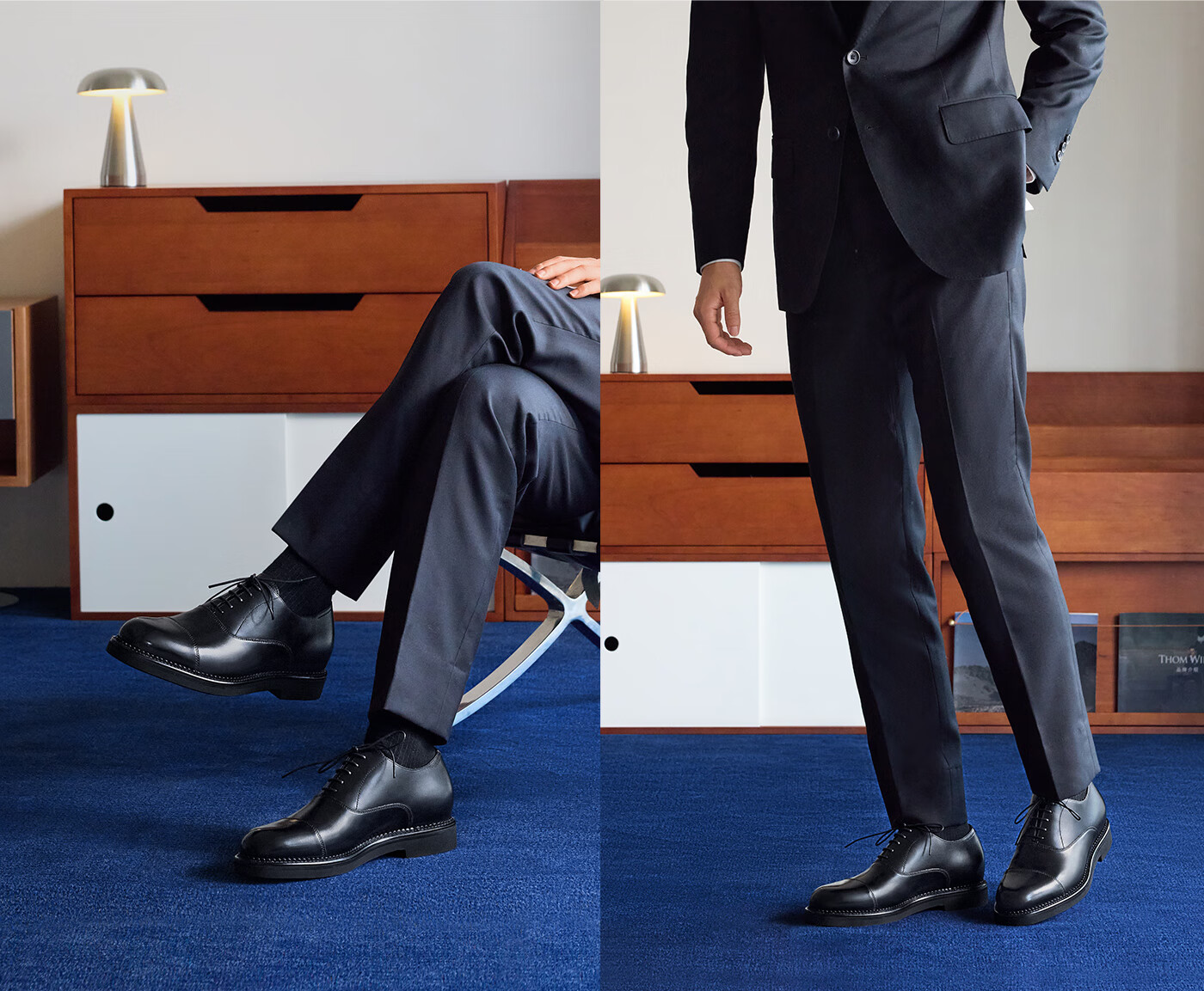 THOM WILLS【明星同款】ThomWills内增高皮鞋男商务正装牛津鞋新郎结婚鞋 黑色小牛B771-1 40 /7码