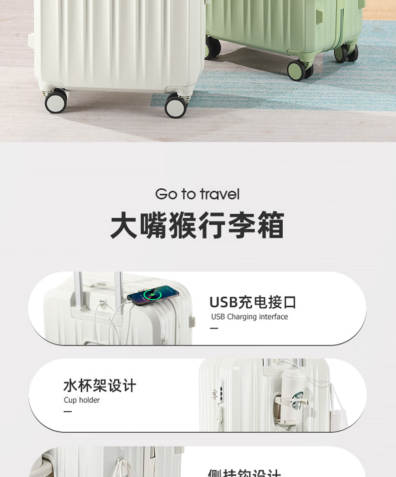 大嘴猴(paul frank)行李箱女拉杆箱男轻音万向轮旅行箱学生出差商务拉链箱大容量皮箱 牛油果绿(加厚耐用) 20英寸 /可登机