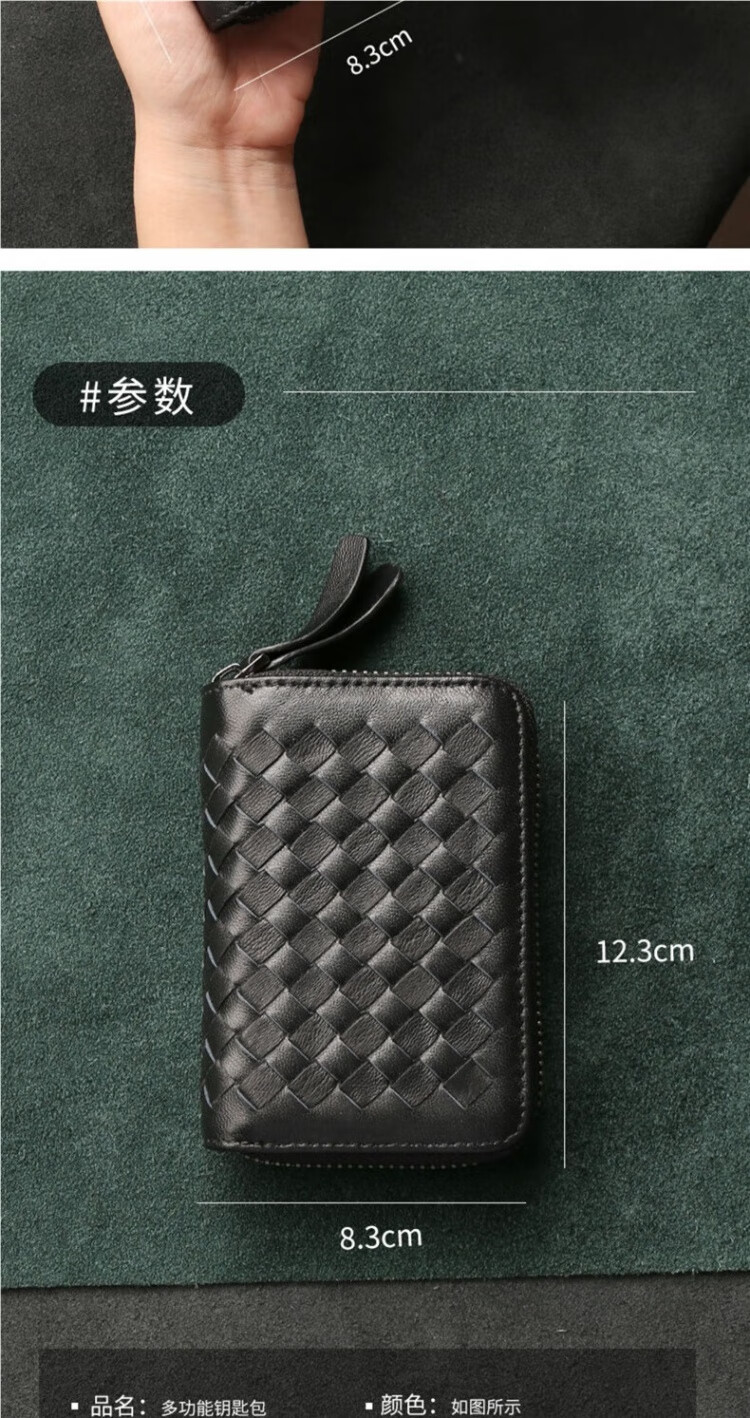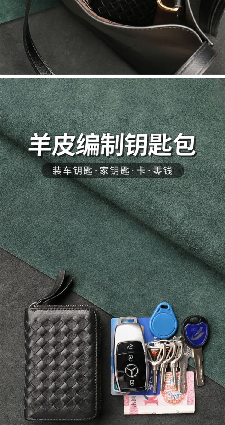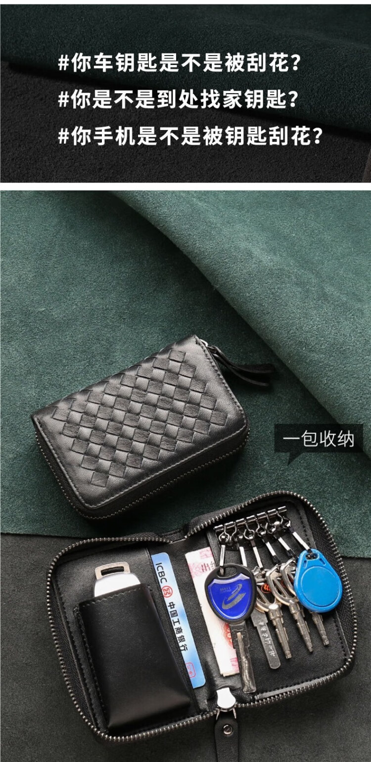 Baimingwei Cuero Genuino para Hombres de Gran Capacidad 2025 Nueva Bolsa de Almacenamiento de Llaves Bolsa para Llaves Bolsa para Llaves de Coche para Mujer Bolsa para Llaves con Cremallera Trenzada de Piel de Oveja - Negro