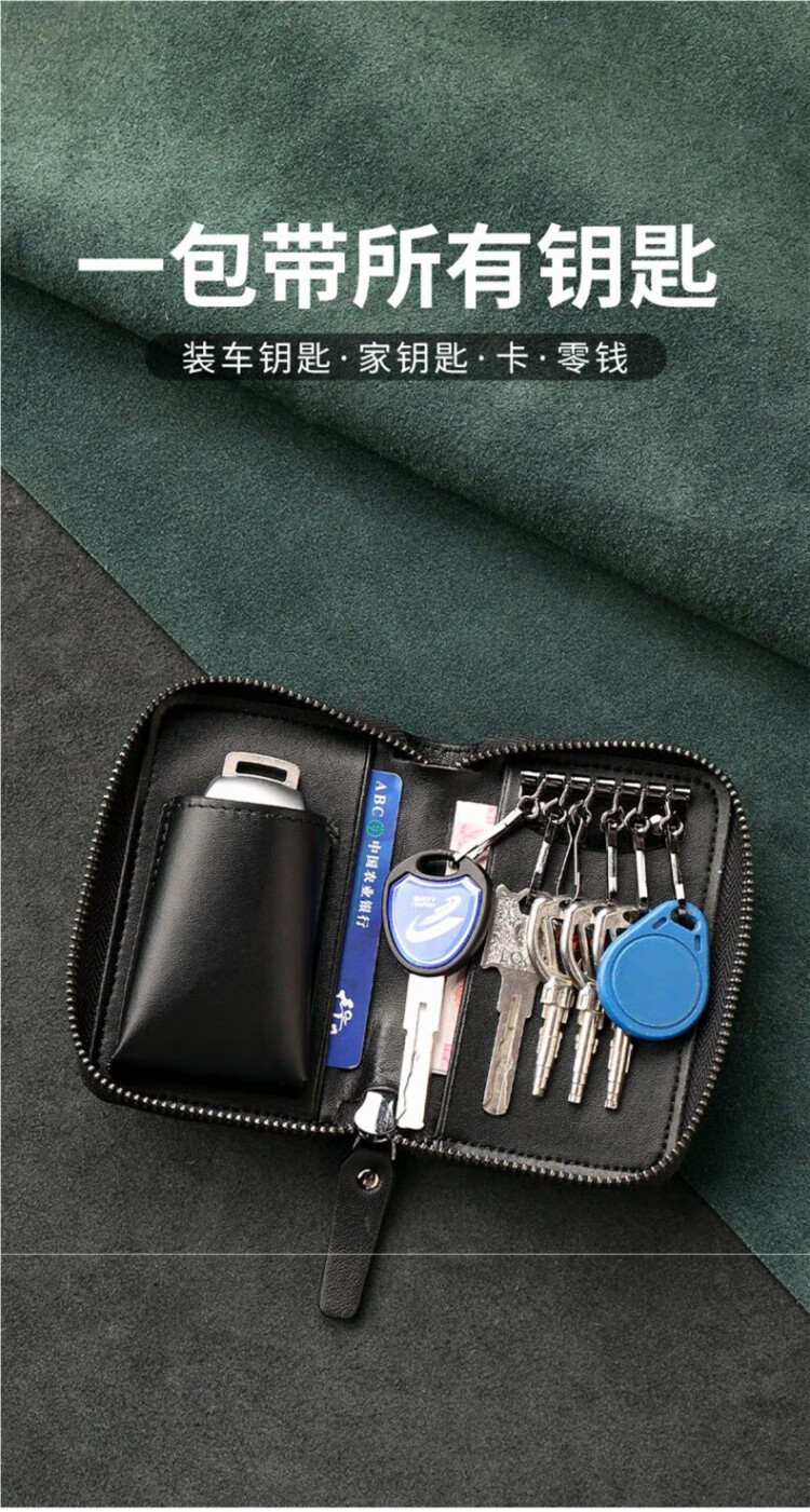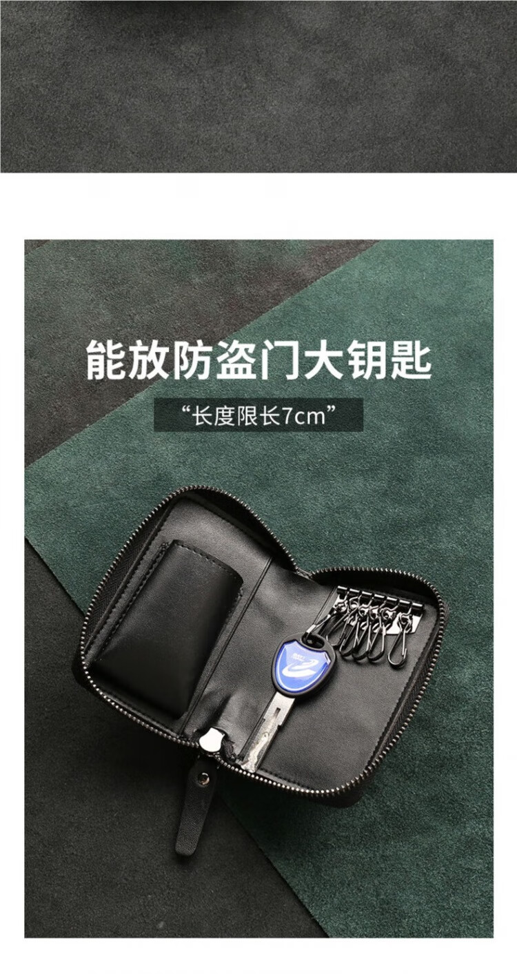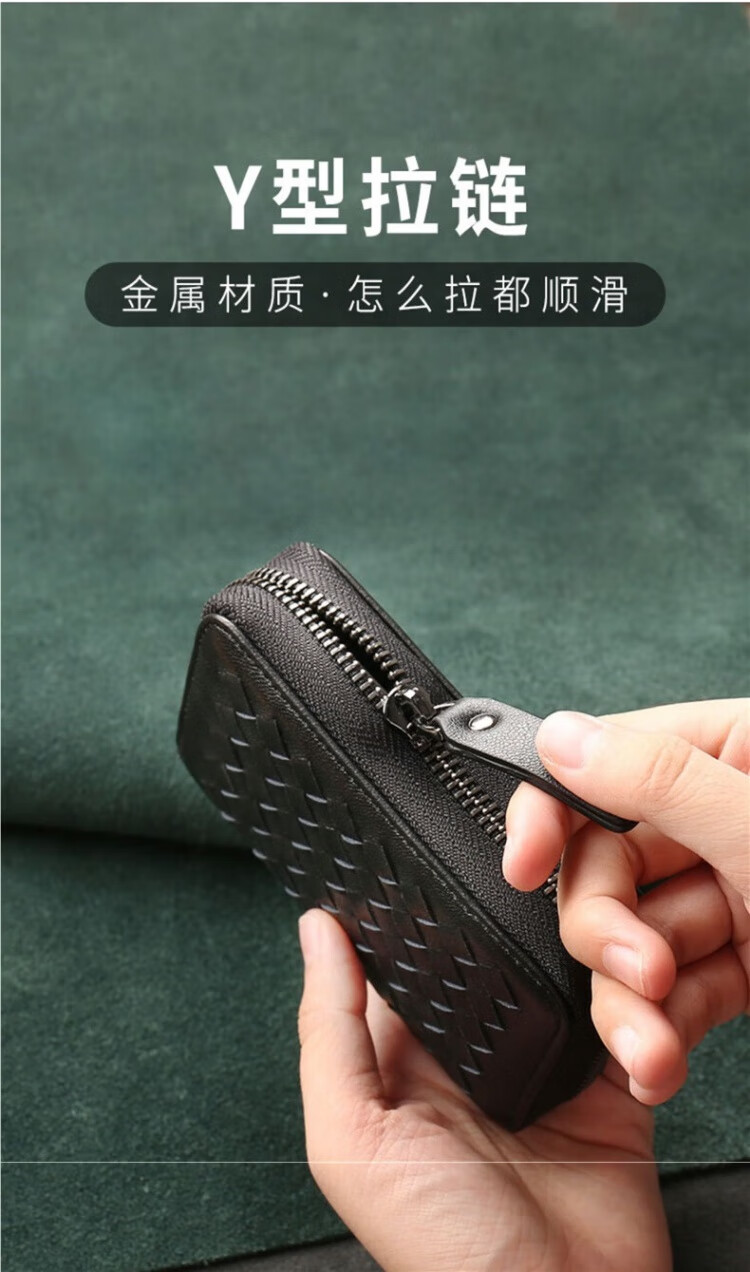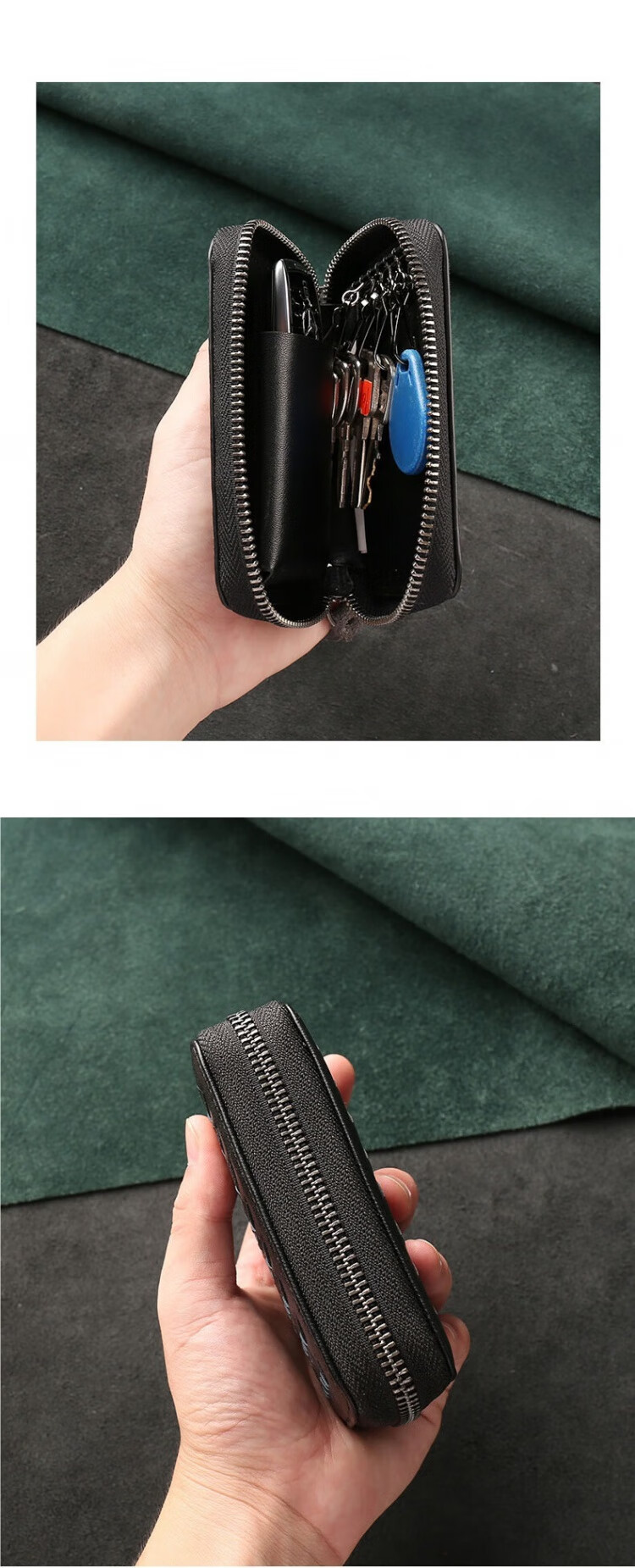 Baimingwei Cuero Genuino para Hombres de Gran Capacidad 2025 Nueva Bolsa de Almacenamiento de Llaves Bolsa para Llaves Bolsa para Llaves de Coche para Mujer Bolsa para Llaves con Cremallera Trenzada de Piel de Oveja - Negro