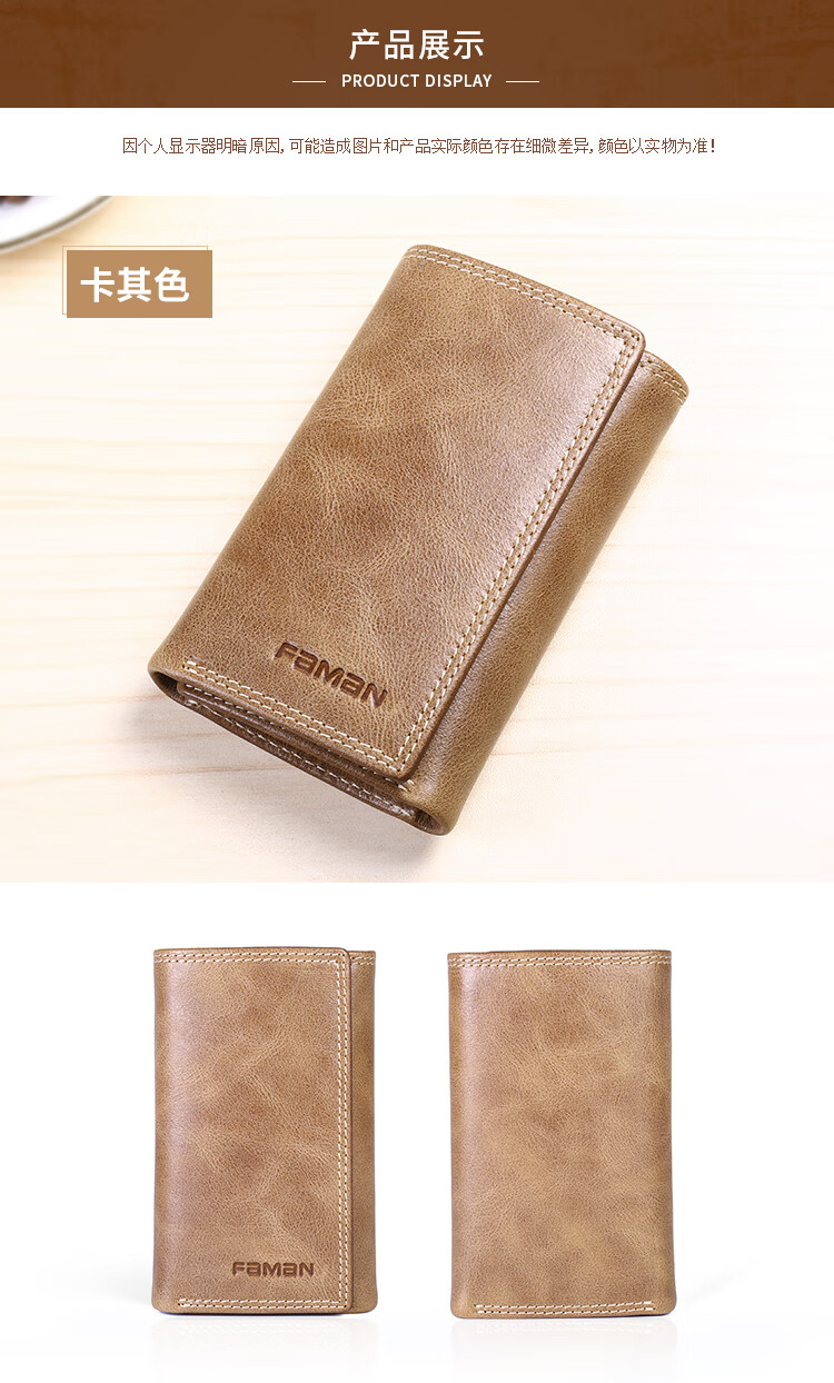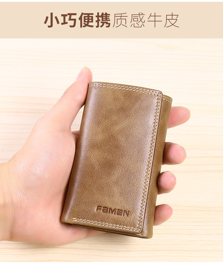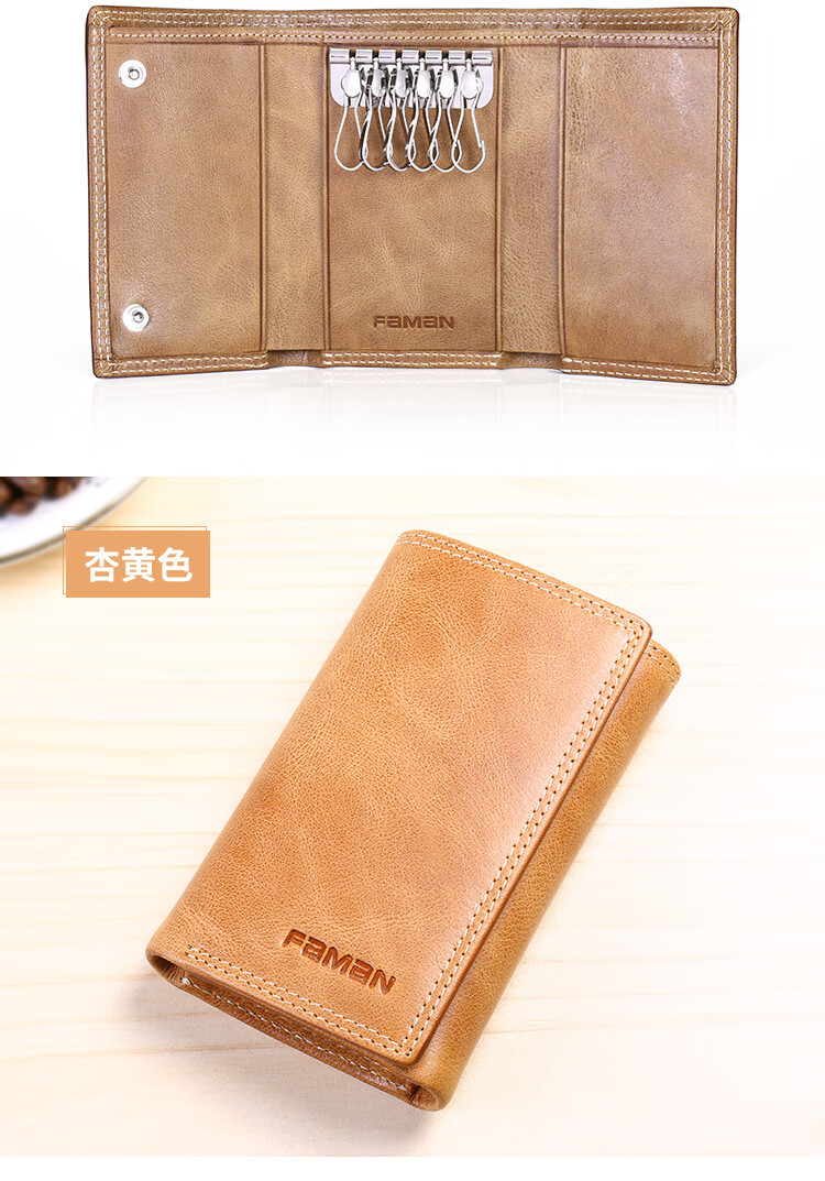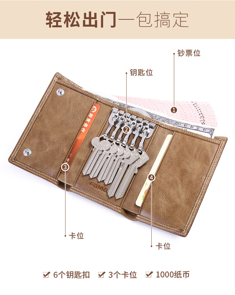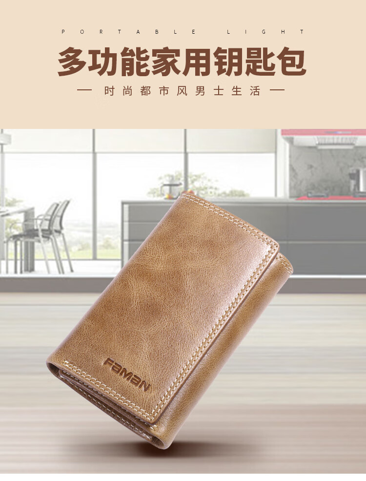 斐曼男士钥匙包大容量真皮卡包多功能家用钥匙袋2023新款钱包二合一男 卡其色
