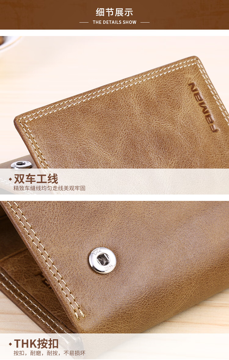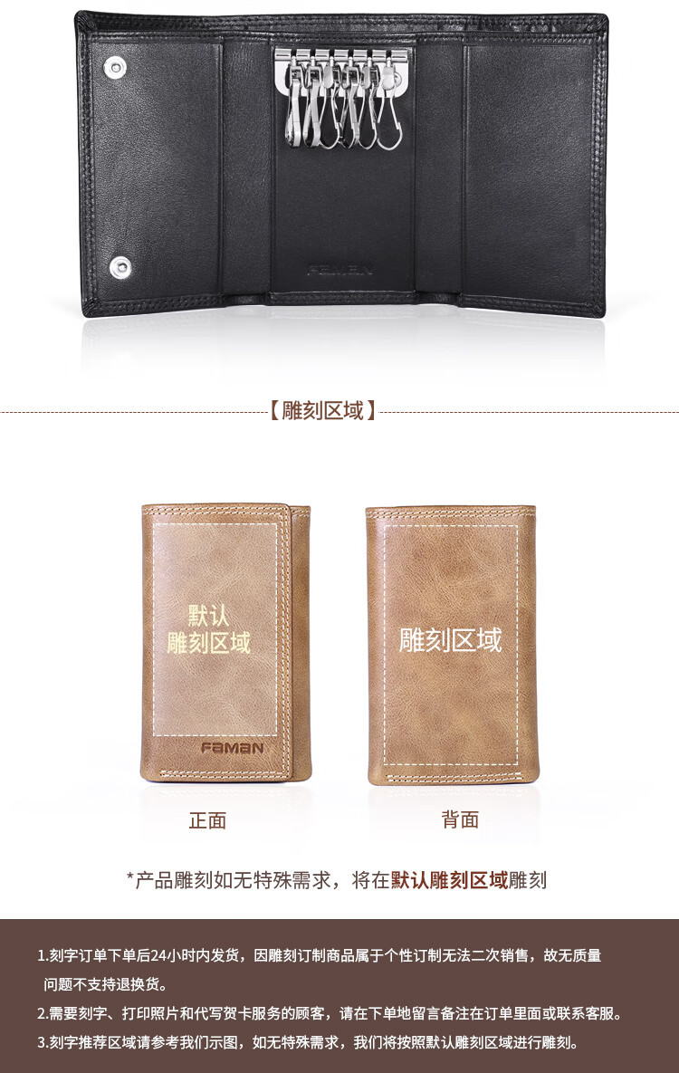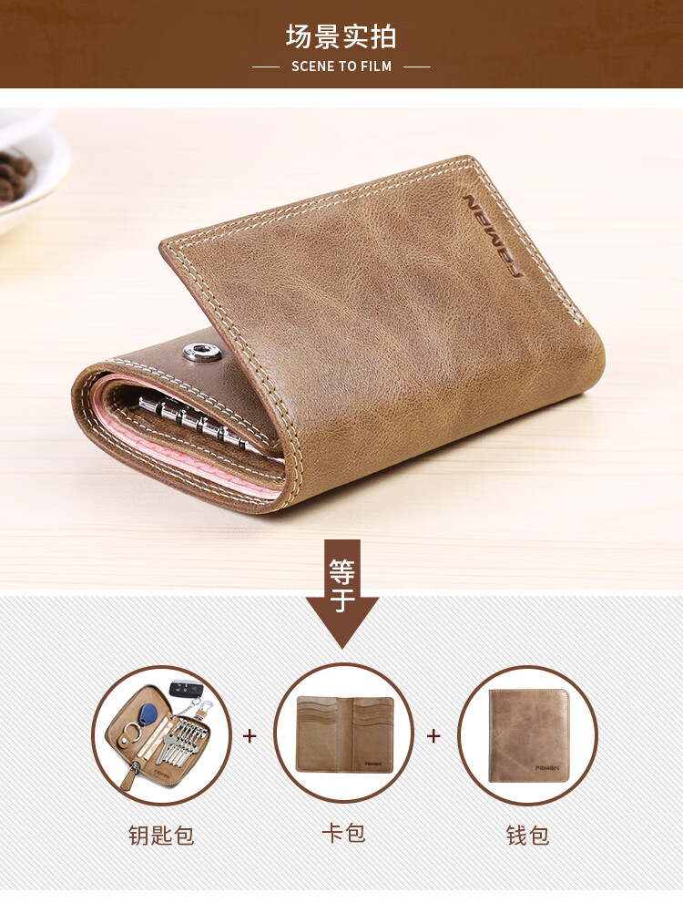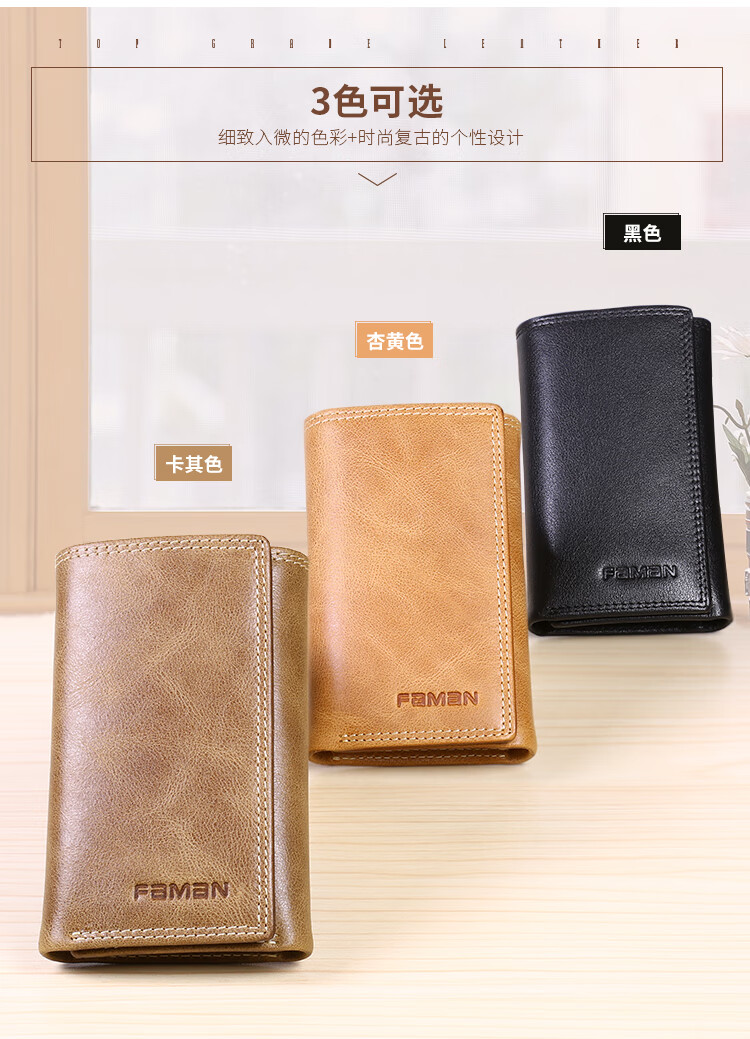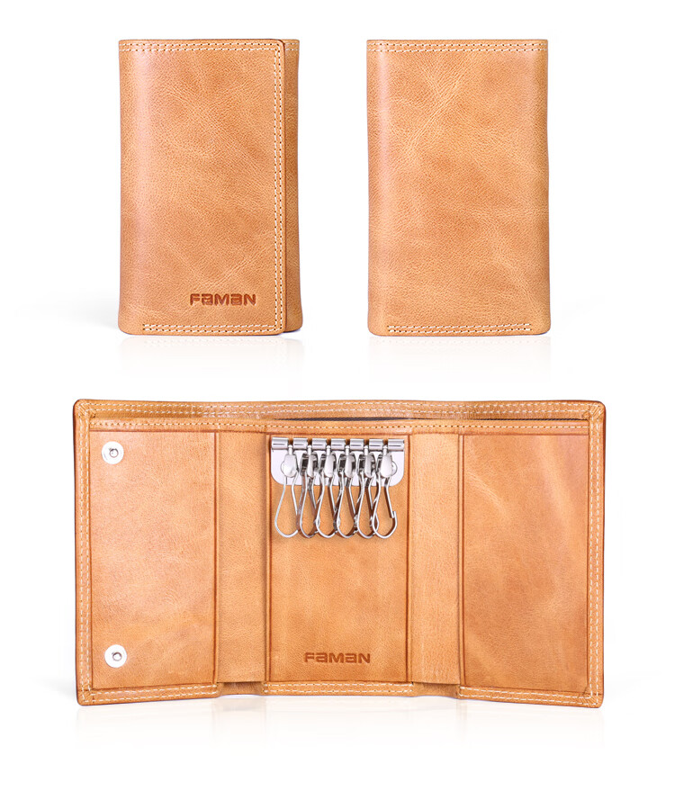斐曼男士钥匙包大容量真皮卡包多功能家用钥匙袋2023新款钱包二合一男 卡其色