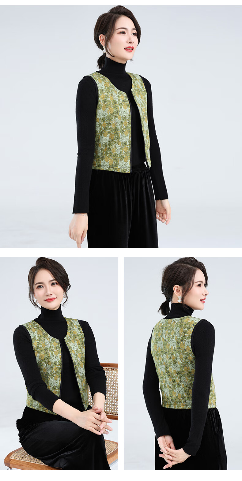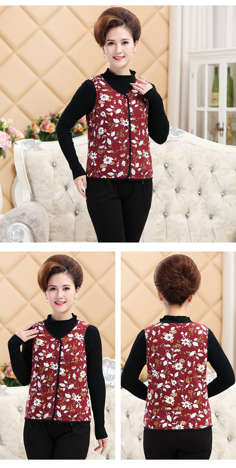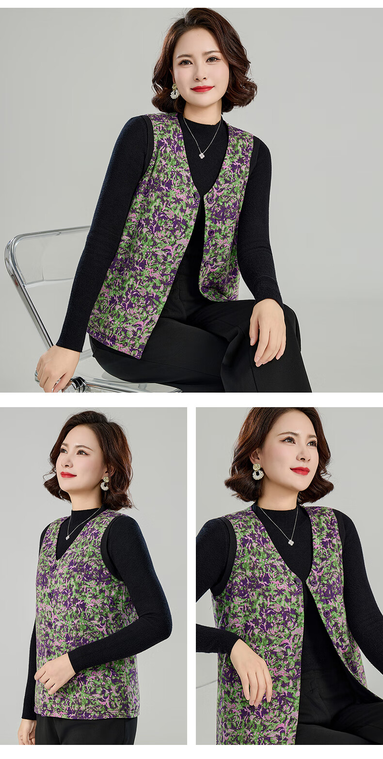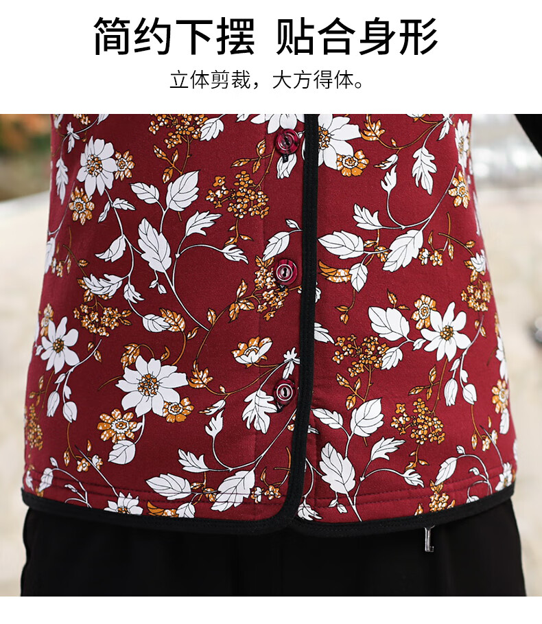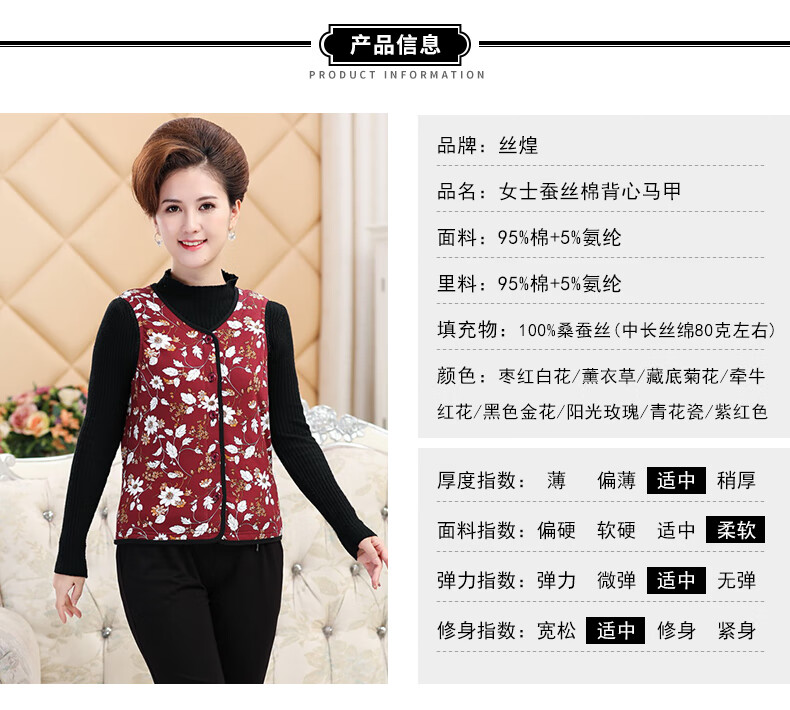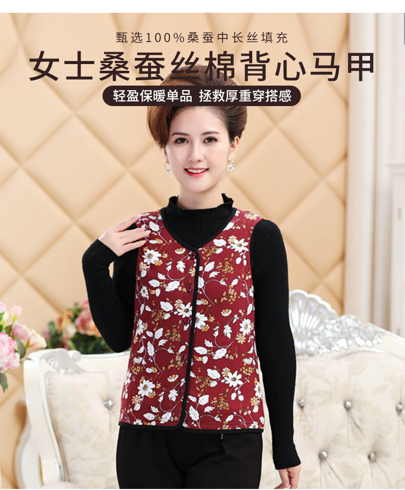 丝煌蚕丝马甲女手工100%桑蚕丝棉袄背心开衫冬季保暖内穿坎肩内胆大码 枣红白花3519 M [建议95-105斤]