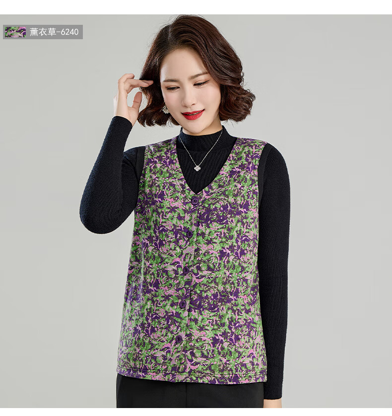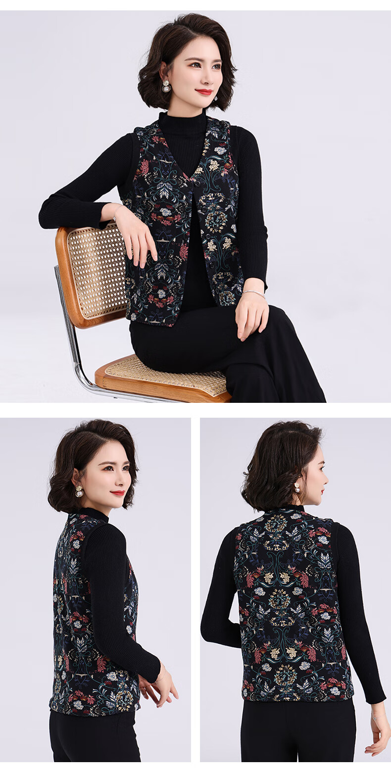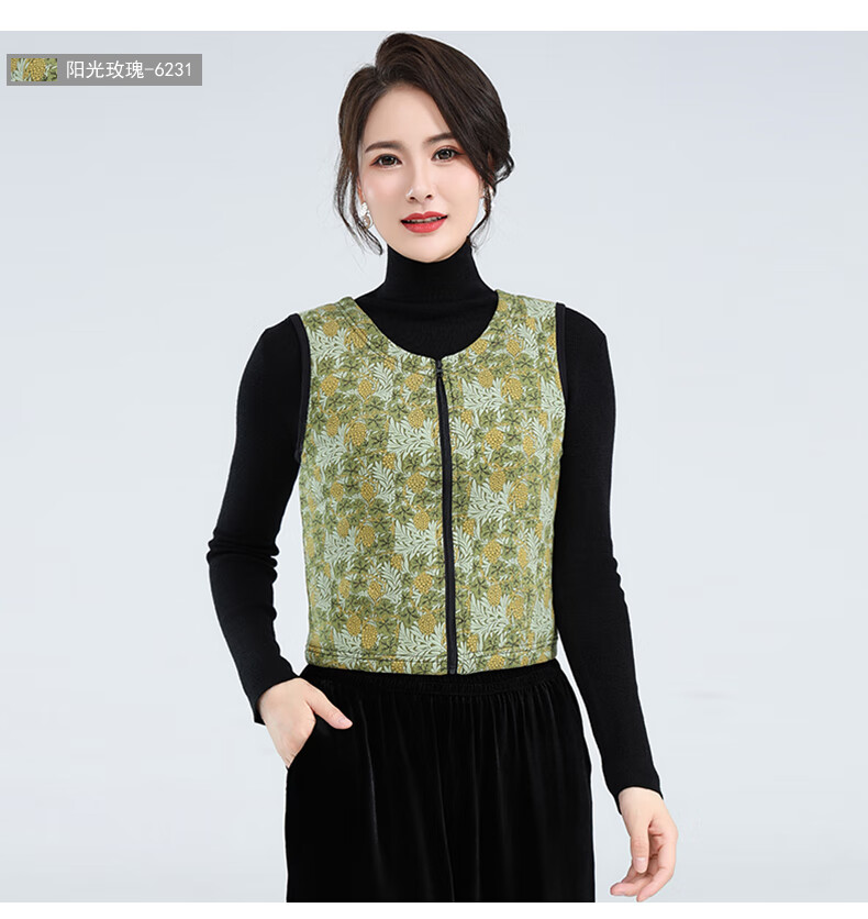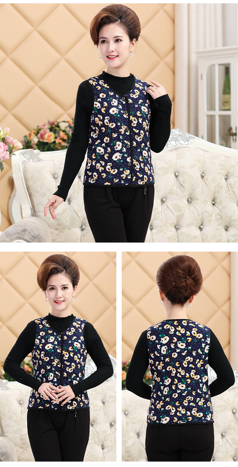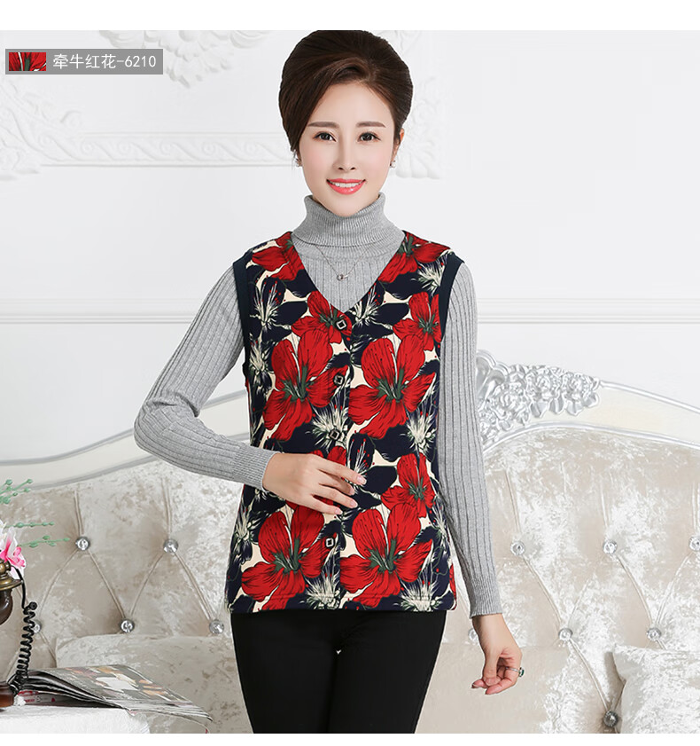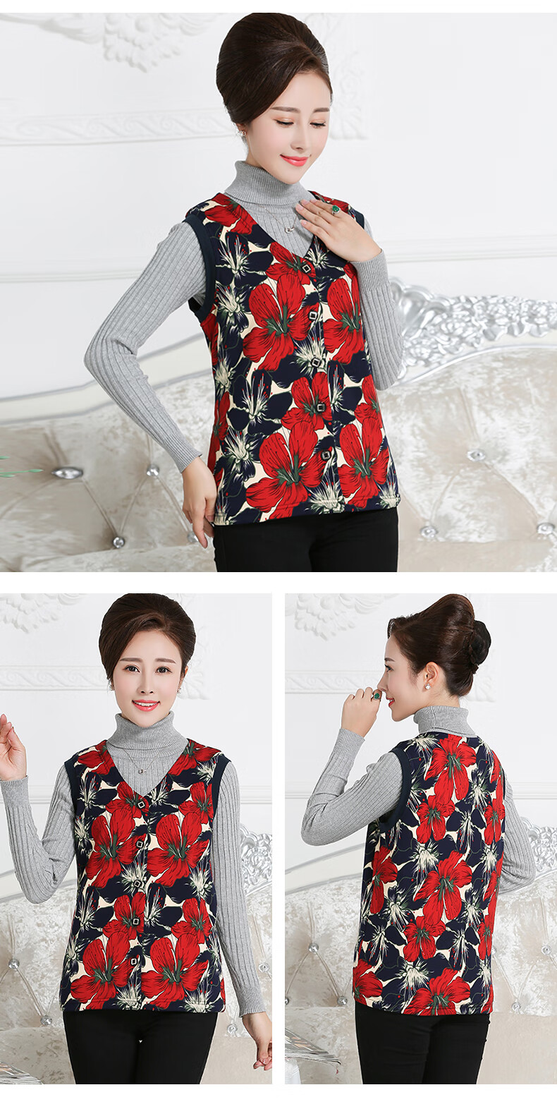 丝煌蚕丝马甲女手工100%桑蚕丝棉袄背心开衫冬季保暖内穿坎肩内胆大码 枣红白花3519 M [建议95-105斤]