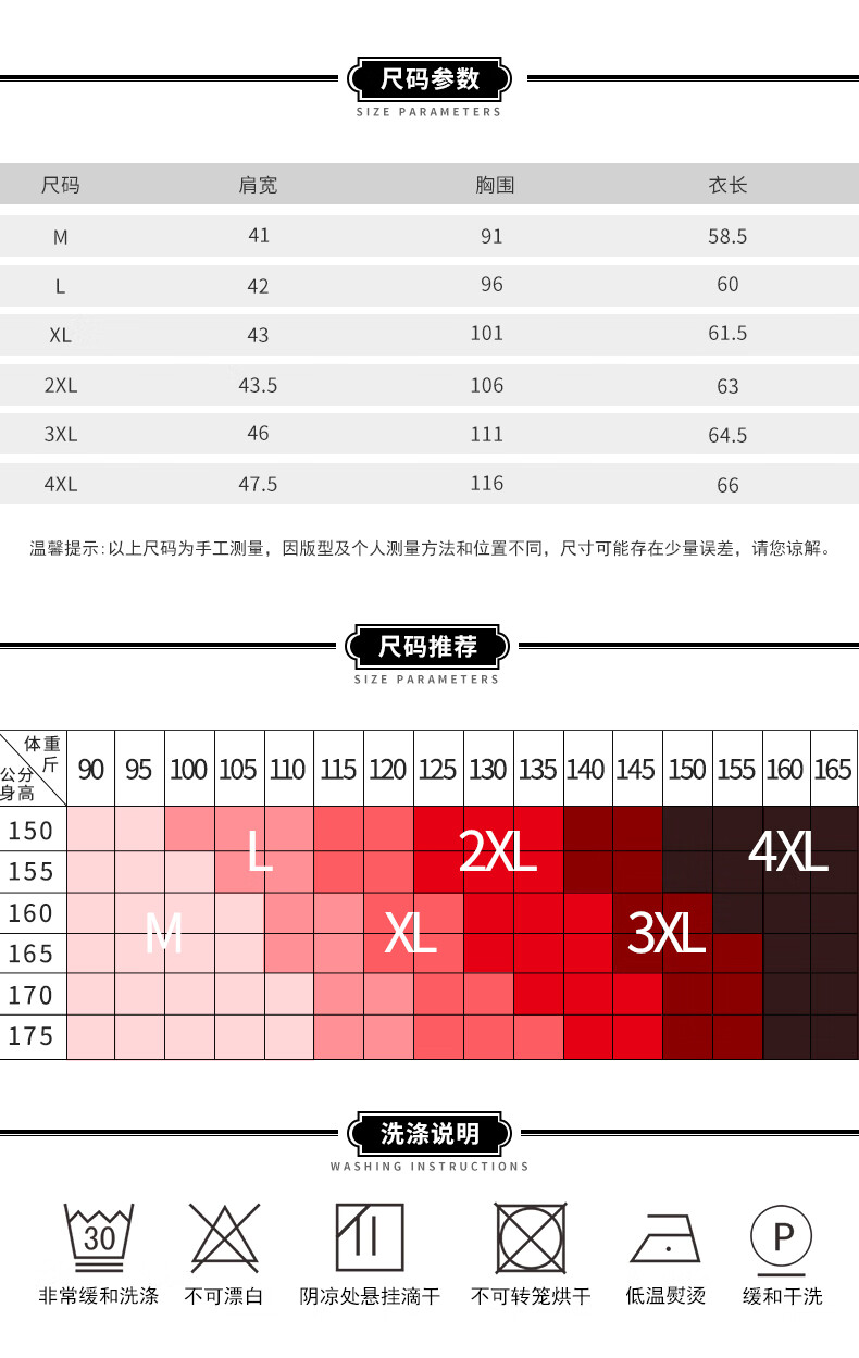China (cm) 165 / 88-90 170 / 96-98 175 / 108-110 180 / 118-122 185 / 126-130