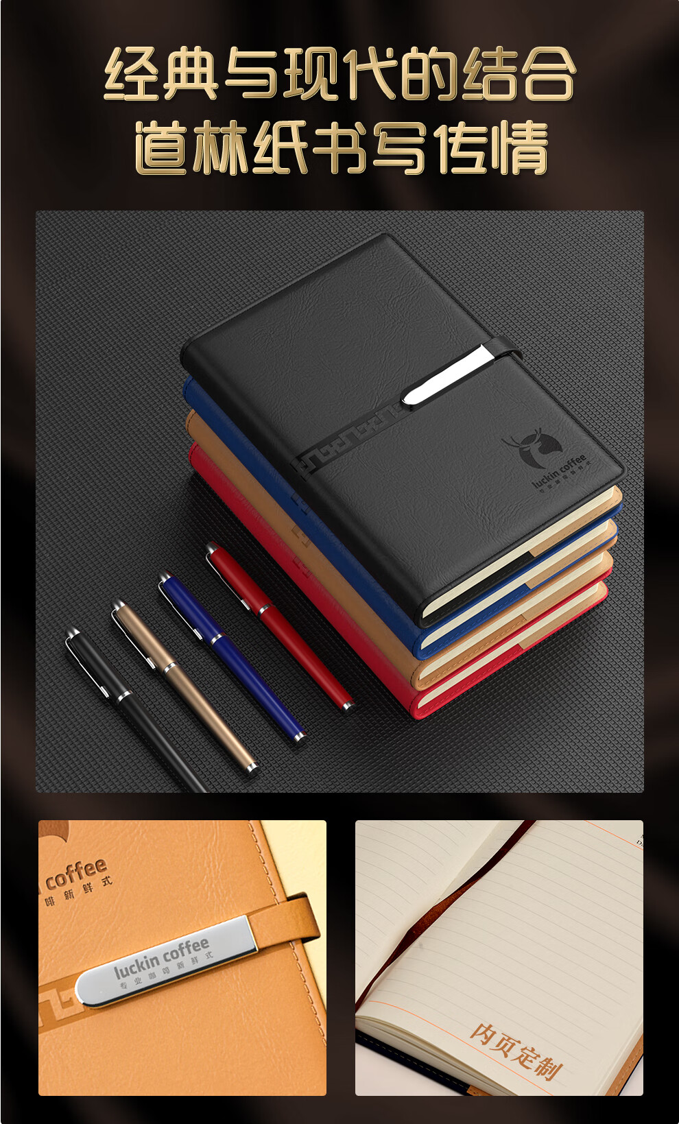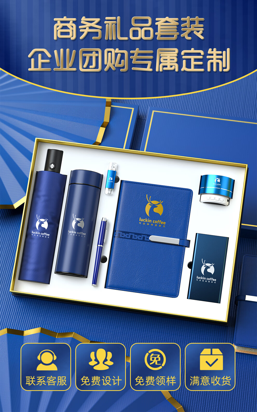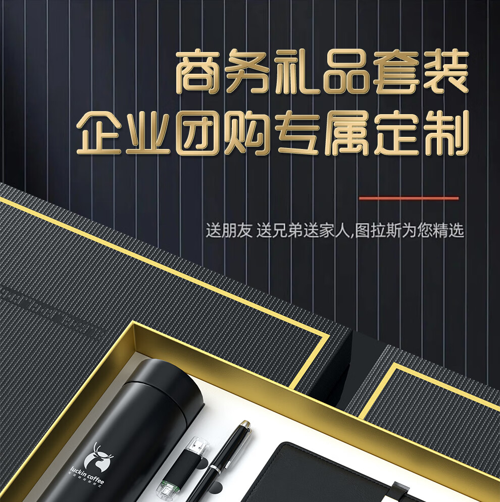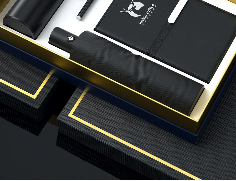 Qiyu Thermosbecher, Geschenkbox, Firmensouvenirs, Geschäftsgeschenke, individuelles Set, Teambuilding, Mitarbeiterpreise, Konferenz-Souvenirs, blau – Notizbuch mit langer Schnalle + Unterschriftenstift + Thermosbecher