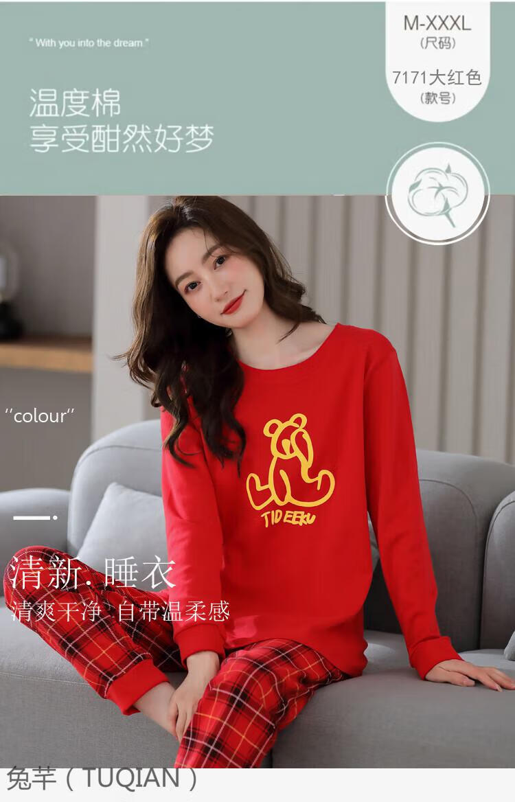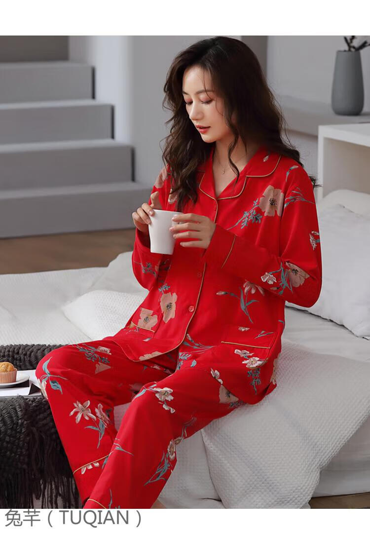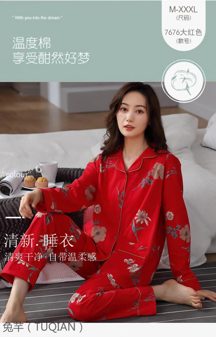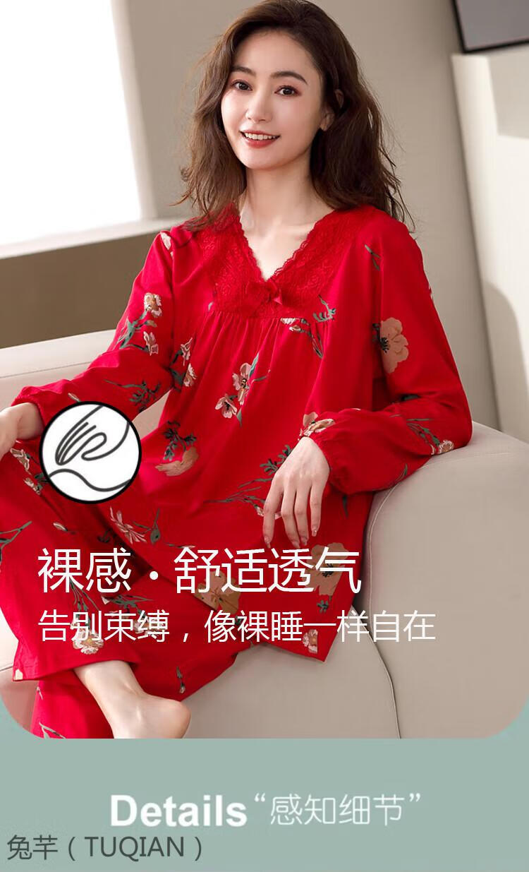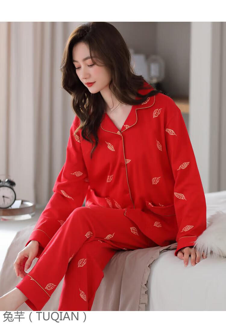 TUQIAN Année du Serpent Année du Zodiaque Pyjama Femme Pur Coton Rouge Vêtements de Maison Pyjamas Grande Taille Vêtements de Maison Ensemble à Manches Longues 7373 Big Red (Phnom Penh) Pur Coton Taille XL (Recommandé 120-140 Jin Jin est égal à 0,5 kg)