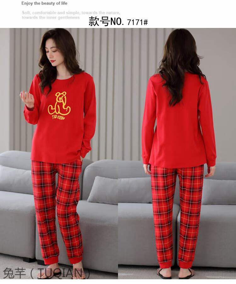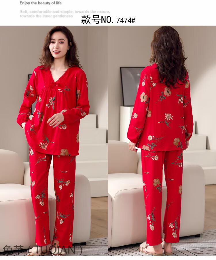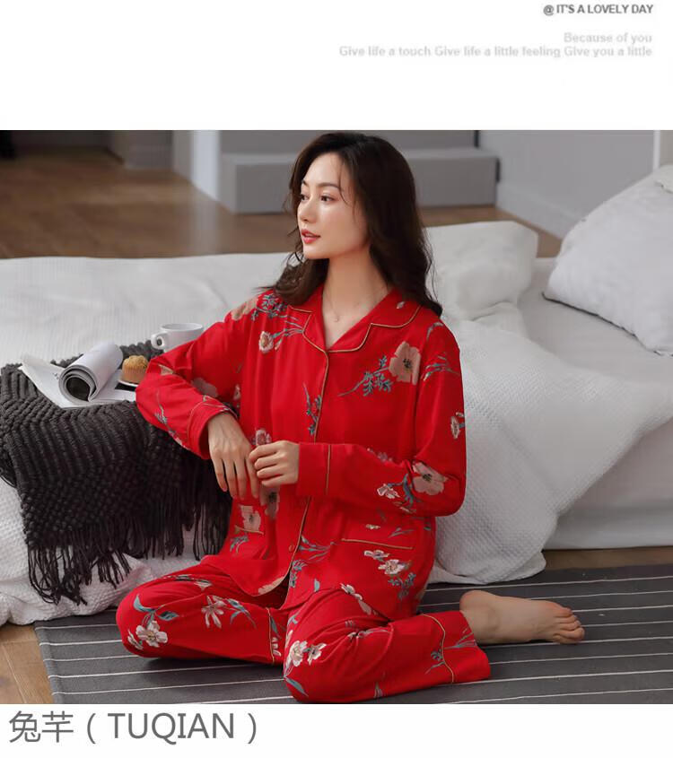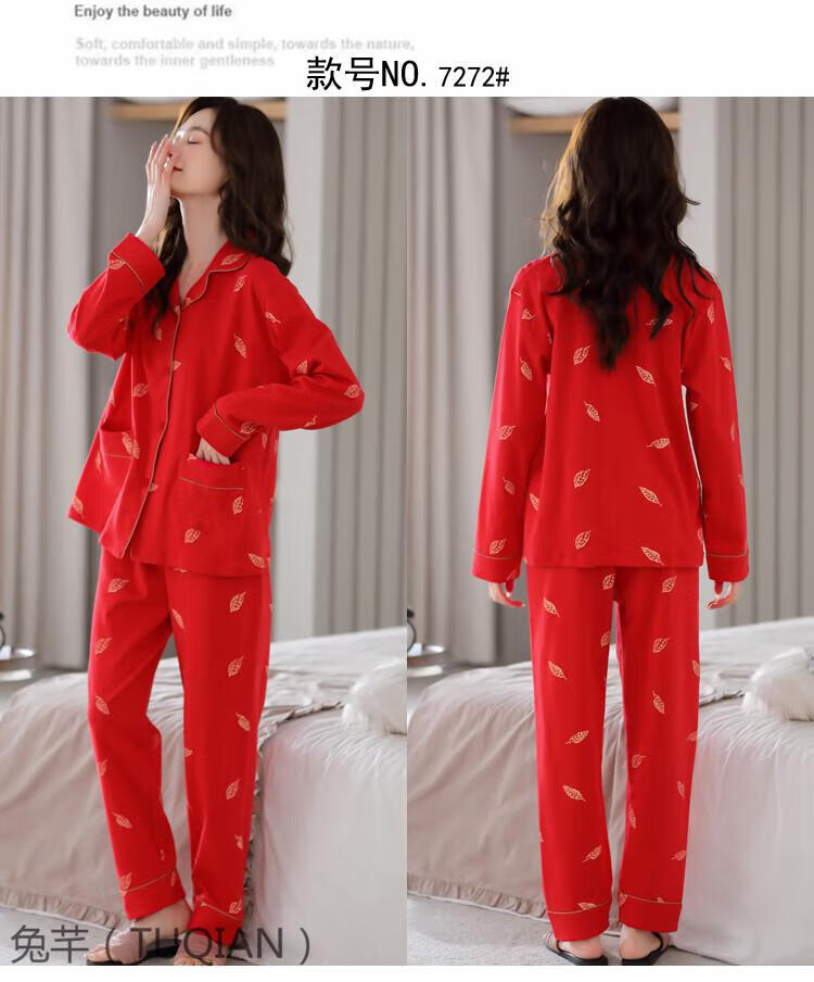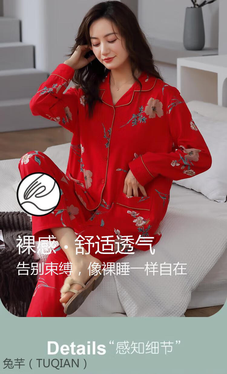TUQIAN Année du Serpent Année du Zodiaque Pyjama Femme Pur Coton Rouge Vêtements de Maison Pyjamas Grande Taille Vêtements de Maison Ensemble à Manches Longues 7373 Big Red (Phnom Penh) Pur Coton Taille XL (Recommandé 120-140 Jin Jin est égal à 0,5 kg)