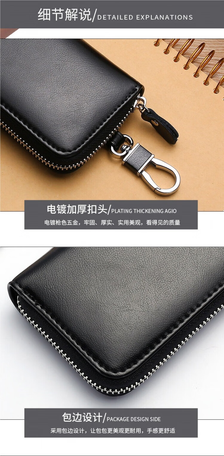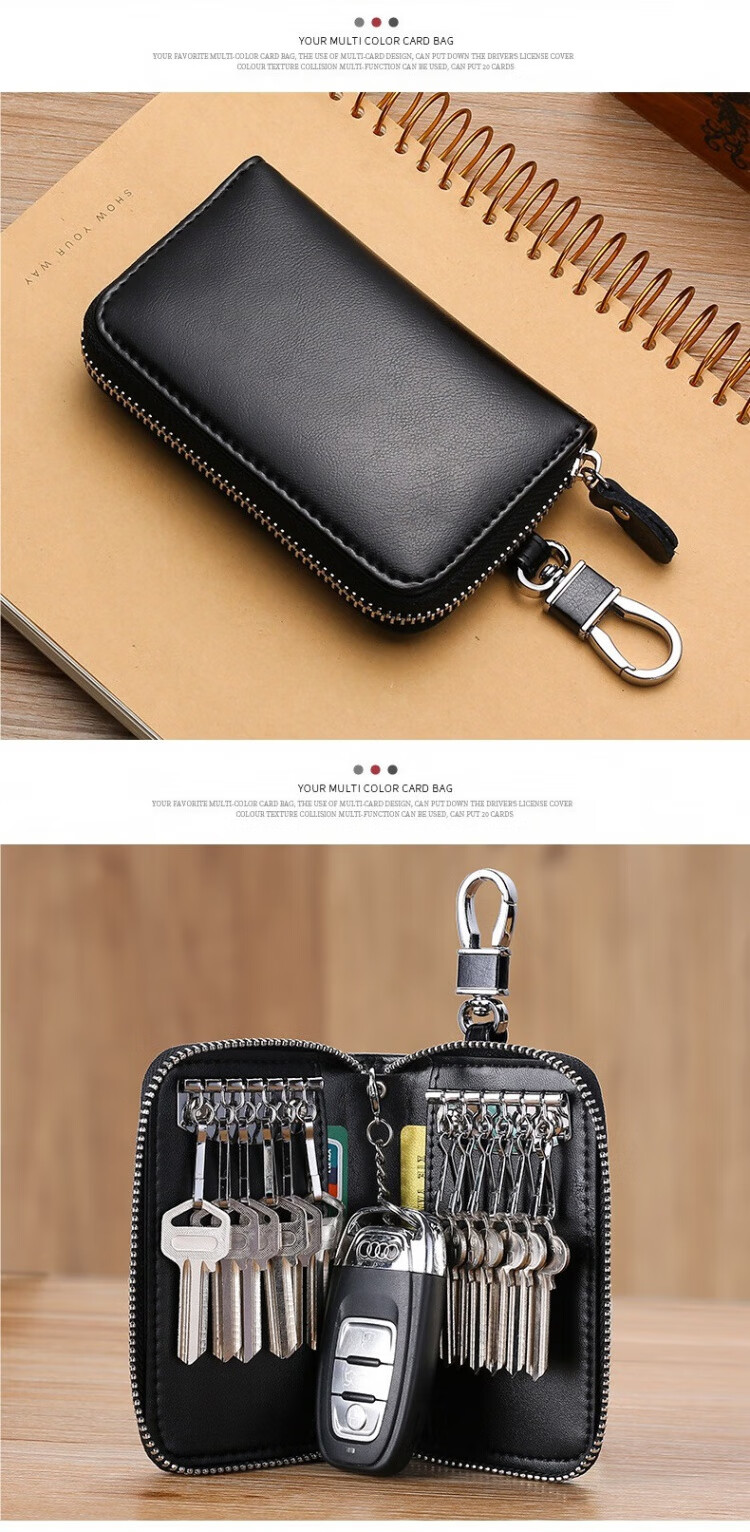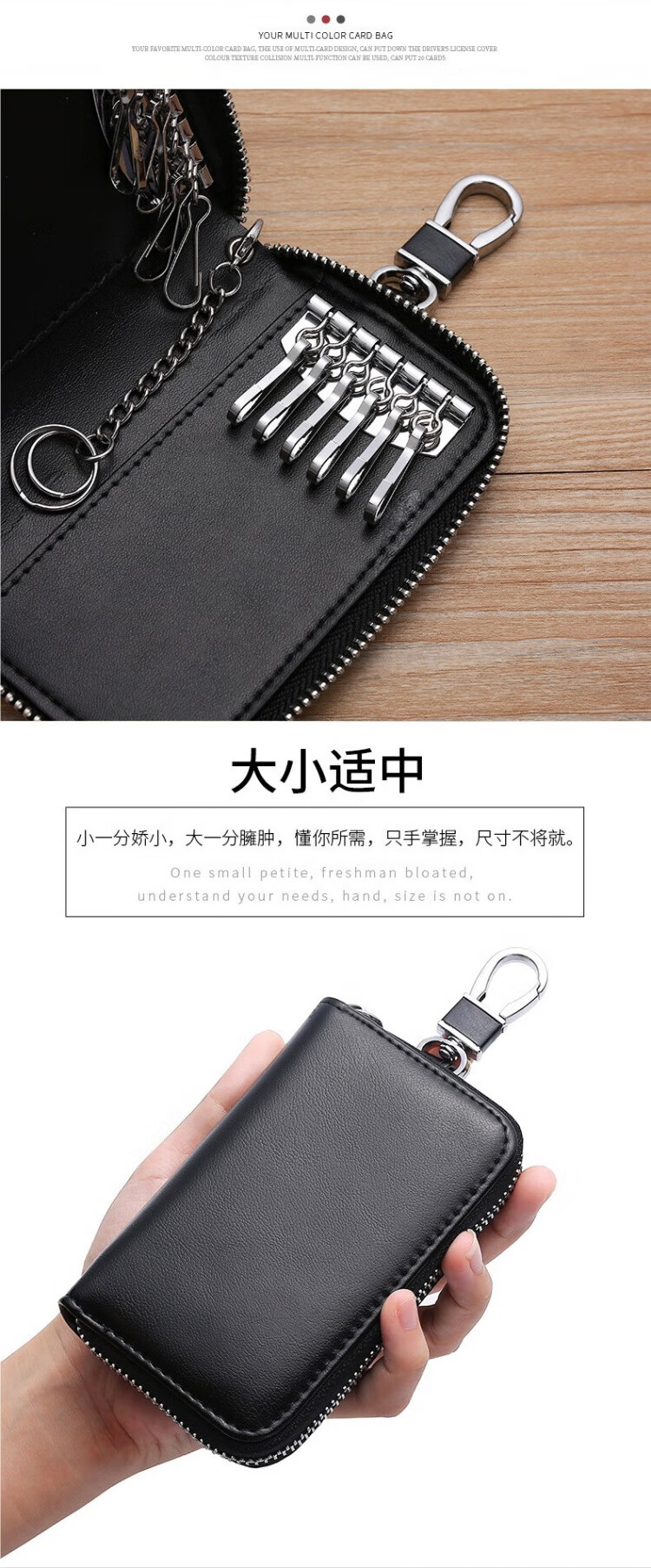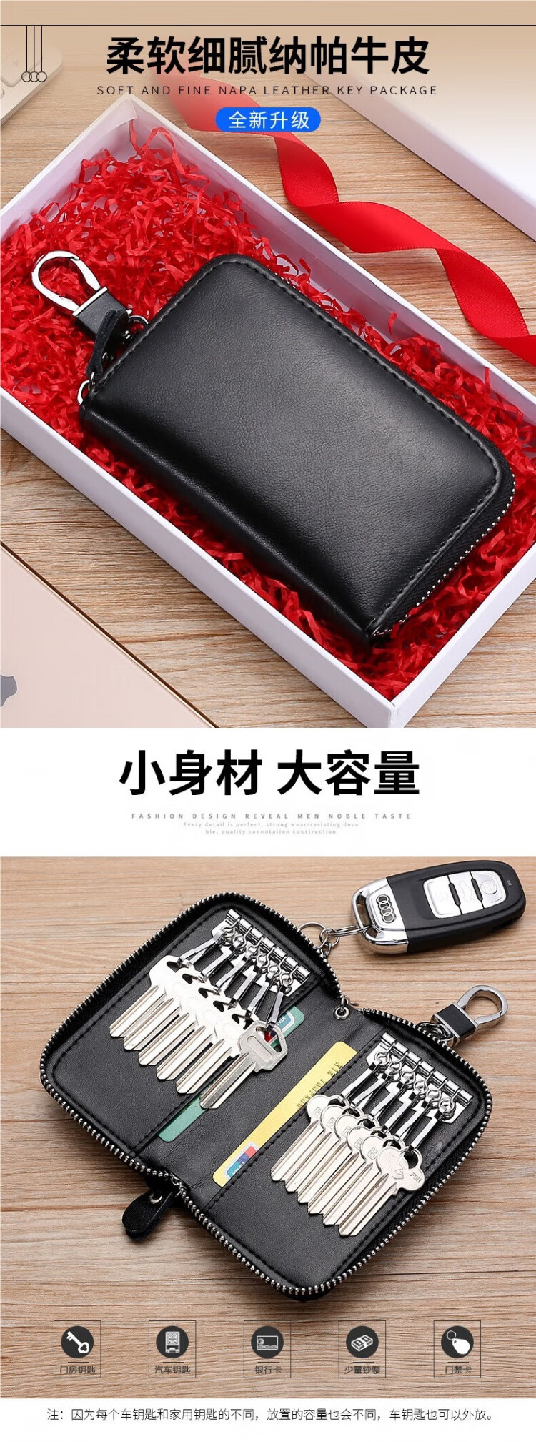 百鸣威2025新款拉链大容量钥匙包男真皮多功能实用汽车锁匙包牛皮钥匙袋 黑色(12扣)