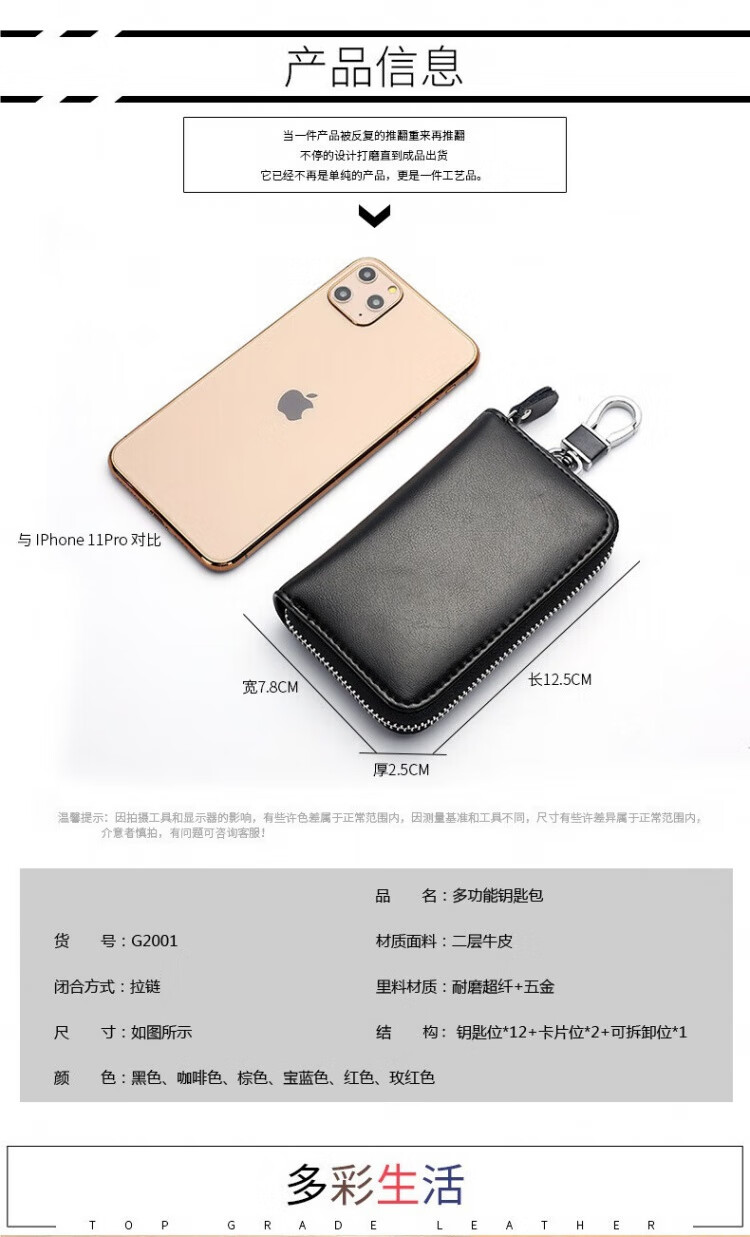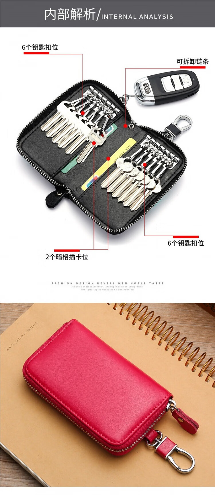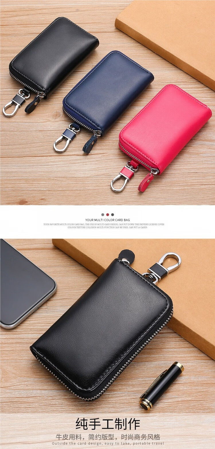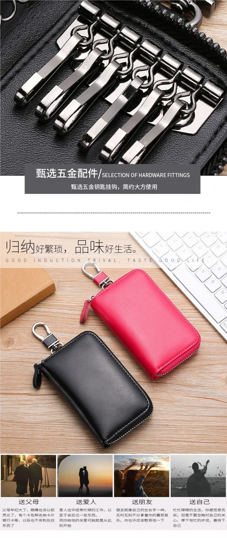 百鸣威2025新款拉链大容量钥匙包男真皮多功能实用汽车锁匙包牛皮钥匙袋 黑色(12扣)