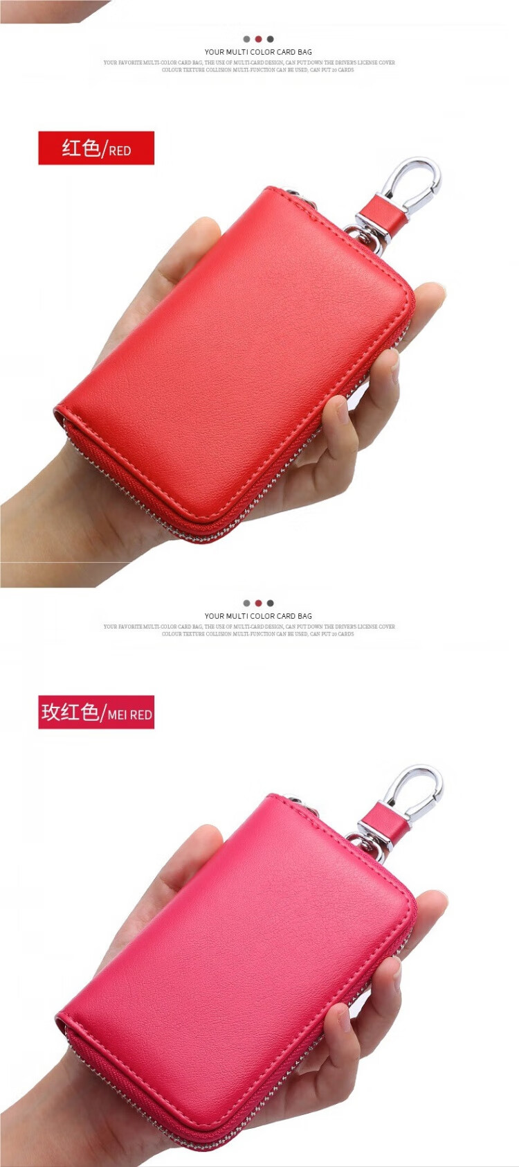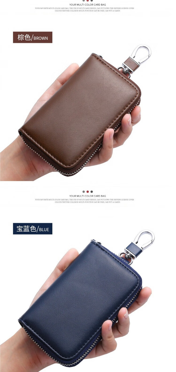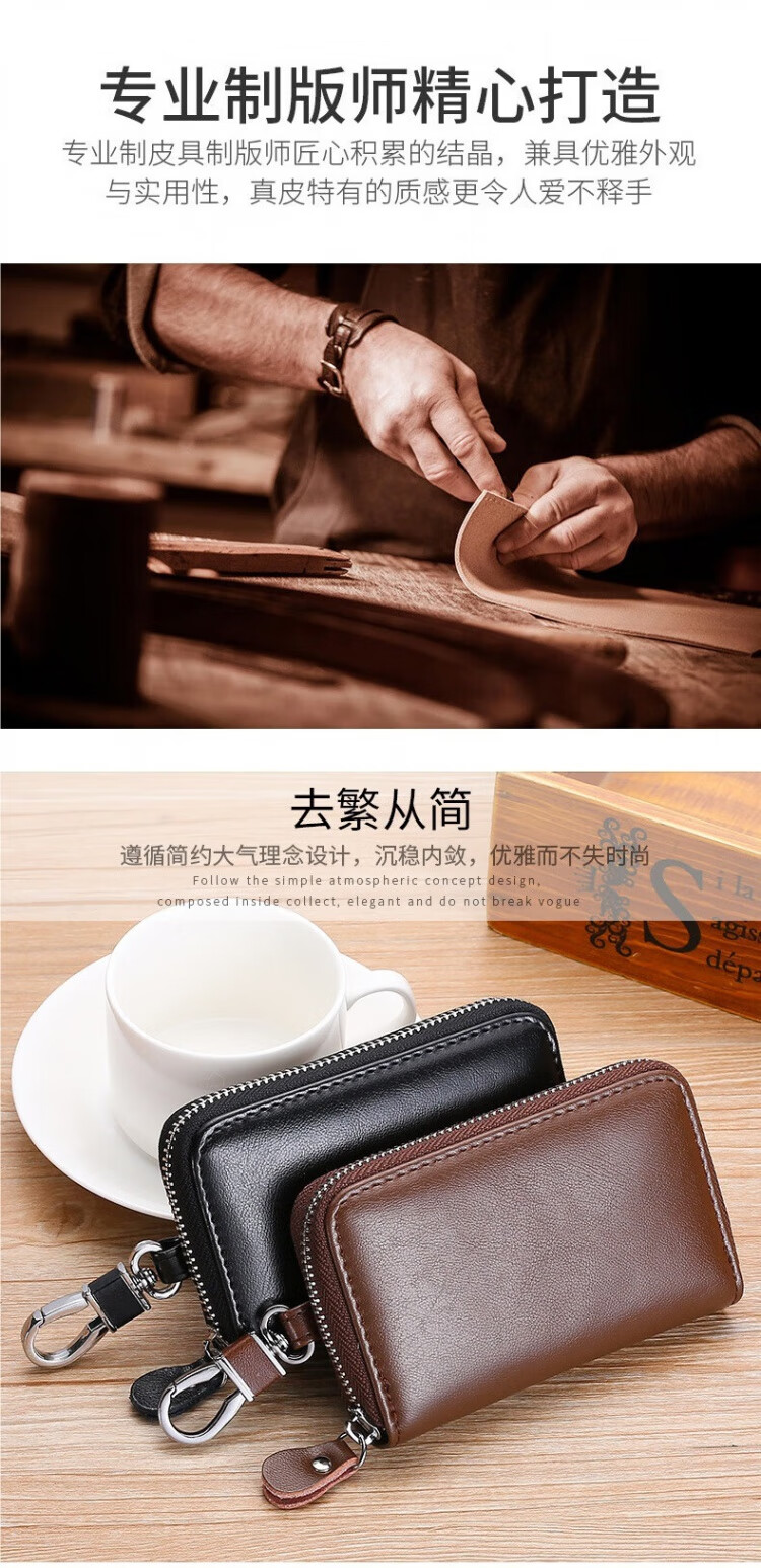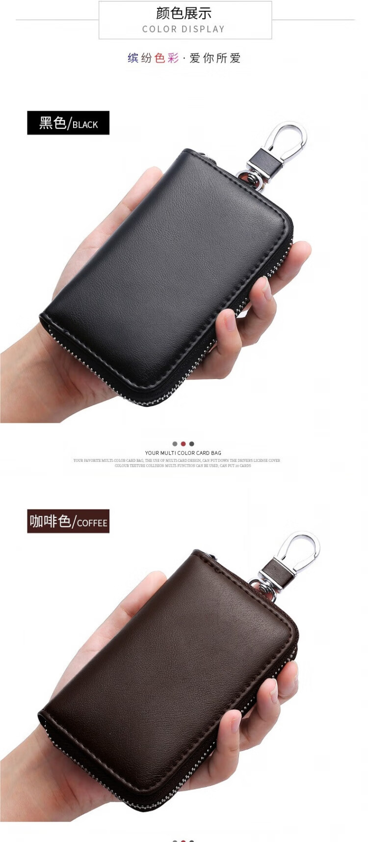百鸣威2025新款拉链大容量钥匙包男真皮多功能实用汽车锁匙包牛皮钥匙袋 黑色(12扣)